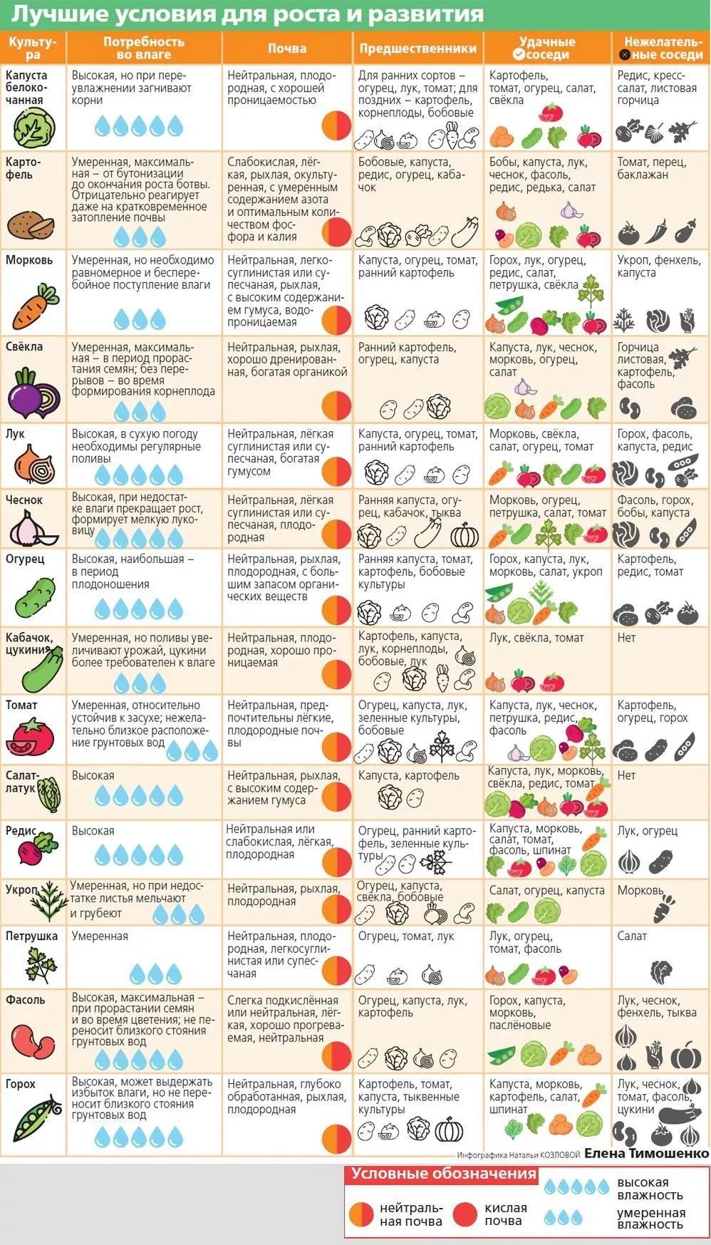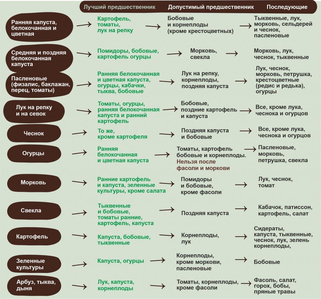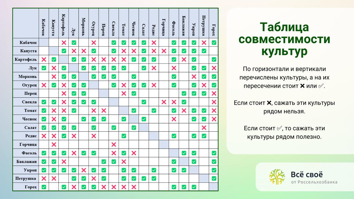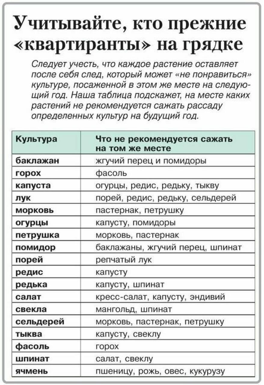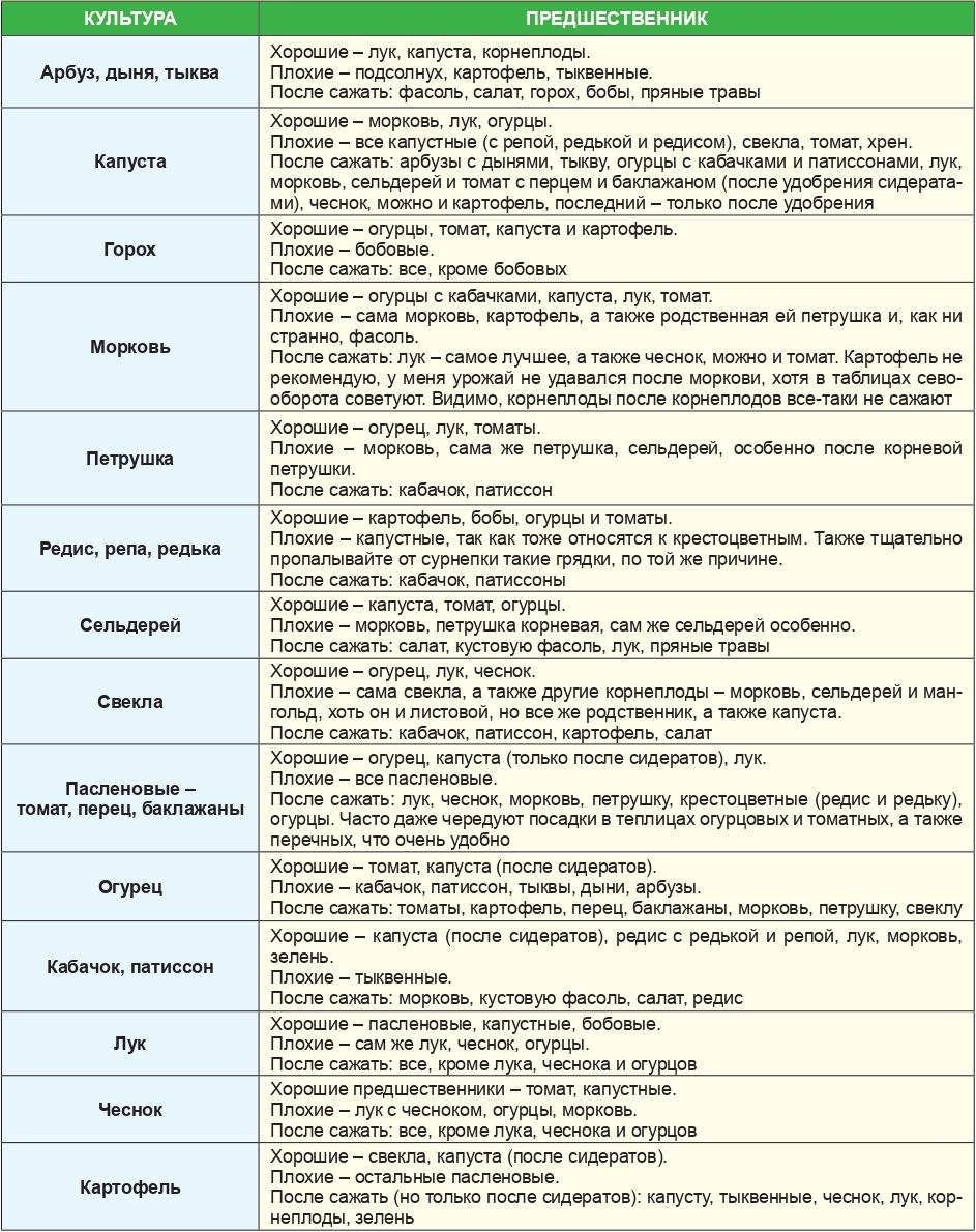 Таблица совместимости овощных культур