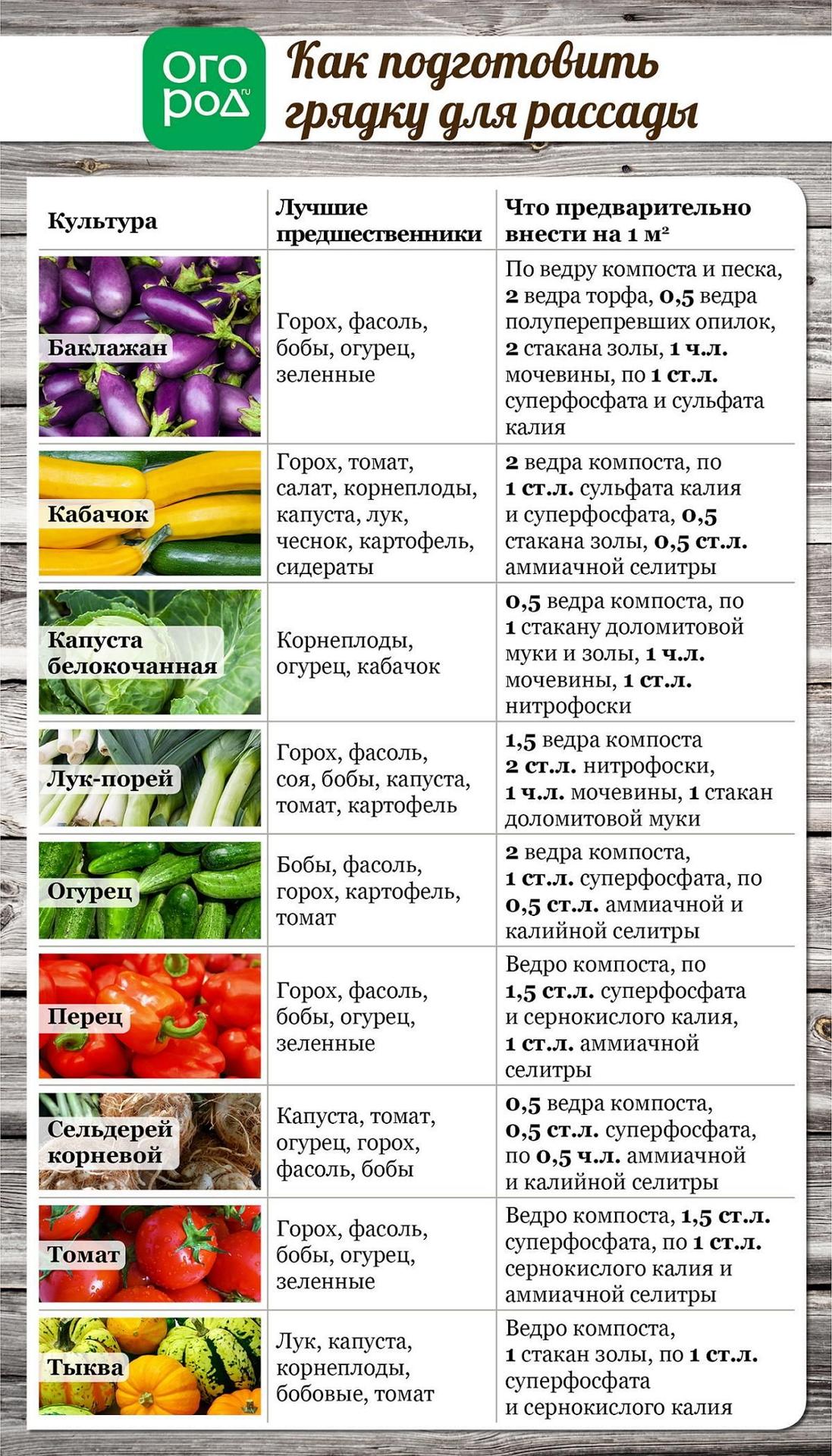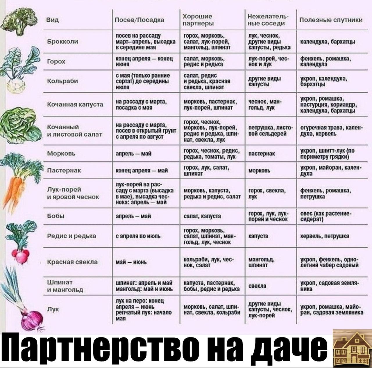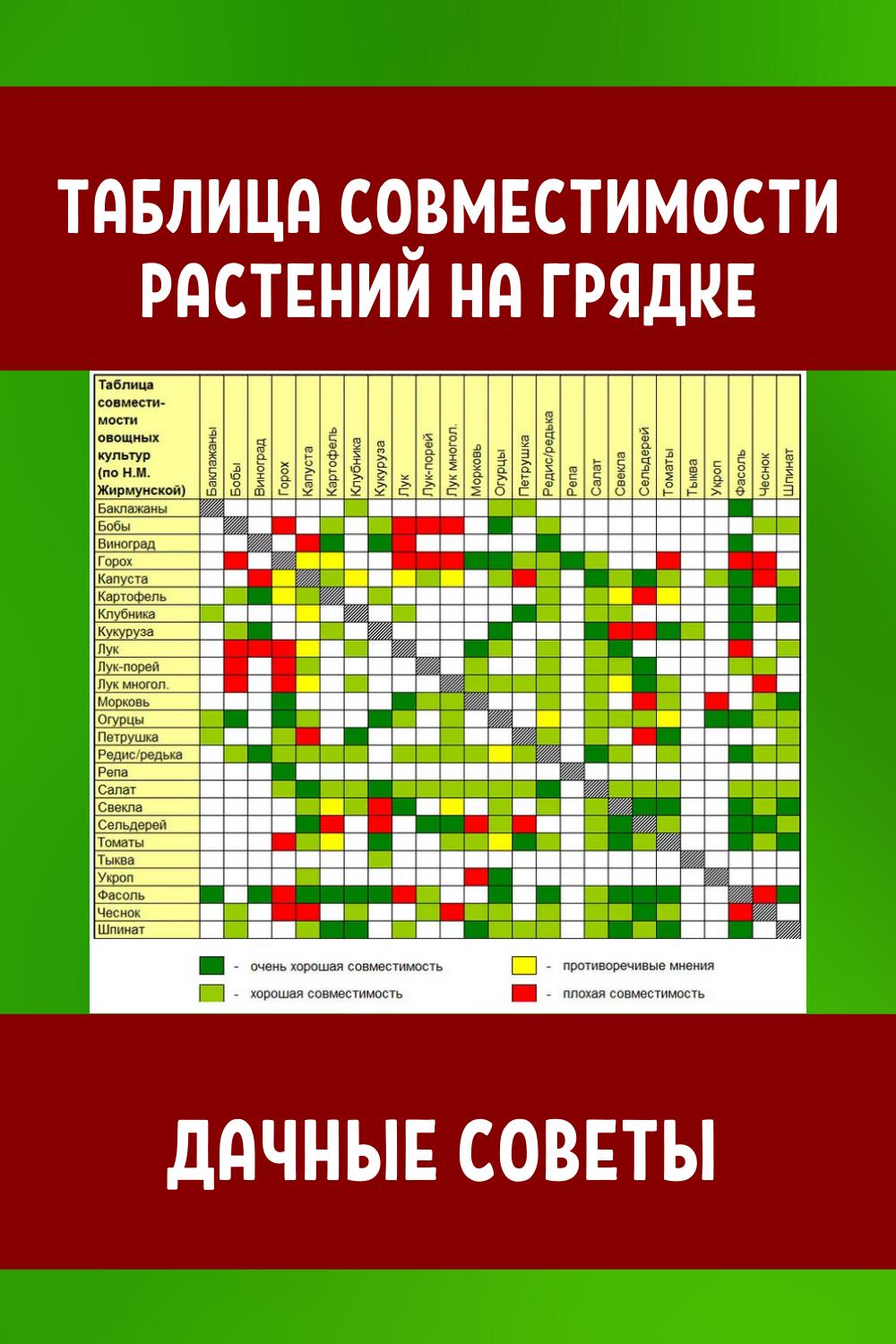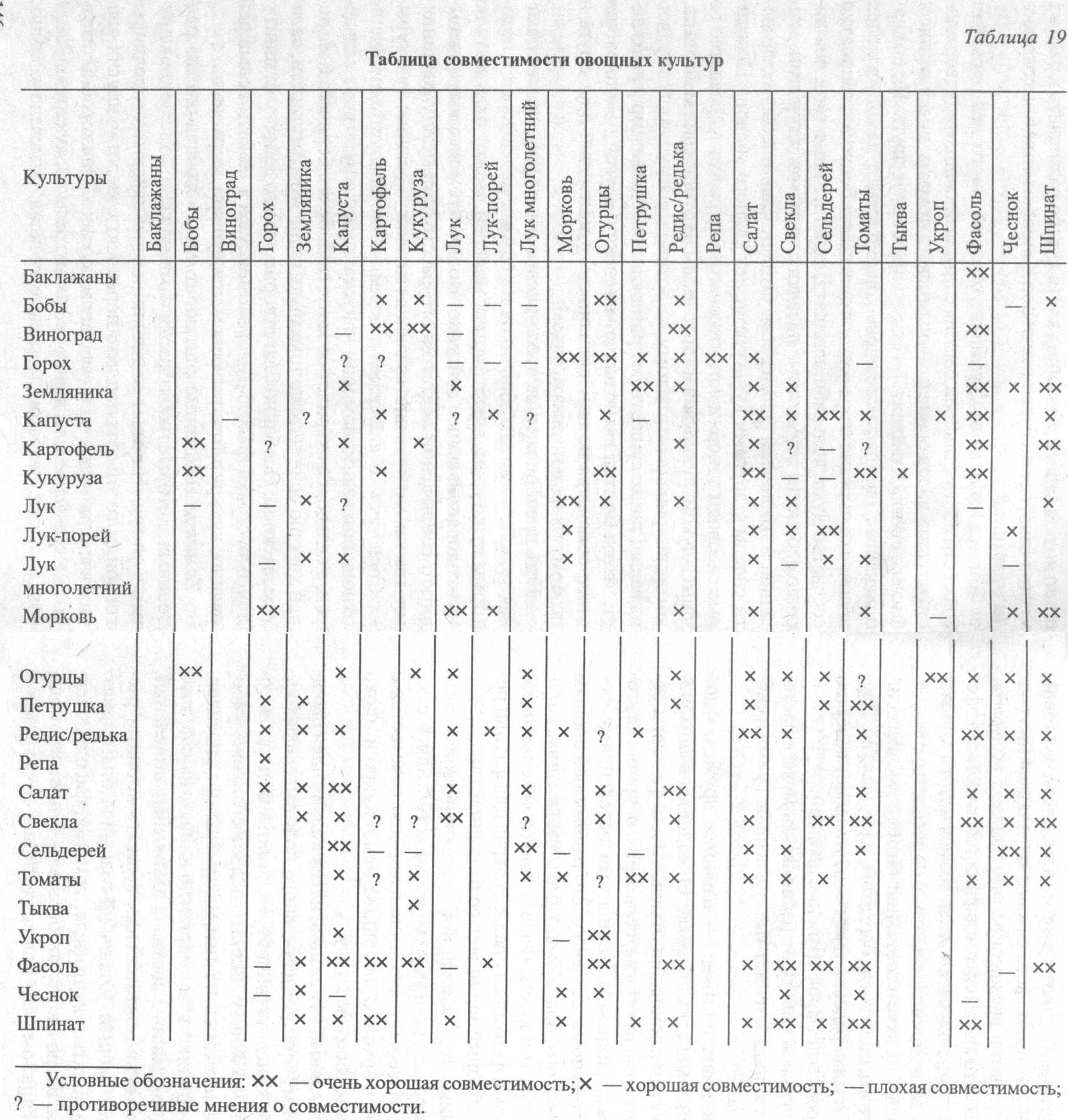 Таблица совместимости овощных культур