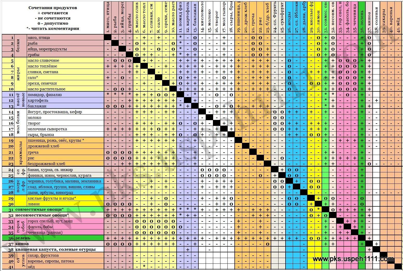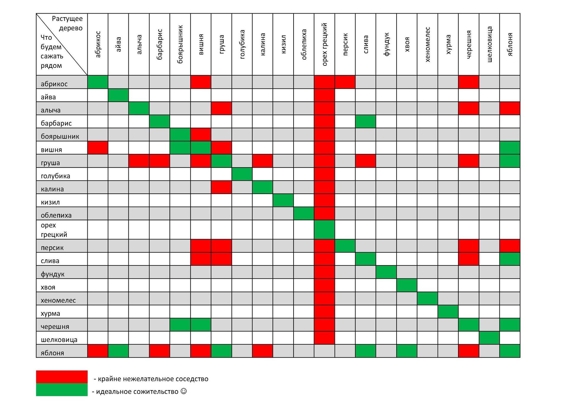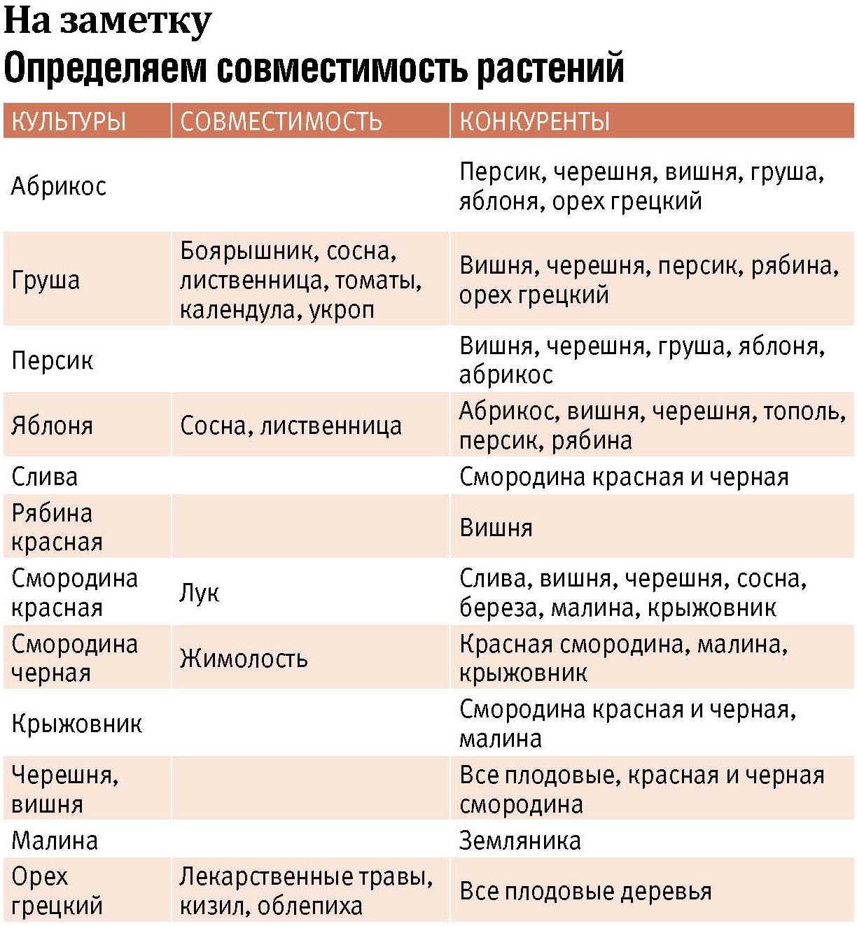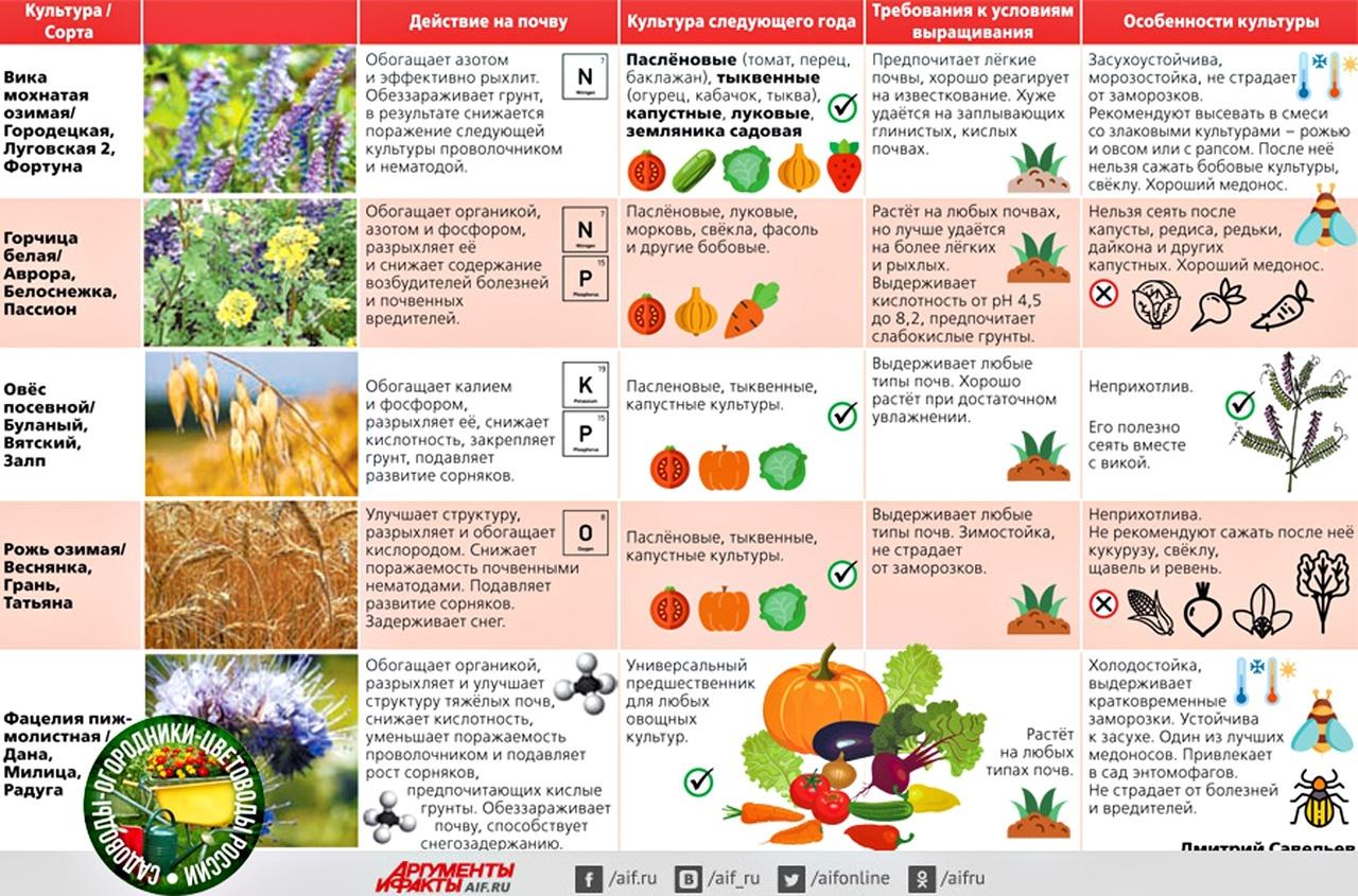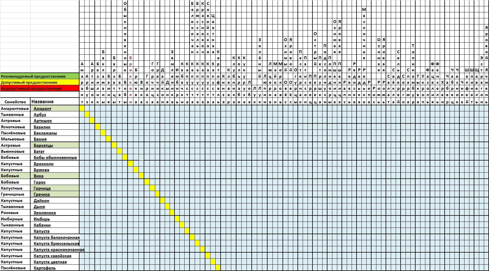 Таблица совместимости овощных культур
