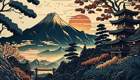 На островах гармонии иллюстрации пейзажей Японии воплощают идею баланса между природой и цивилизацией. Спокойные горы Фудзи возвышаются над бамбуковыми рощами, а сакура цветет розовым облаком над древними храмами. Атмосфера наполнена ароматом чая и звуками ветра, где каждый элемент композиции рассказывает о философии ваби-саби. Эти картинки передают суть японской эстетики, где простота становится искусством. Фото такого типа вдохновляют на размышления о ценностях минимализма, о силе созерцания. Арты идеально подходят для любителей travel photography, где японские пейзажи становятся окном в душу культуры.