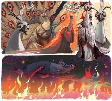 Лорд Шэн предстает в иллюстрациях как один из самых запоминающихся антагонистов в мире мультфильмов, воплощая собой идеал трагического злодея с глубокой психологической проработкой. Его образ сочетает королевскую грацию павлина с холодной расчетливостью завоевателя, создавая неповторимый визуальный нарратив. Художники мастерски передают его фирменные черты - металлические крылья, пронизывающие глаза и изящные перья, подчеркивающие его аристократическое происхождение. Каждая иллюстрация раскрывает новые аспекты его характера - от амбициозного правителя до сломленного горем воина. В коллекции представлены сцены из различных моментов истории: от триумфальных побед до горьких поражений, от королевских церемоний до ожесточенных битв. Особое внимание уделяется его взаимоотношениям с По и другими героями, а также символике огня как элемента его разрушительной силы. Многие работы сопровождаются анализом его мотивации и развитием характера на протяжении сюжета. Иллюстрации выполнены в различных техниках - от цифрового искусства до традиционных рисунков, отражая популярность этого персонажа среди фанатов.