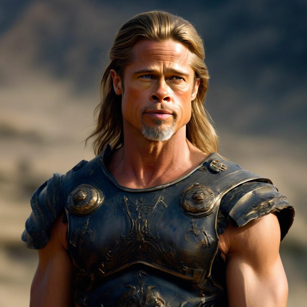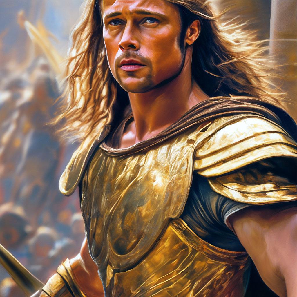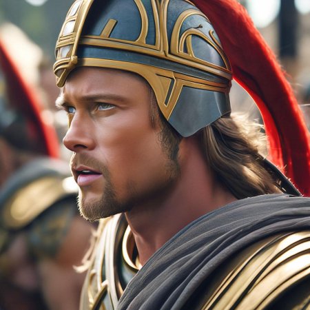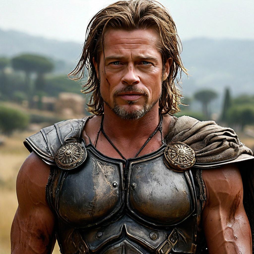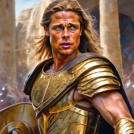 Познакомьтесь с Ахиллесом - величайшим героем Троянской войны в исполнении Брэда Питта, воплощающим идеал древнегреческого воина. Эти фотографии демонстрируют различные грани персонажа: от молодого воина в сияющих доспехах до опытного бойца с мудрым взглядом. Художники и фотографы запечатлевают ключевые моменты его истории - от тренировок с Хироном до решающих битв под стенами Трои. Каждый кадр передает атмосферу эпоса: пыльные поля сражений, золотые доспехи, напряжение перед поединком. Фотографии показывают контраст между божественным происхождением героя и его человеческими слабостями. Этот образ вдохновляет на размышления о цене славы, значении чести и неизбежности судьбы даже для самых великих героев.