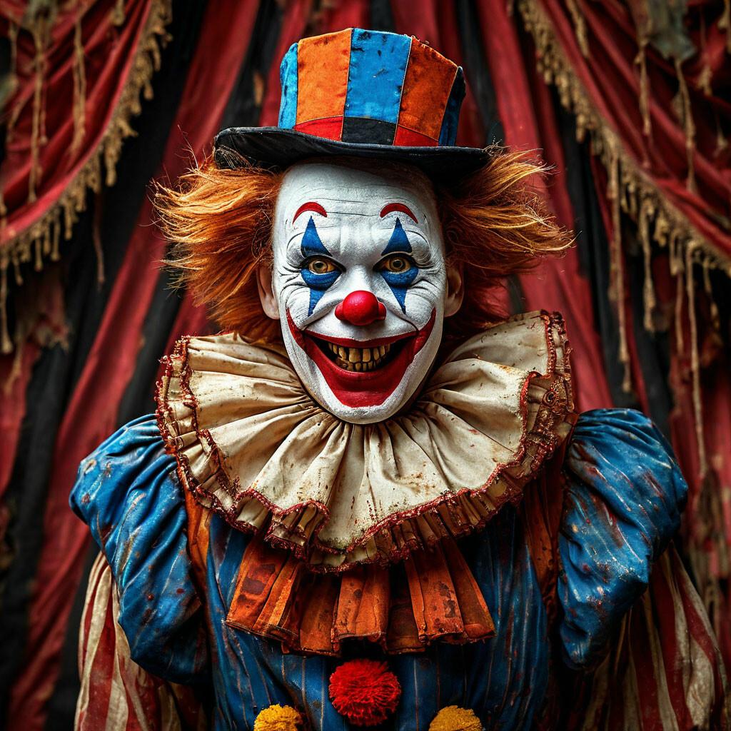 Образ очень страшного клоуна воплощает в себе двойственность человеческой природы, где комичное и пугающее переплетаются в сложную психологическую композицию. Этот персонаж, традиционно ассоциирующийся с весельем и развлечениями, в современном искусстве часто предстает в мрачной и тревожной интерпретации. Фотографии и иллюстрации страшного клоуна демонстрируют мастерство художников в создании атмосферы напряжения и психологического дискомфорта. Каждый элемент образа тщательно проработан - от искаженных черт лица и неестественной улыбки до зловещих теней и пугающих аксессуаров. Этот персонаж часто используется в жанре хоррор для исследования тем страха, одиночества и подавленных эмоций. Современные интерпретации страшного клоуна находят применение в комиксах, фильмах ужасов и цифровом искусстве, становясь символом коллективных страхов общества. Художники экспериментируют с различными стилями - от реалистичных портретов до абстрактных композиций, каждая из которых раскрывает новые грани этого архетипа. Изображения страшного клоуна продолжают вдохновлять создателей контента на исследование темных сторон человеческой психики.