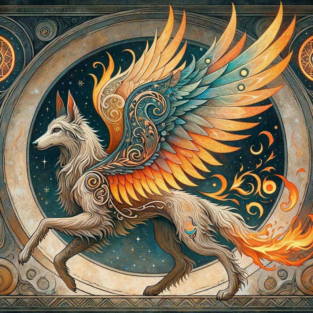 Крылатый пес Семаргл воплощает древнюю славянскую мифологию в современных иллюстрациях, где мощь и мудрость животного сочетаются с крыльями. Эта коллекция включает разнообразные интерпретации образа - от суровых и мощных до благородных и величественных композиций. Каждый дизайн передает атмосферу древних легенд и духовной силы. Фоны идеально подходят для проектов по славянской мифологии, оформления тематических мероприятий или создания атмосферы эпоса. Иллюстрации подобраны для передачи силы и защиты, характерной для этого мифического существа.