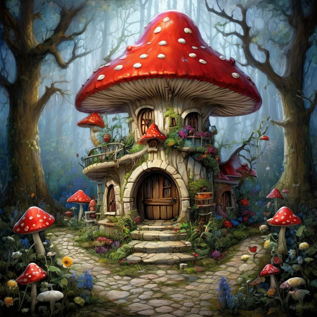 Очаровательная коллекция изображений грибных домиков воплощает идею гармонии с природой в самых фантастических и уютных формах. Эти необычные жилища предстают как естественное продолжение леса - органические структуры из гигантских грибов, мха и природных материалов. Художники мастерски сочетают сказочность с функциональностью, создавая композиции, полные тепла и волшебства. В иллюстрациях прослеживается разнообразие: крошечные домики для лесных духов, просторные жилища для семейств, современные интерпретации с технологическими элементами. Детальная проработка текстур грибов, мха, природного окружения создает ощущение живой экосистемы. Арты не просто развлекают, но и несут экологический посыл, напоминая о важности сохранения природы и гармоничного сосуществования с ней.