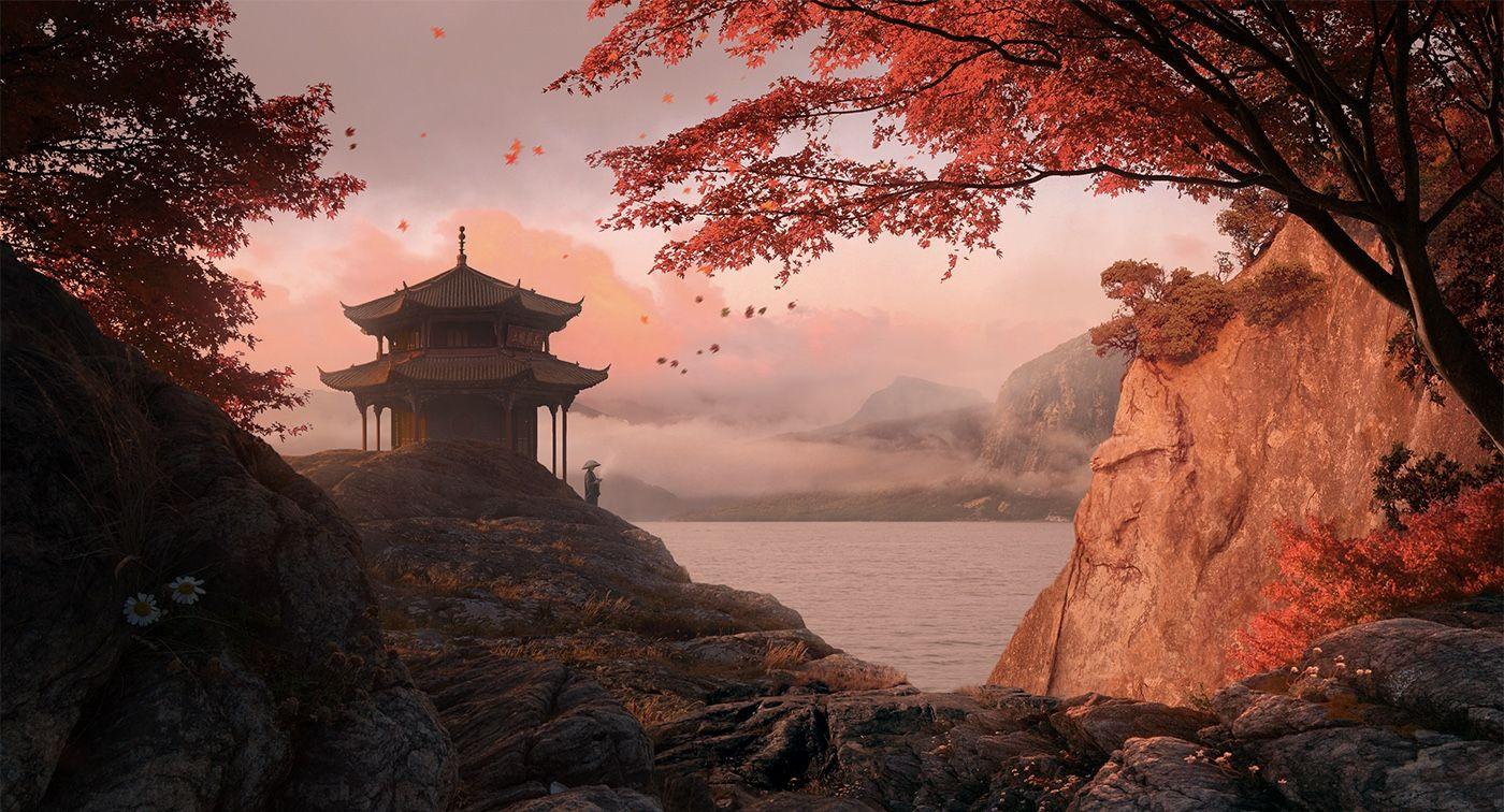 Японский сад с японской пагодой