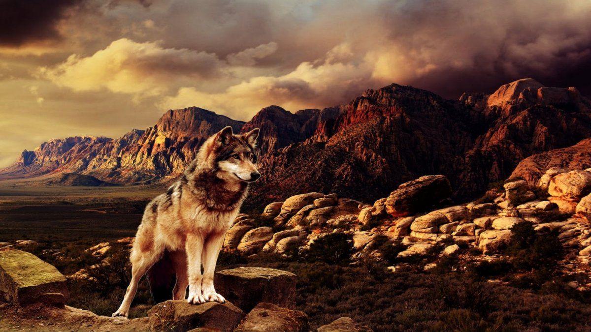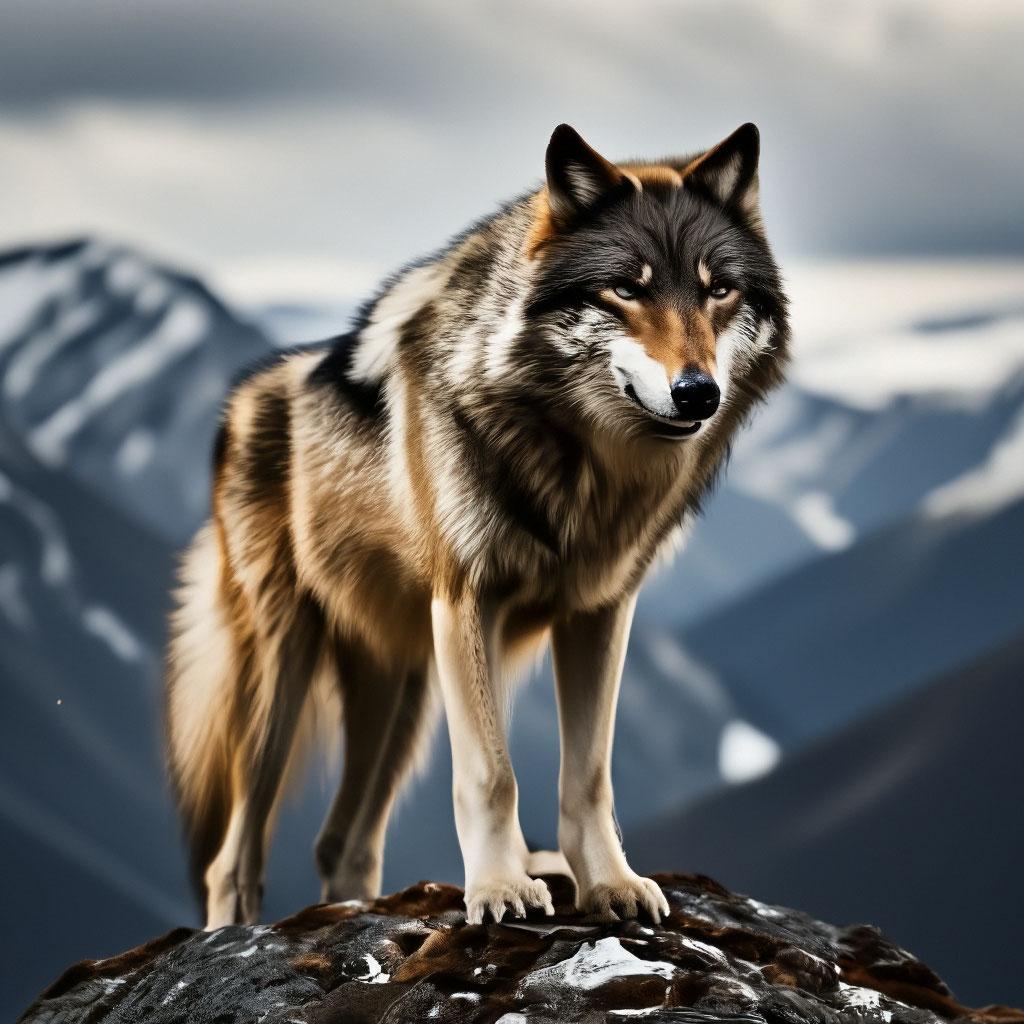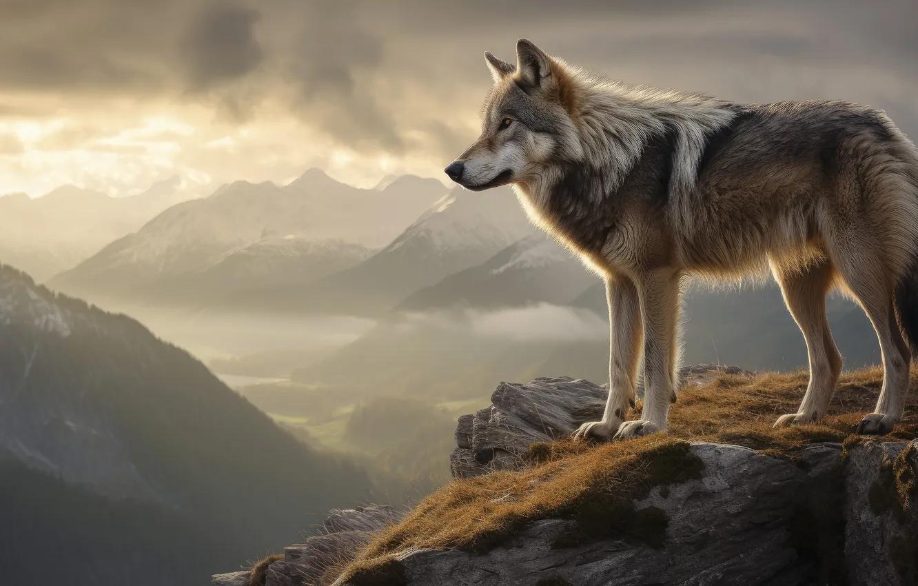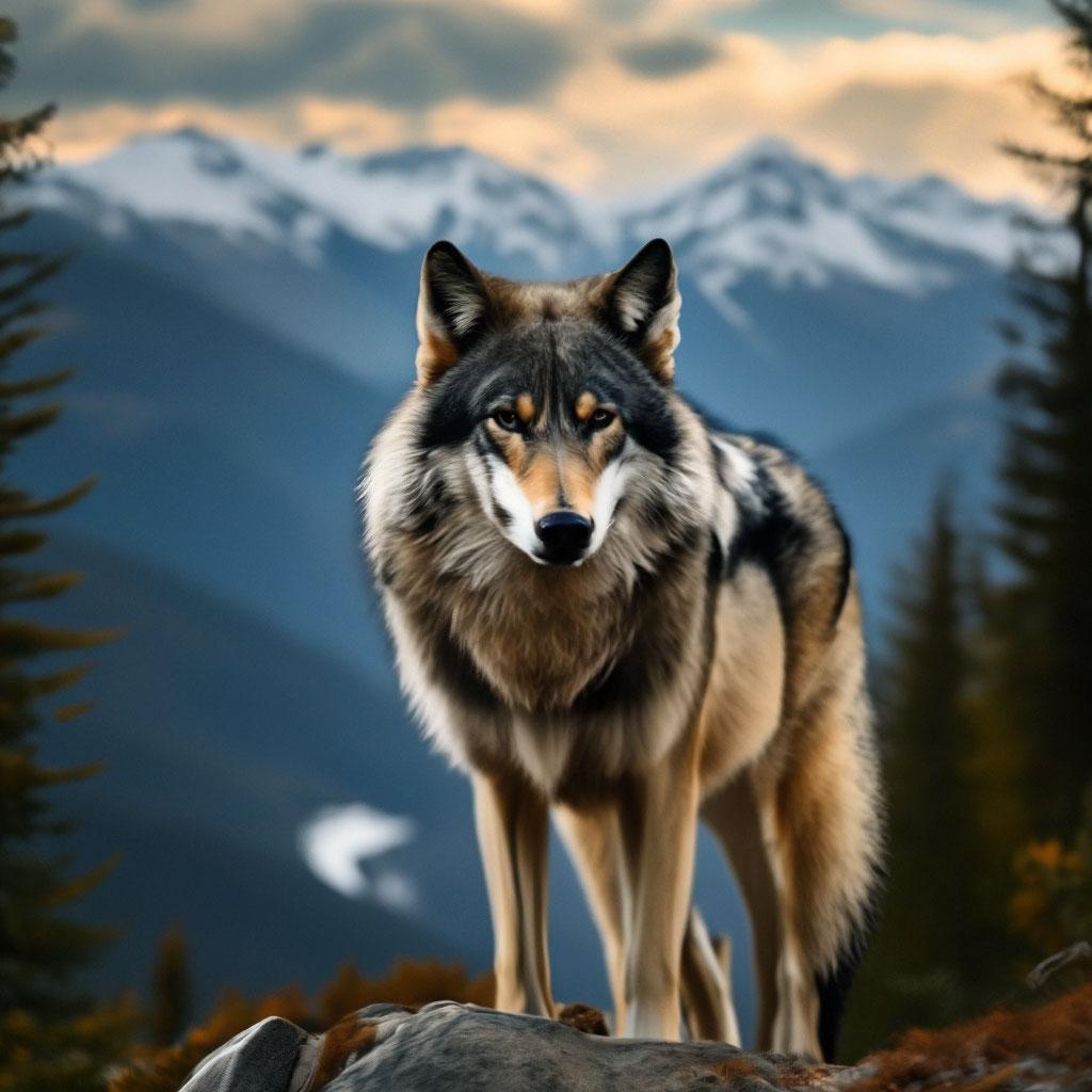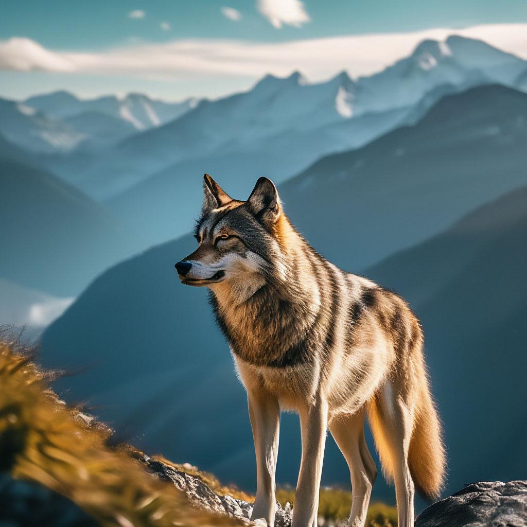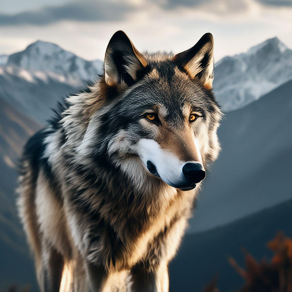 Волк на фоне гор