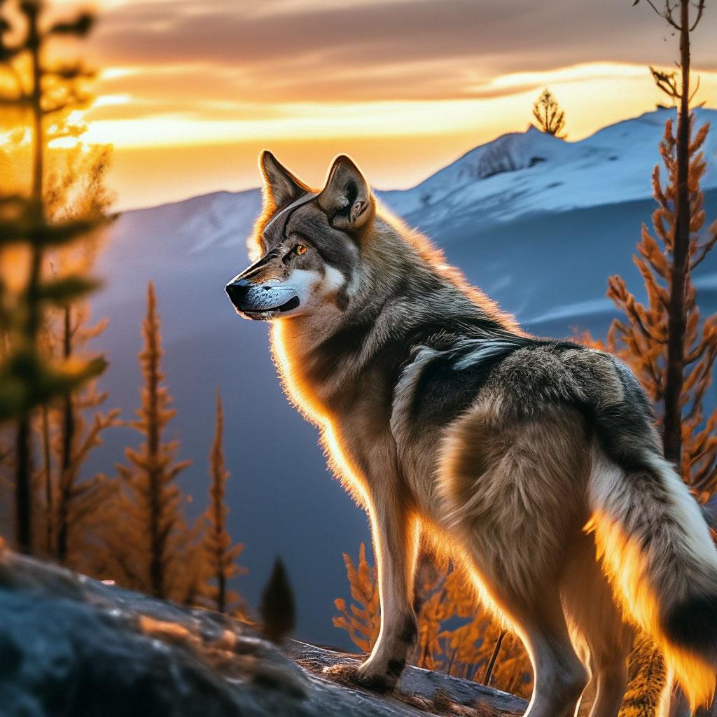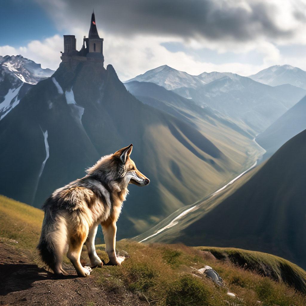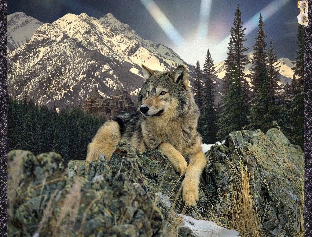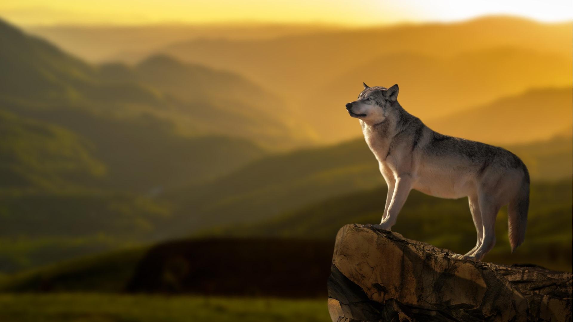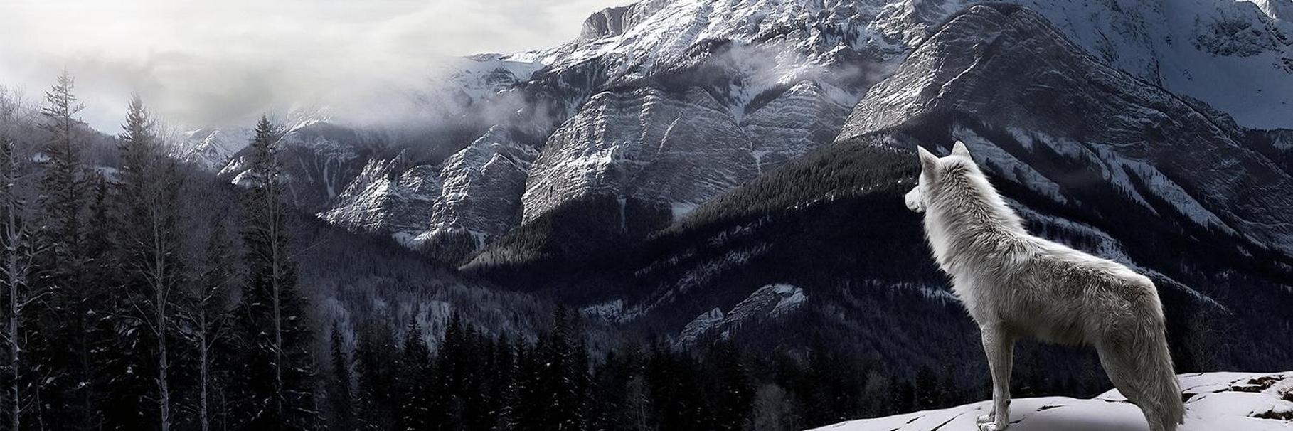 Волк на фоне гор
