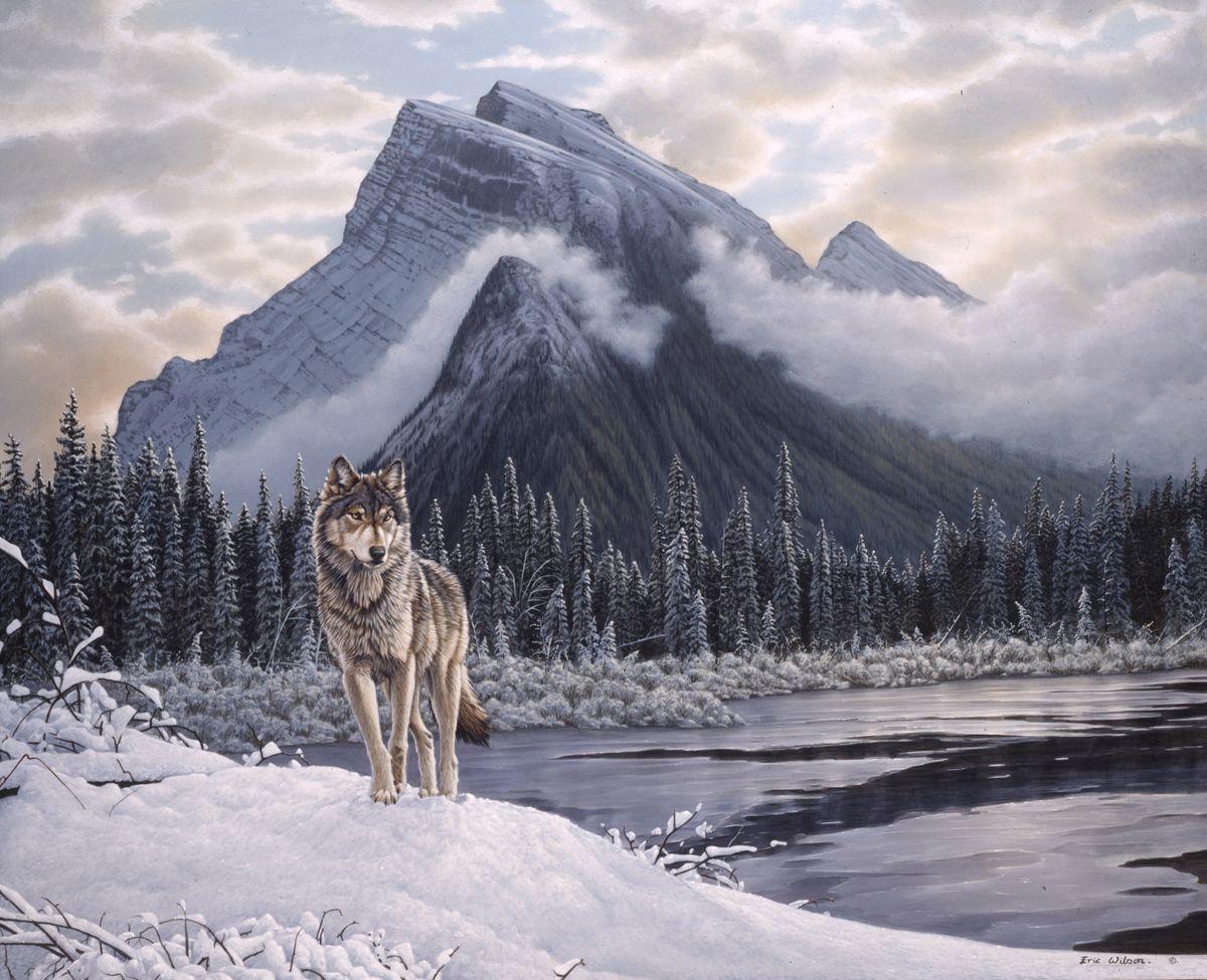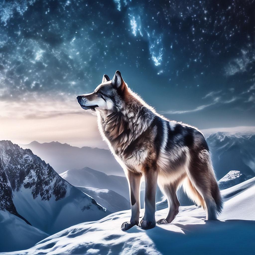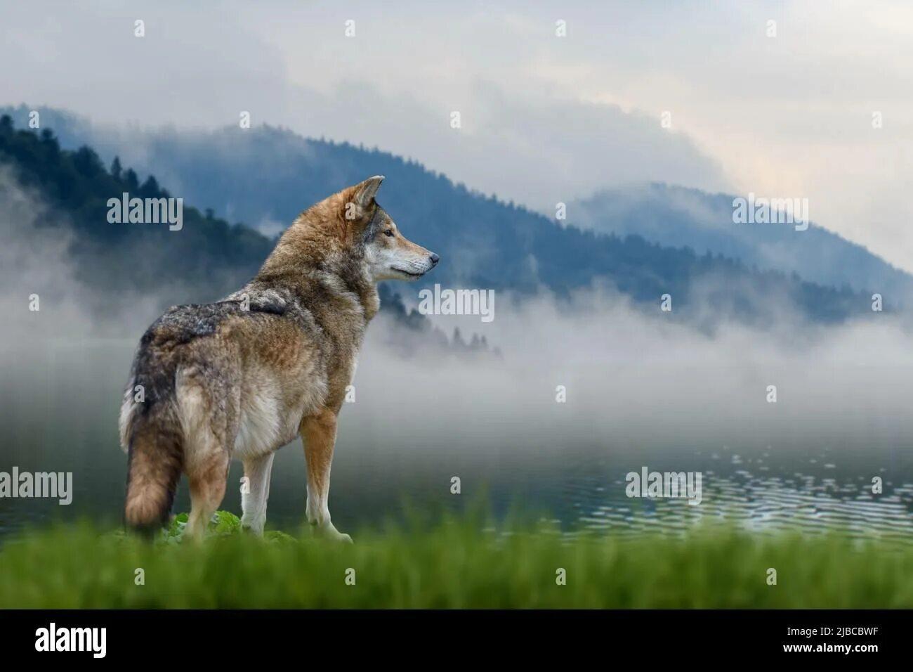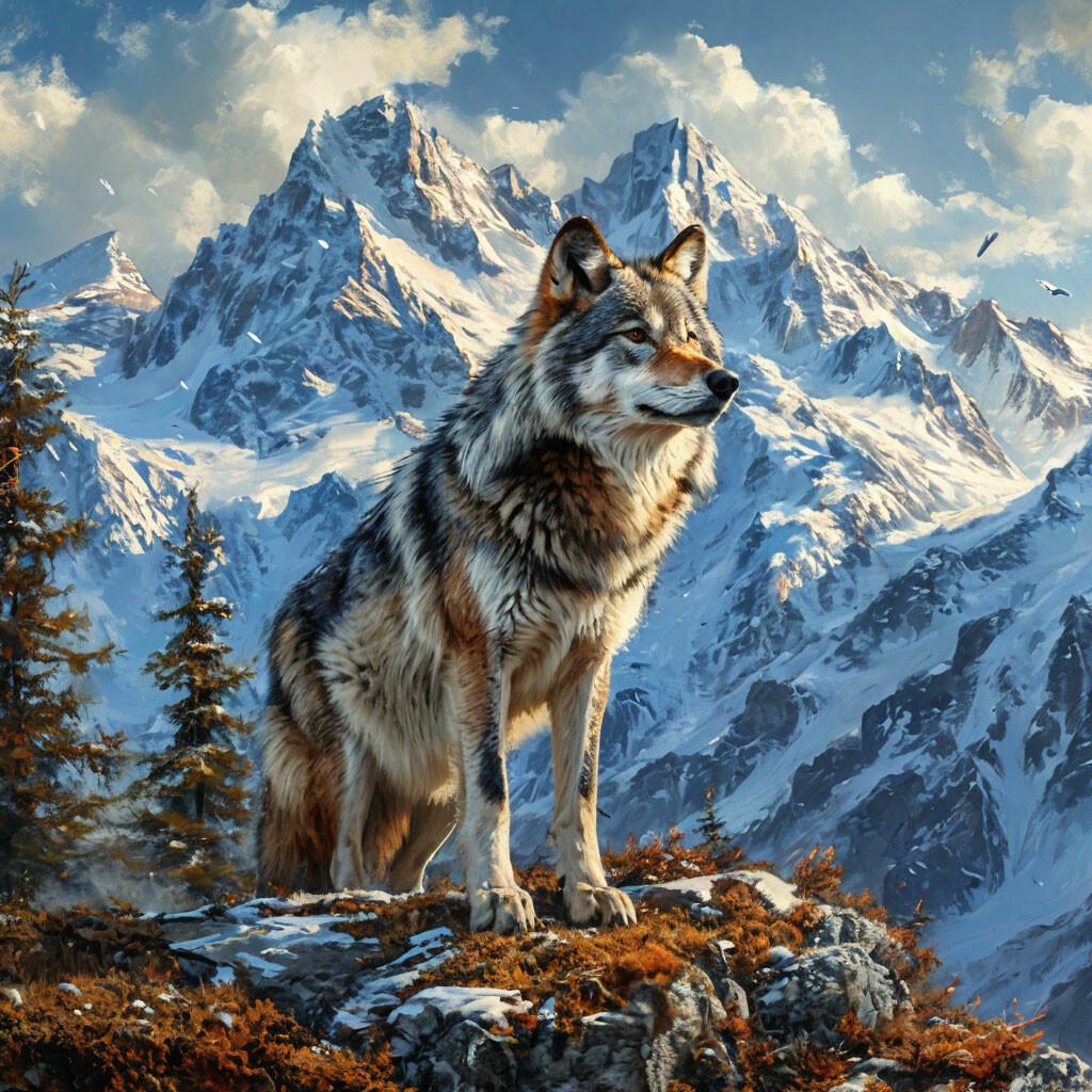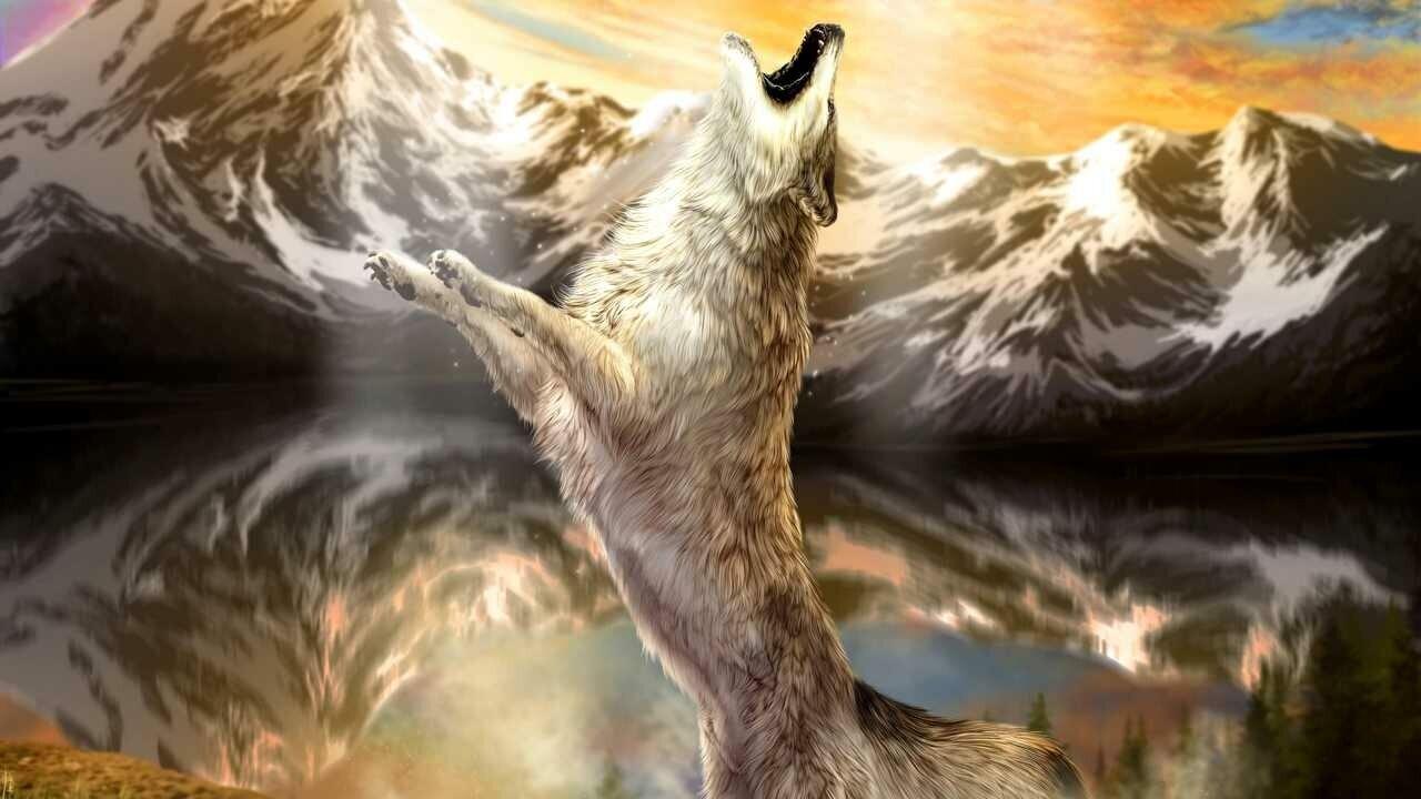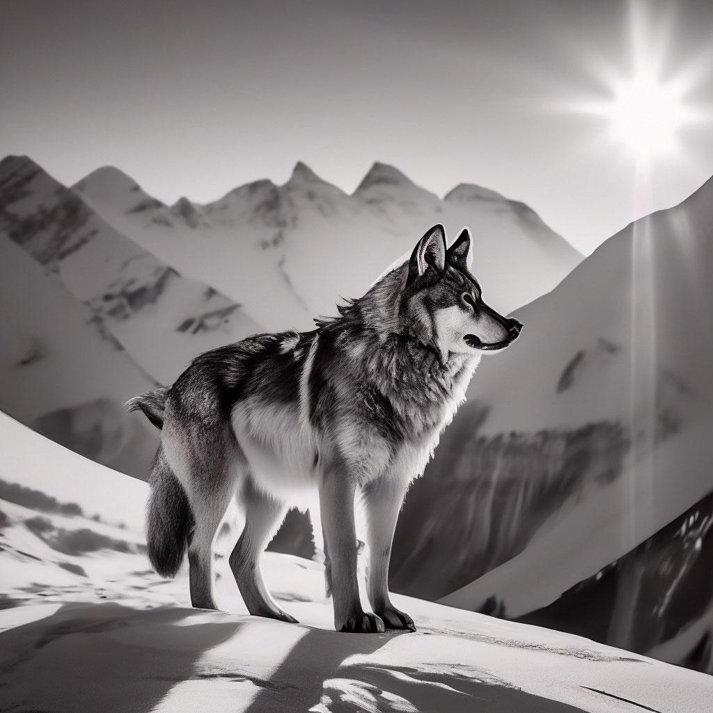 Волк на фоне гор