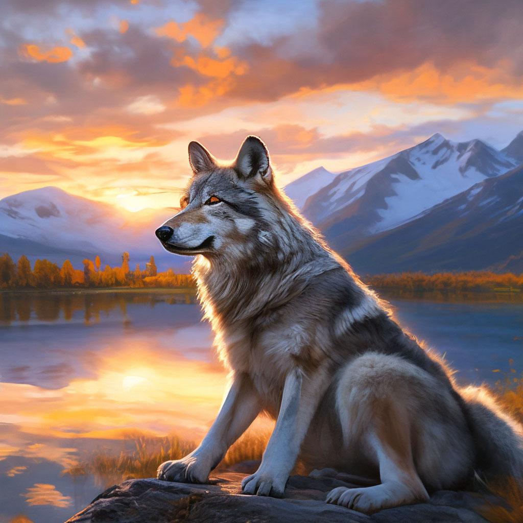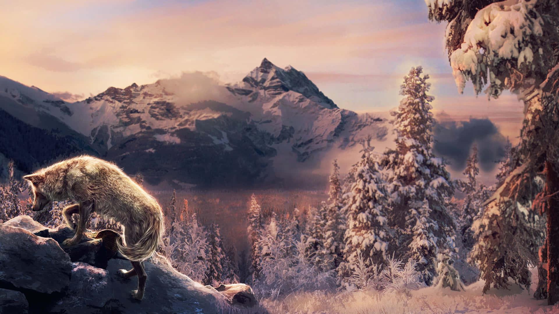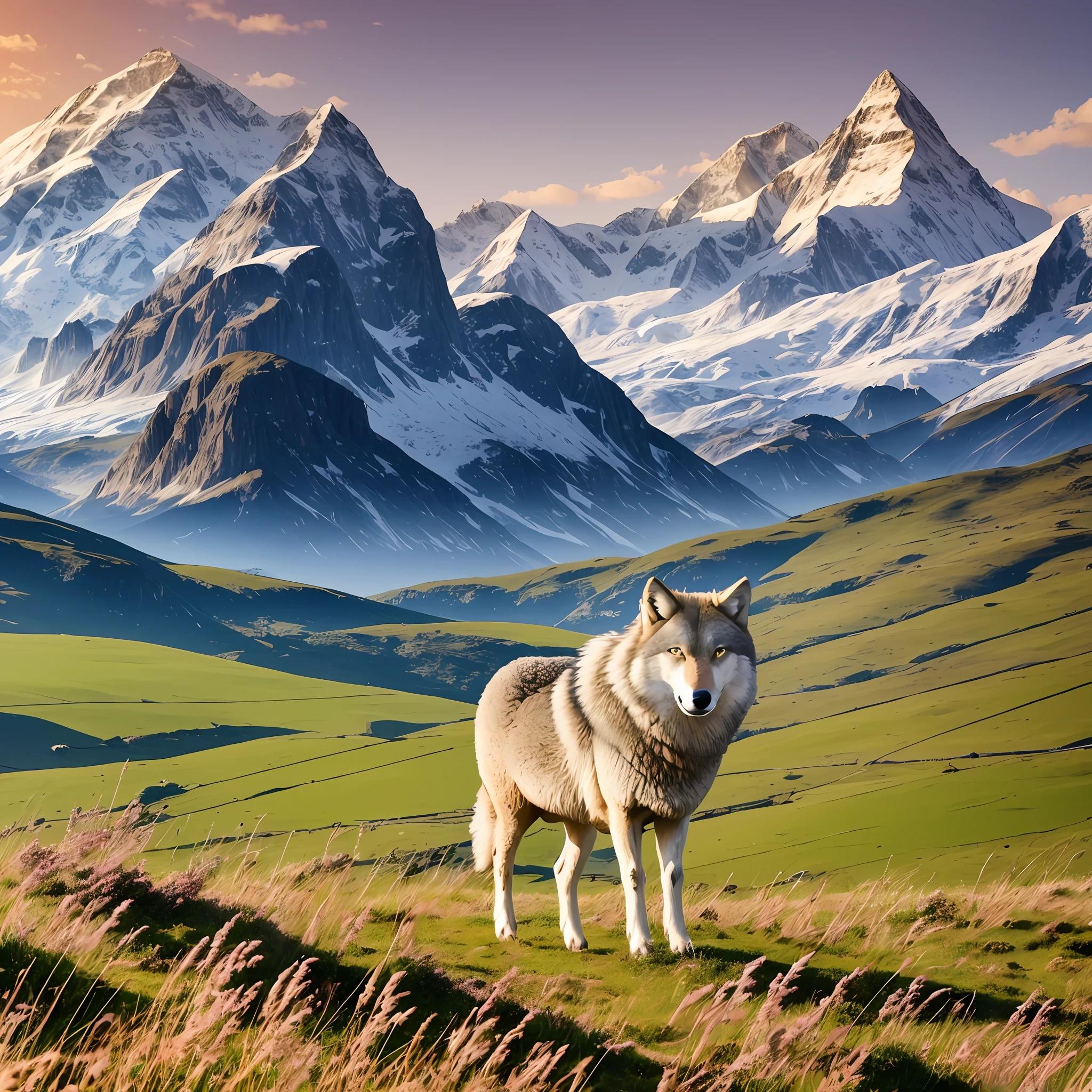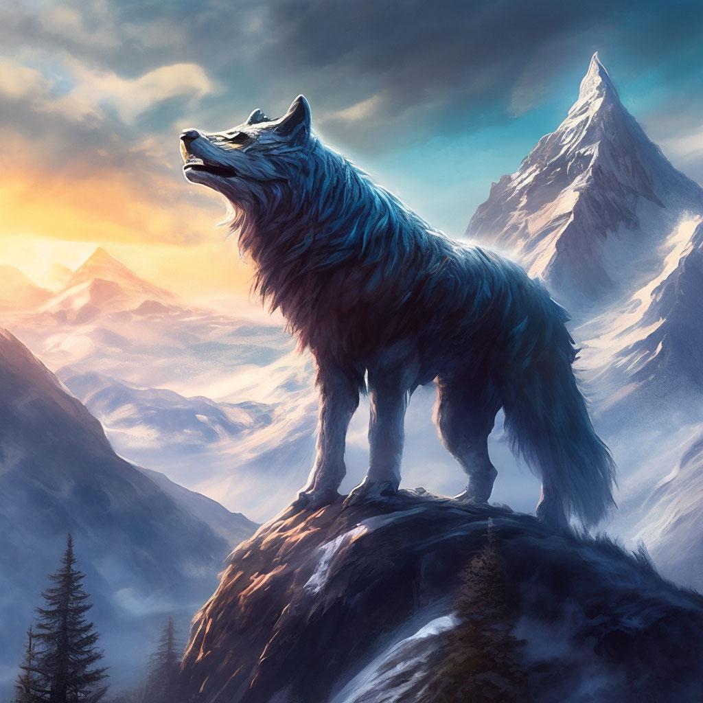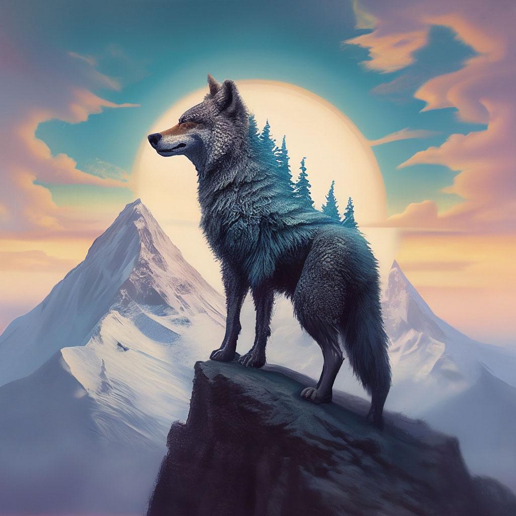 Волк на фоне гор