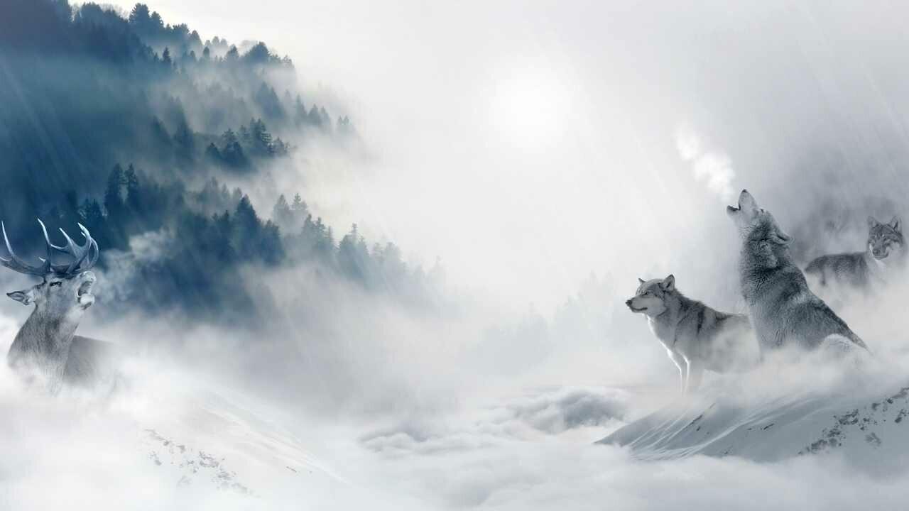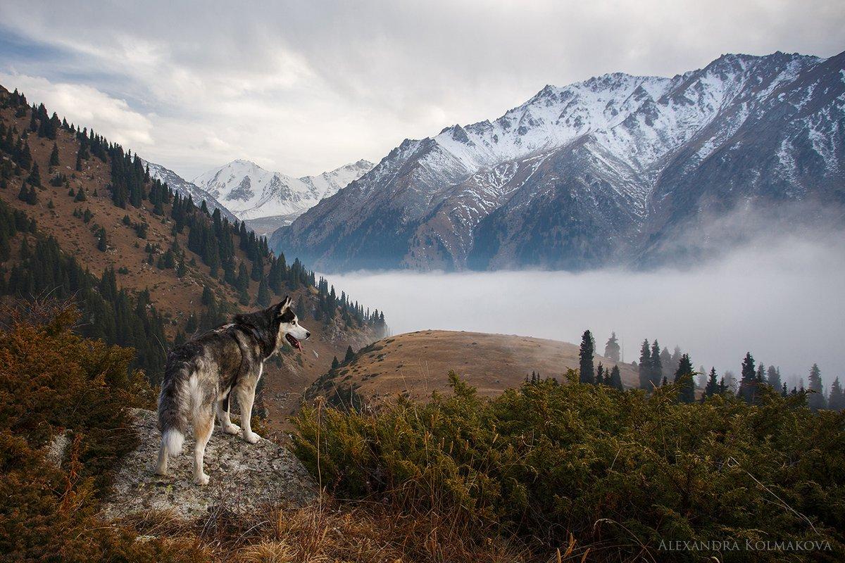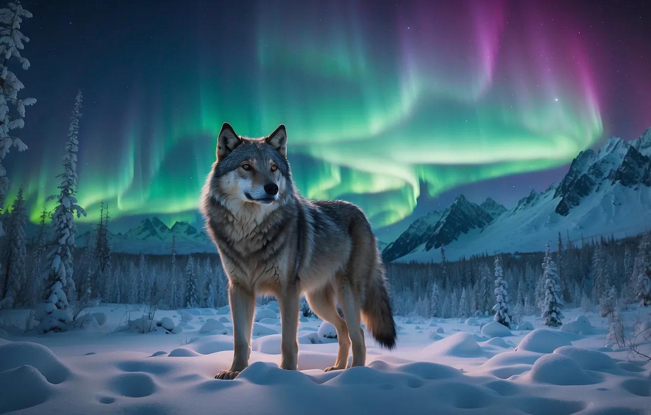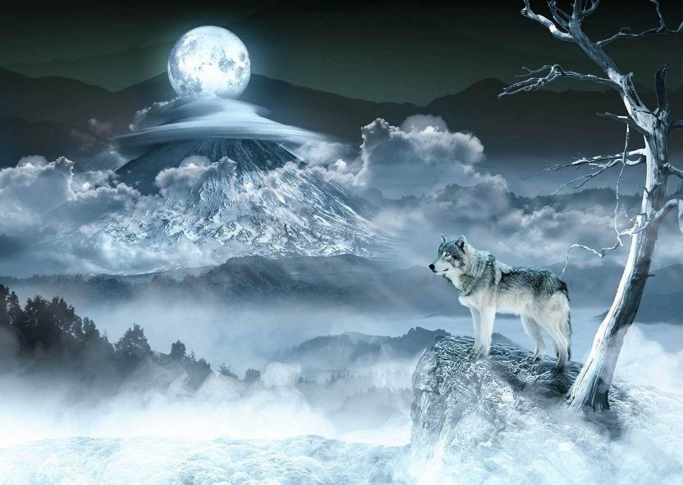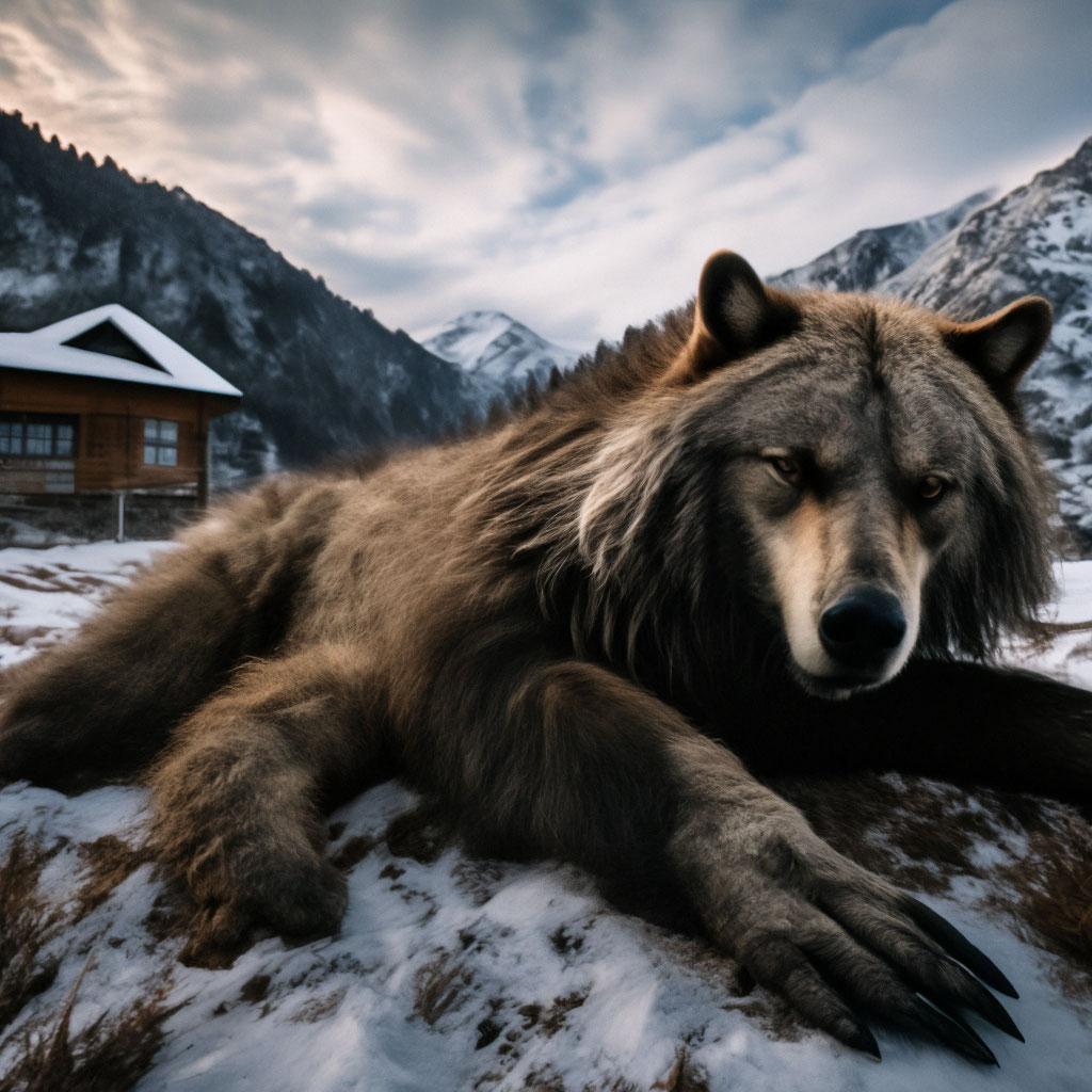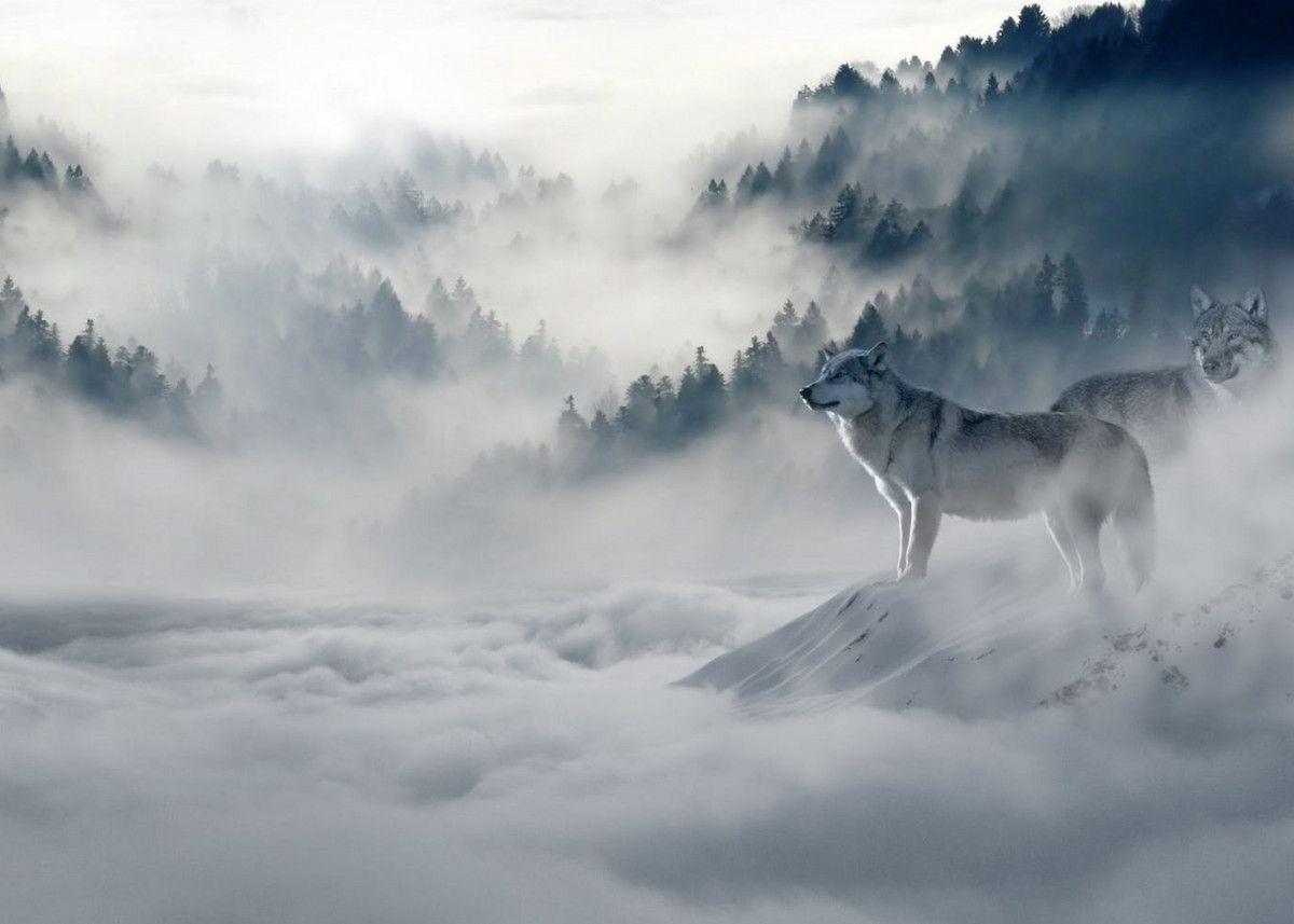 Волк на фоне гор