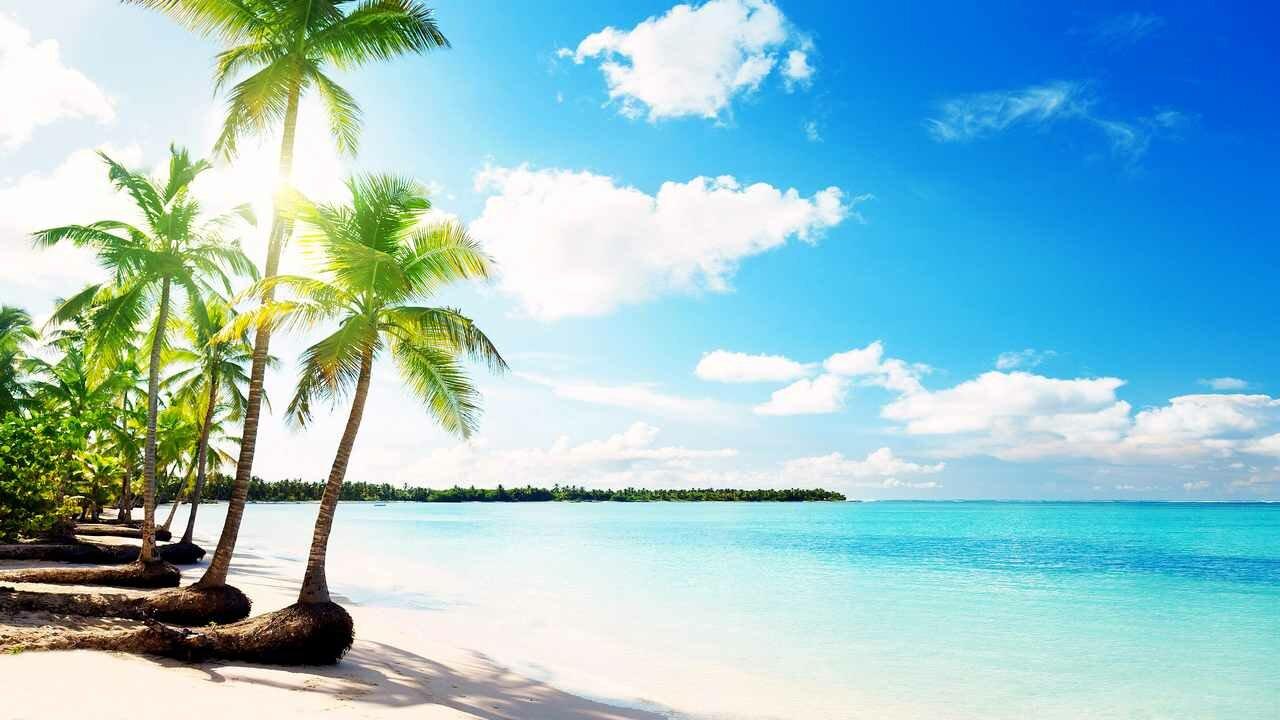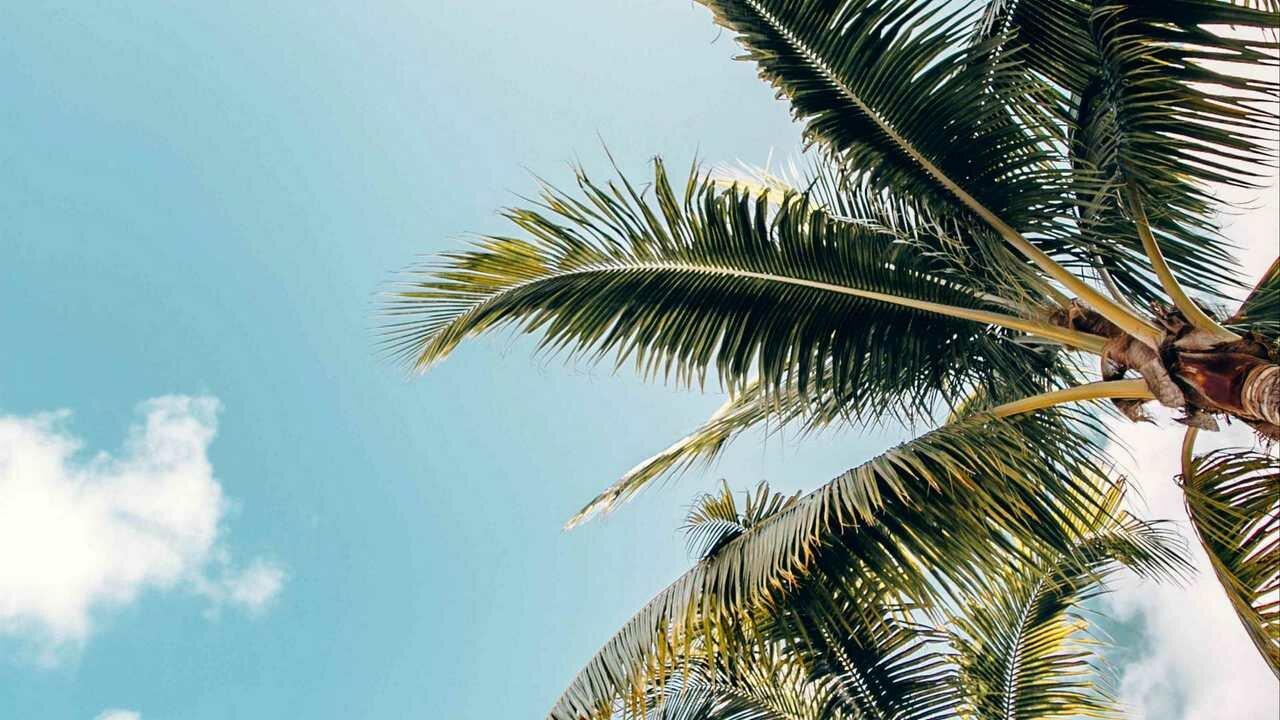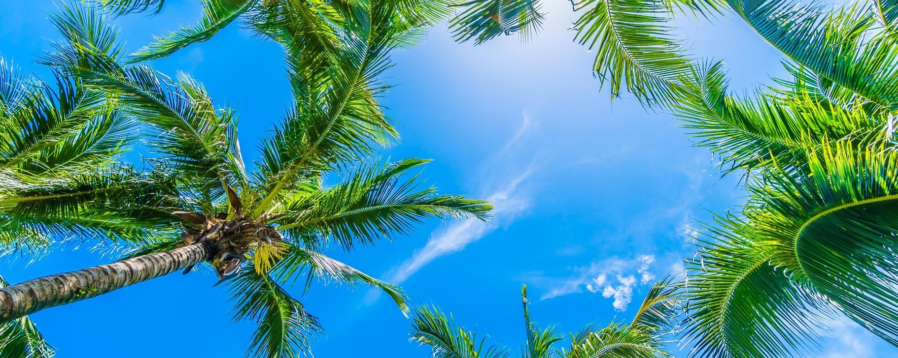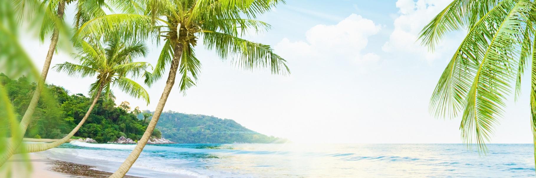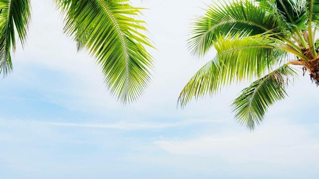 Шелест листьев: тропики в каждом пикселе Пляж панорама Красная Пальма Хотлайн Майами пальмы Фон пальмы Парадиз остров Карибского моря Фоны