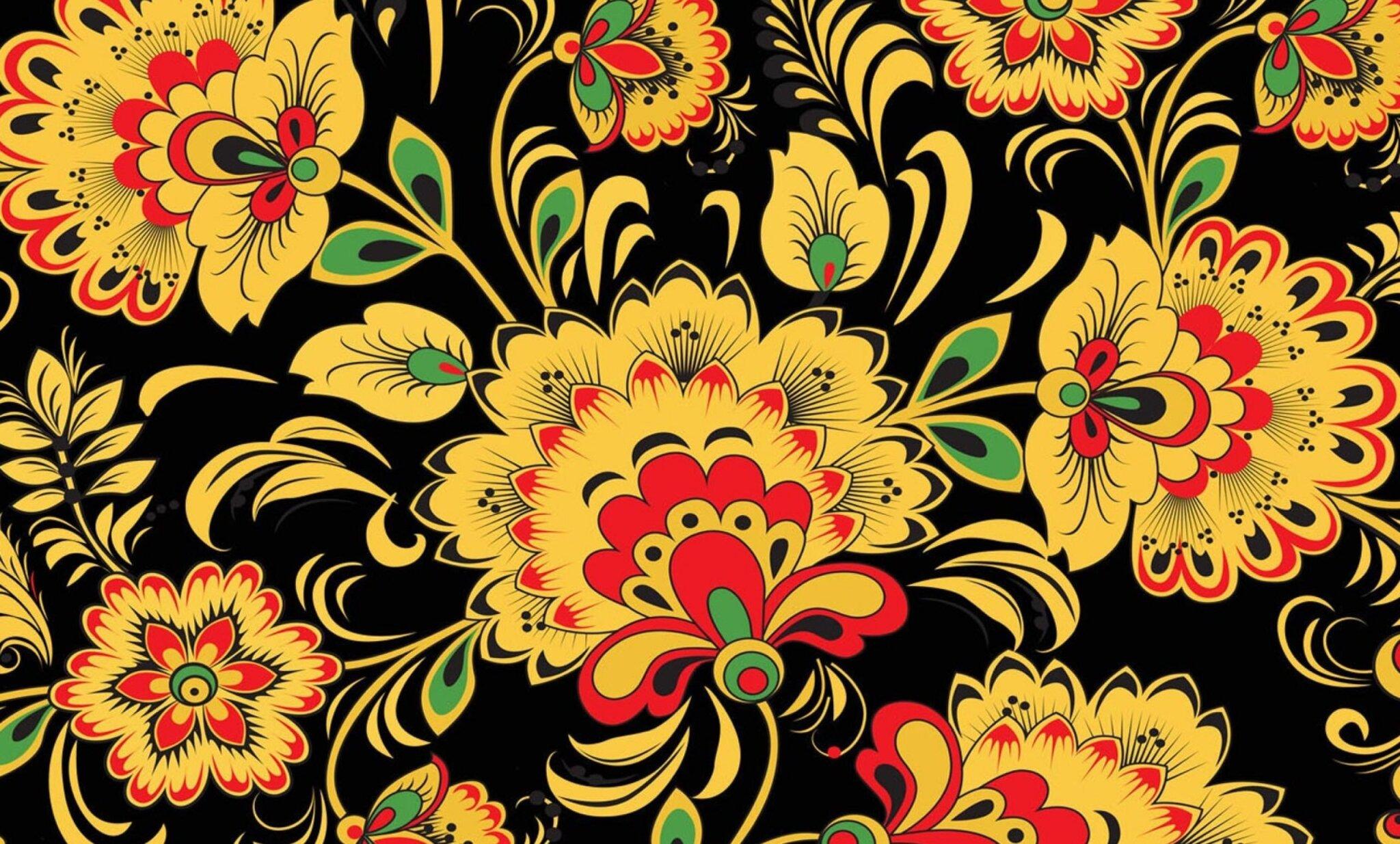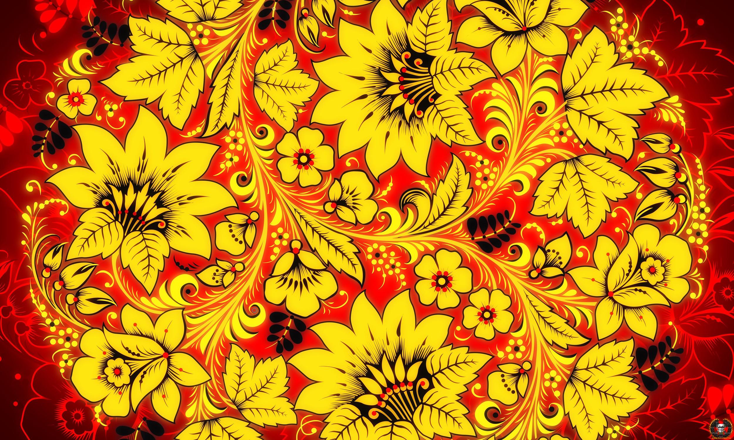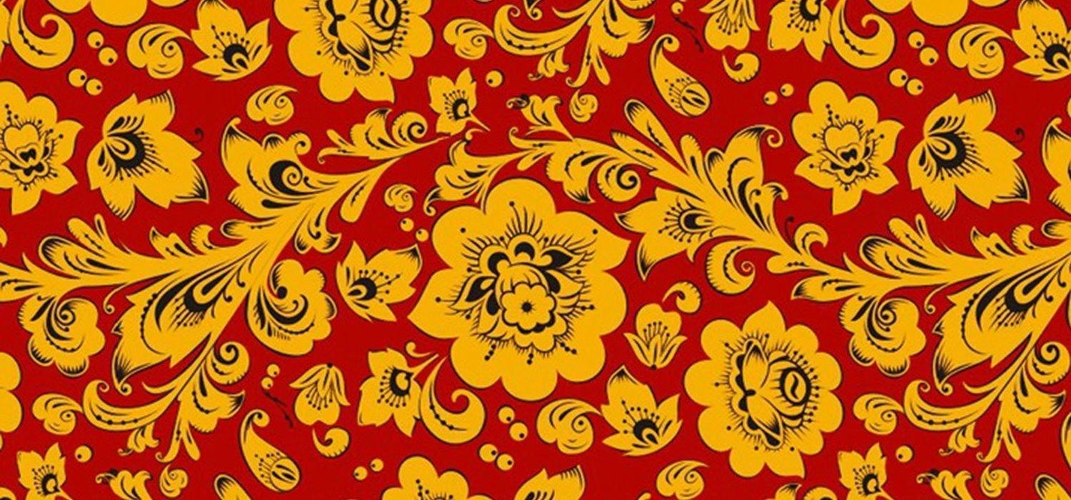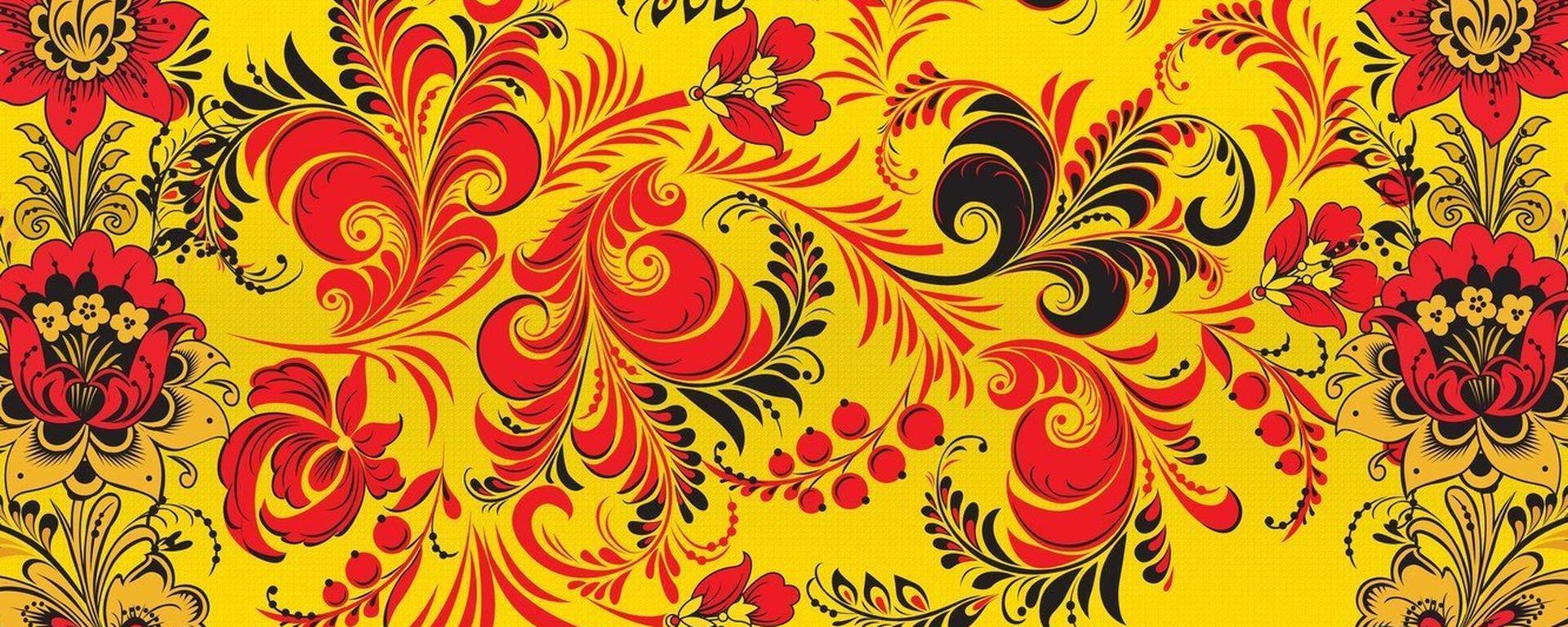 Наследие предков: традиции в современном прочтении Хохлома Денис Симачев Бэкграунд Хохлома роспись на желтом фоне Фон орнамент Русские узоры Фон для презентации русско народный стиль Фоны