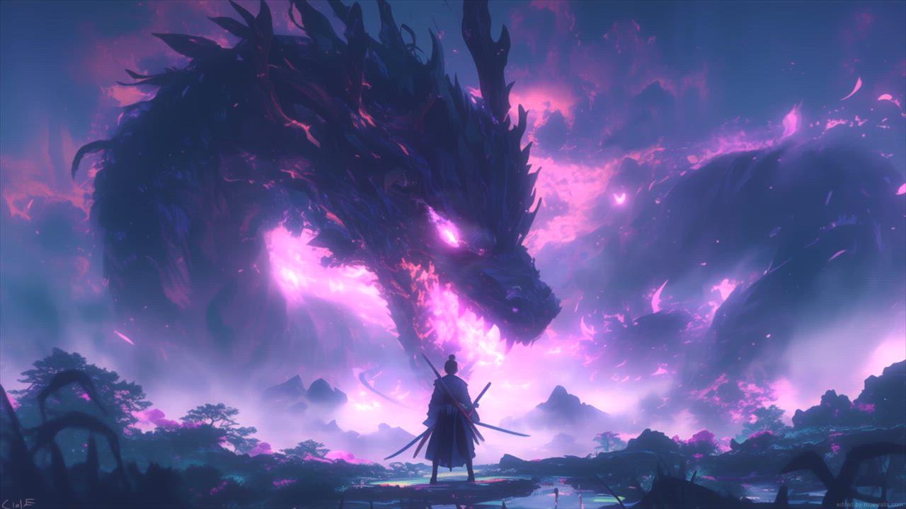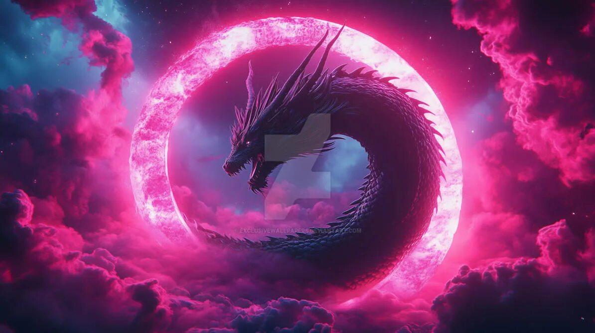 Древние драконы оживают в огне и славе! Дракон фон Неоновый дракон Заставка на два монитора Дракон Кирю якудза Фиолетовый дракон виверна Фоны