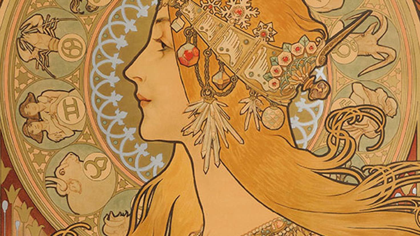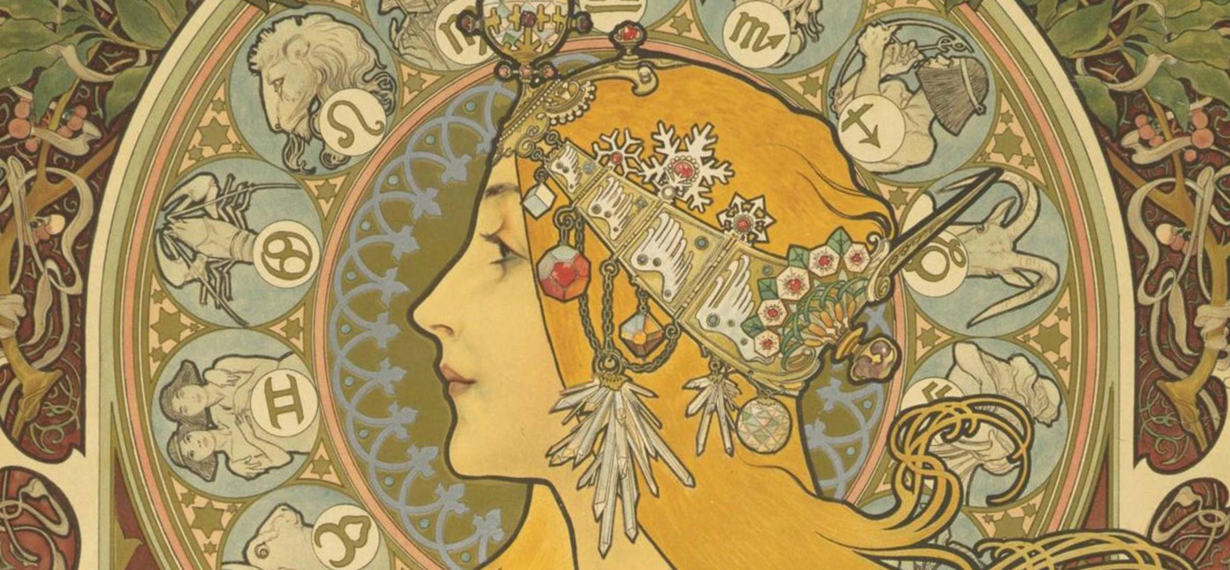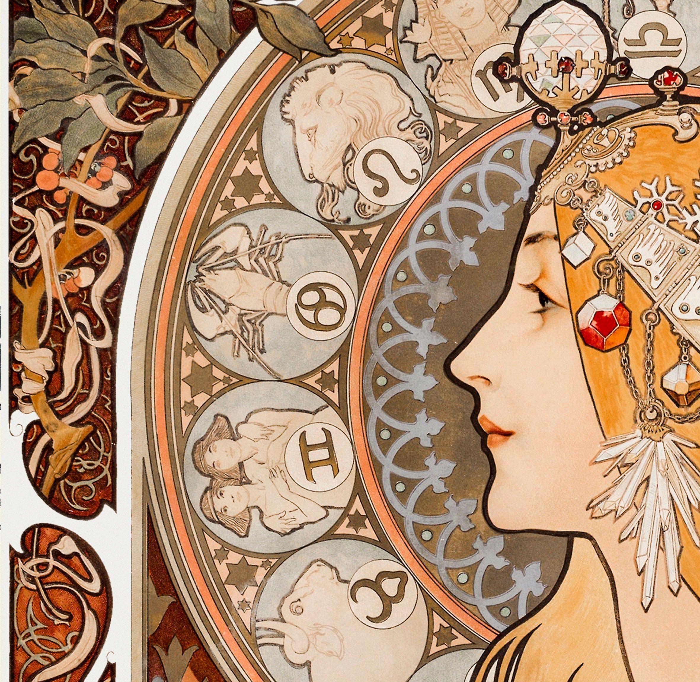 Звездные символы в стиле модерн La trappistine альфонс муха Альфонс муха времена года Альфонс муха арт нуво Альфонс муха колода таро Фоны