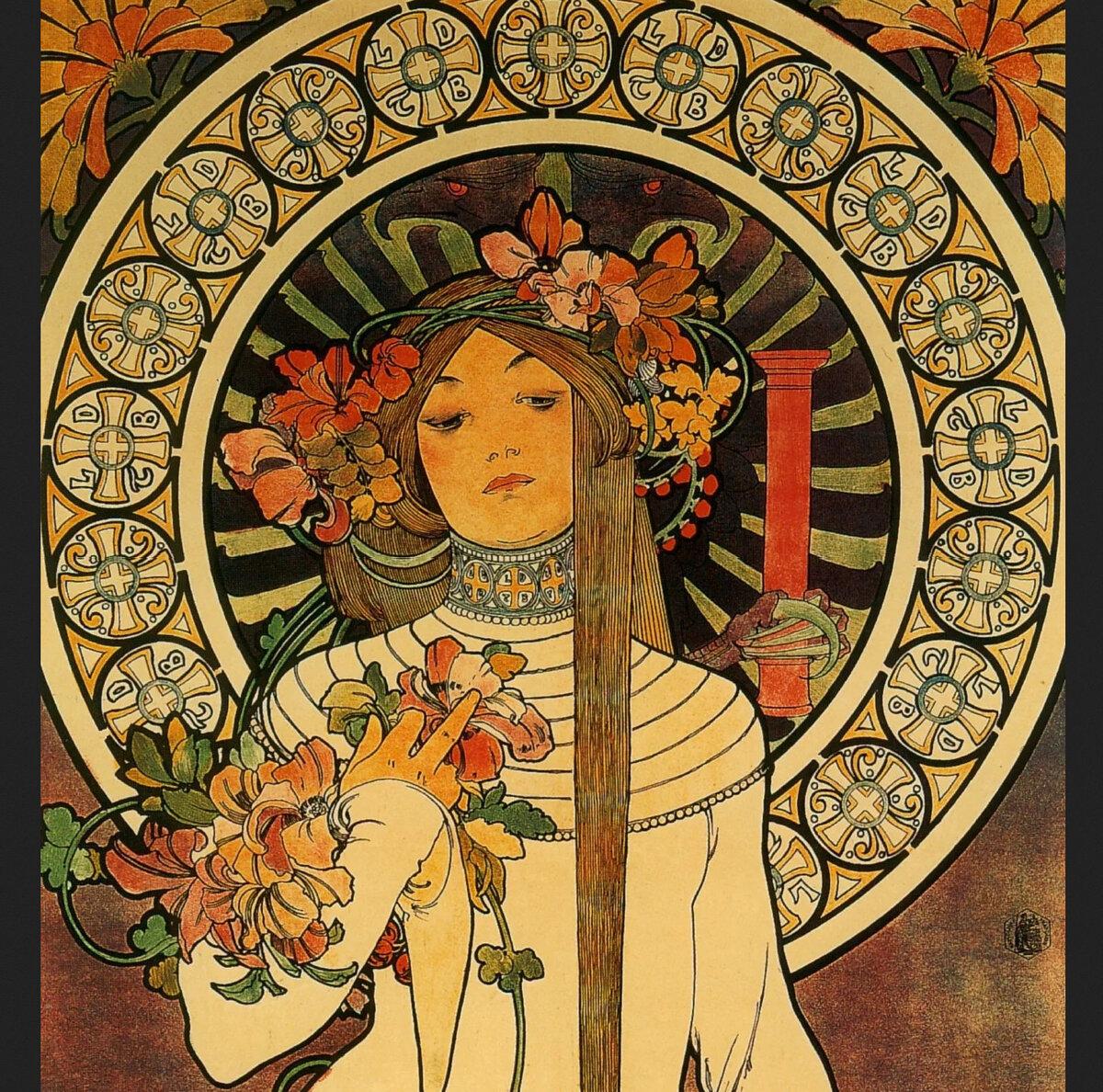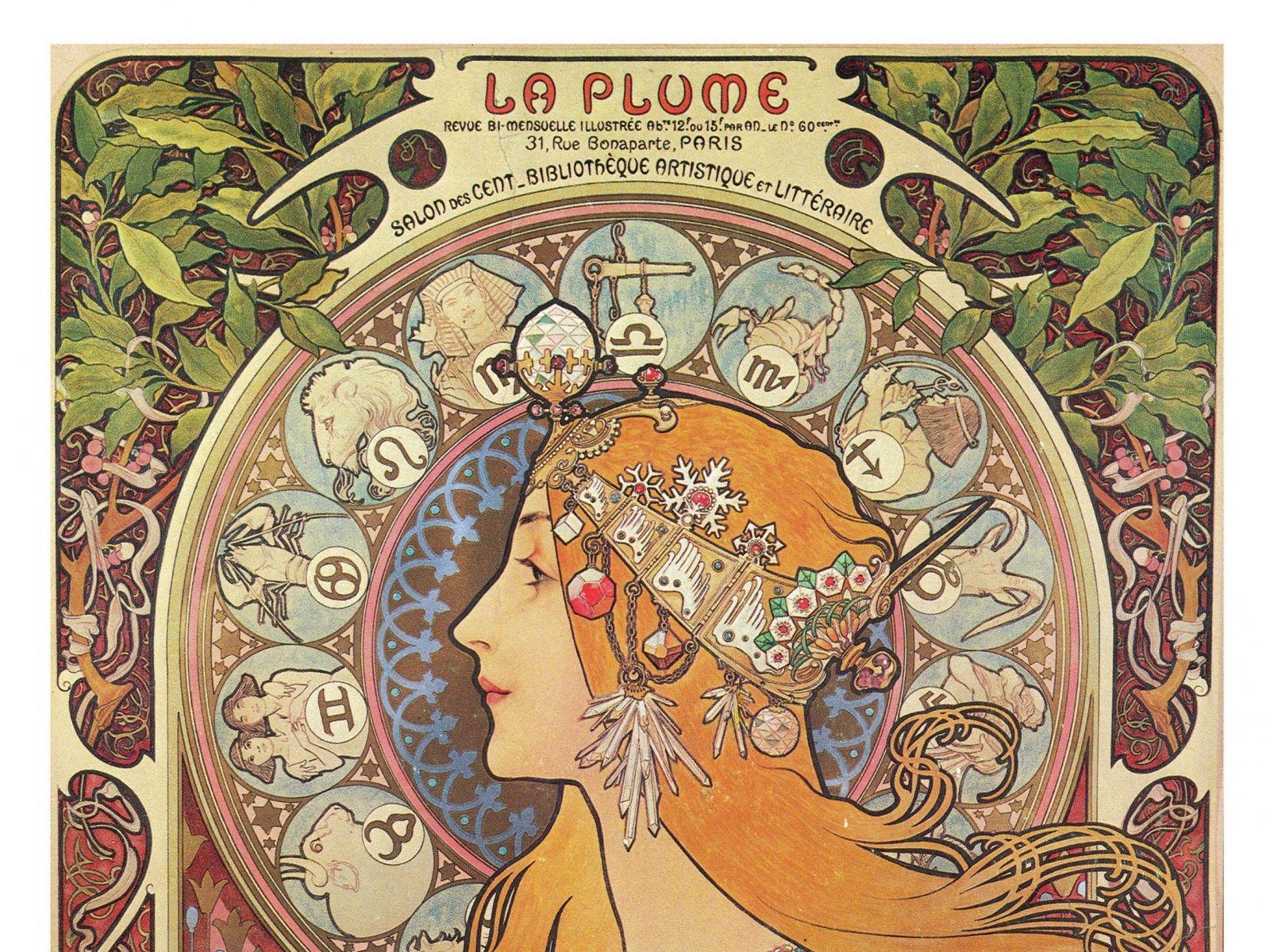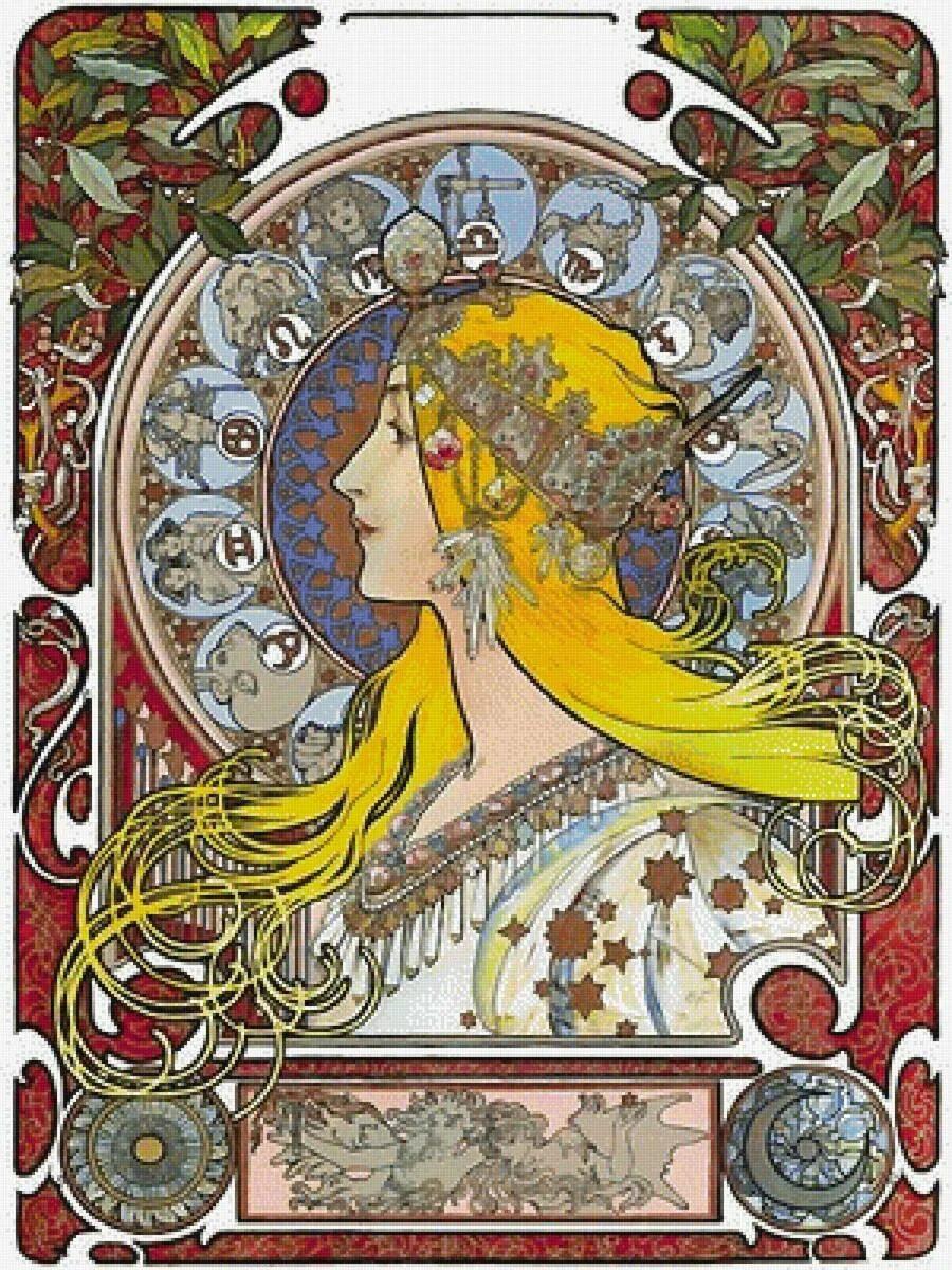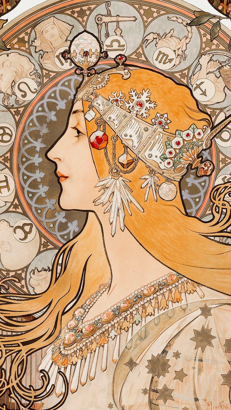 Звездные символы в стиле модерн La trappistine альфонс муха Альфонс муха времена года Альфонс муха арт нуво Альфонс муха колода таро Фоны