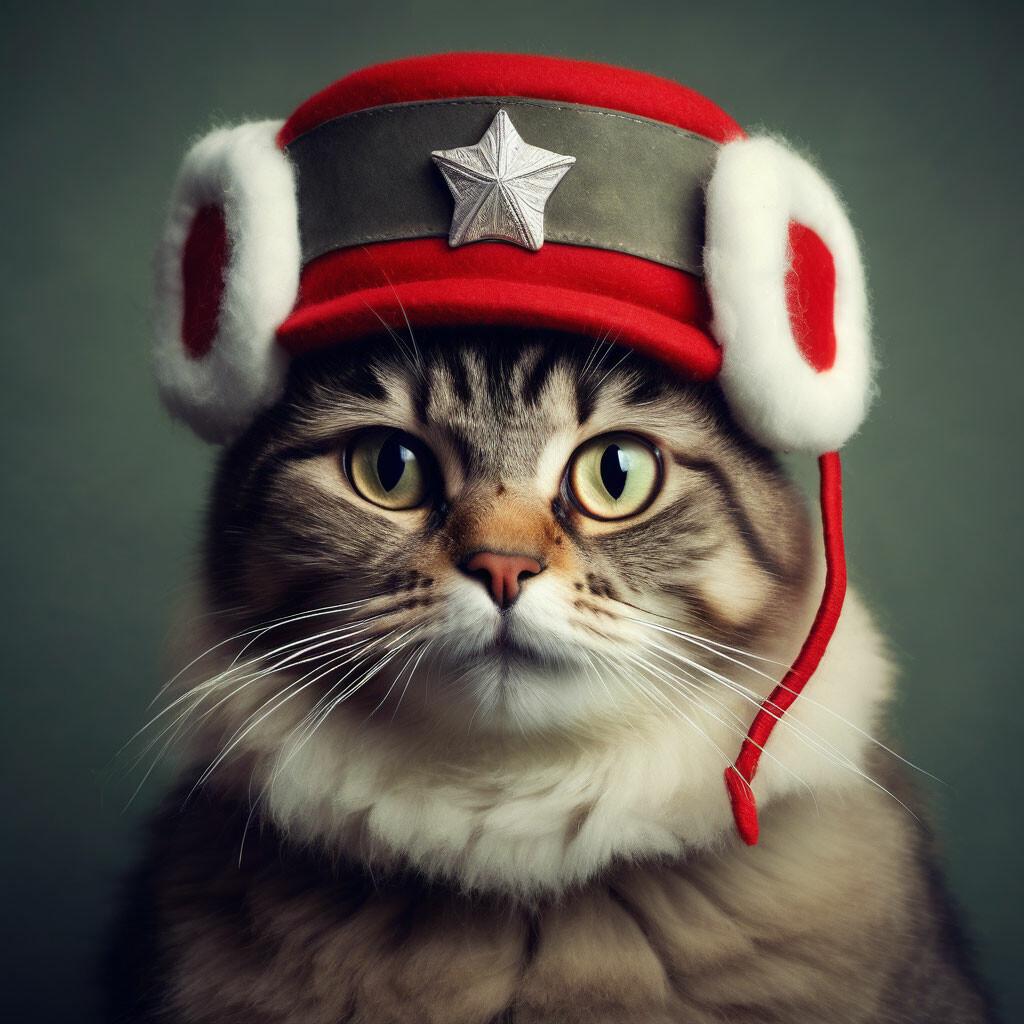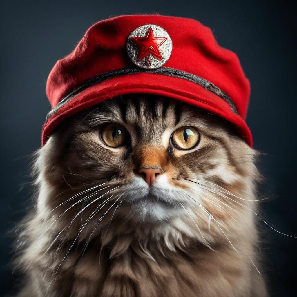 Кот в ушанке на фоне флага СССР - это забавное изображение, сочетающее в себе милую кошачью мордочку и советскую символику. Кот выглядит серьёзно и важно, словно понимает значение флага за своей спиной. Ушанка на его голове придаёт ему человеческий вид, делая образ ещё более забавным. Флаг СССР на фоне напоминает о советской эпохе, о времени, когда страна была великой державой. Кот в ушанке на фоне флага СССР олицетворяет связь между прошлым и настоящим, между серьёзным и забавным. Этот образ может вызывать как улыбку, так и ностальгию по ушедшей эпохе. Кот в ушанке на фоне флага СССР - это символ советского прошлого в современном мире.