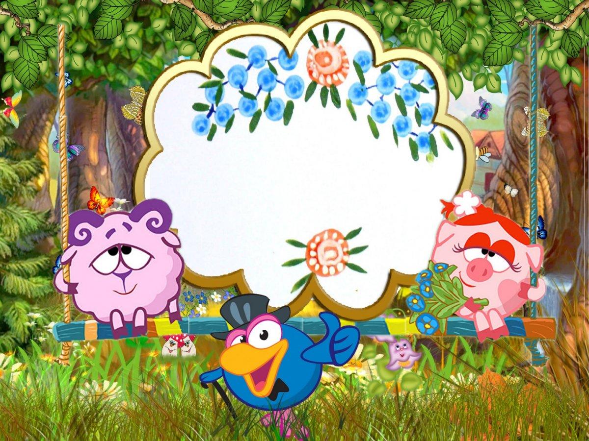 Смешарики учат с улыбкой! Карыч из смешариков Рамки детские Группа смешарики в детском саду Рамка смешарики Смешарики Крош и Нюша Фоны