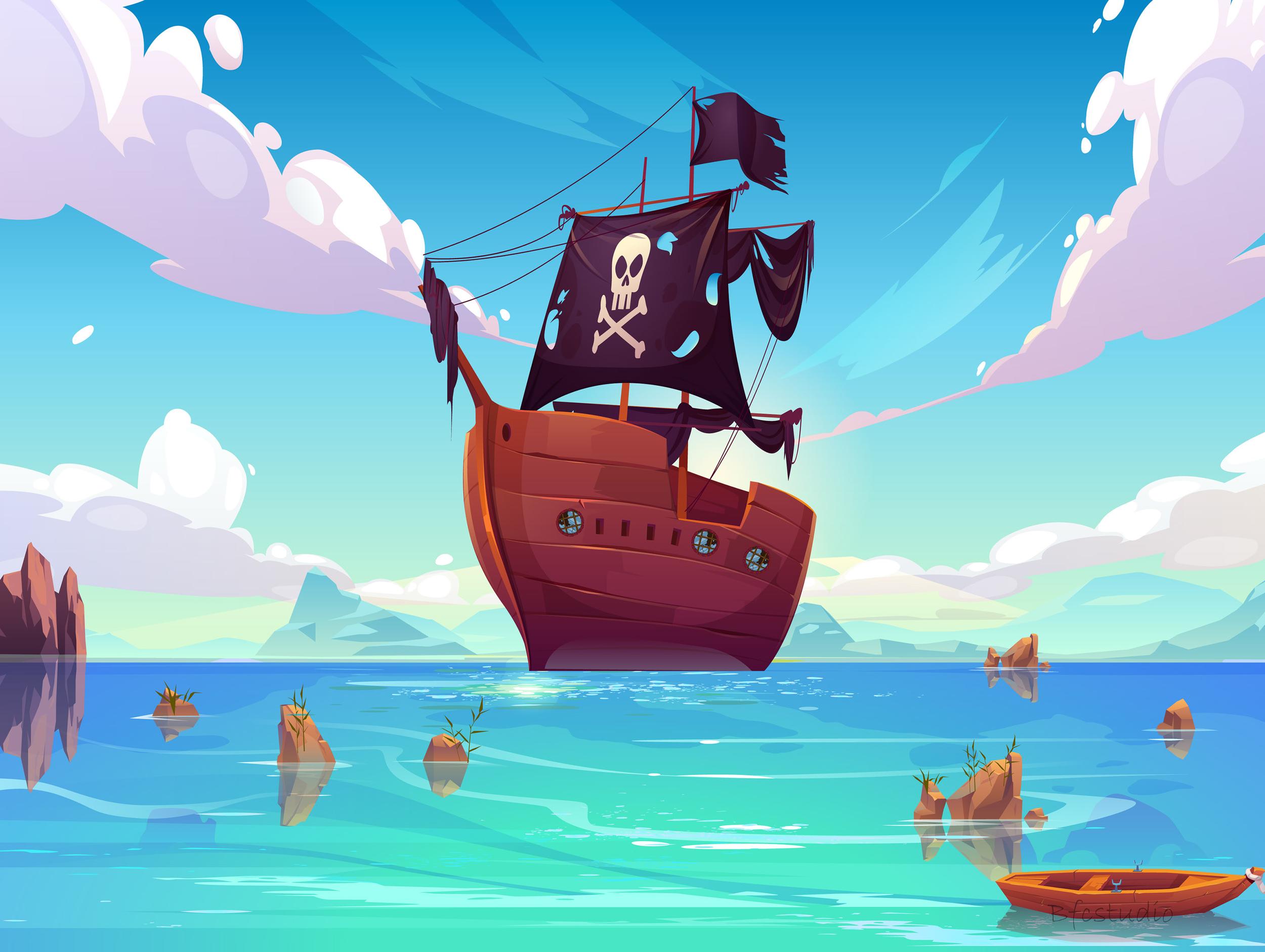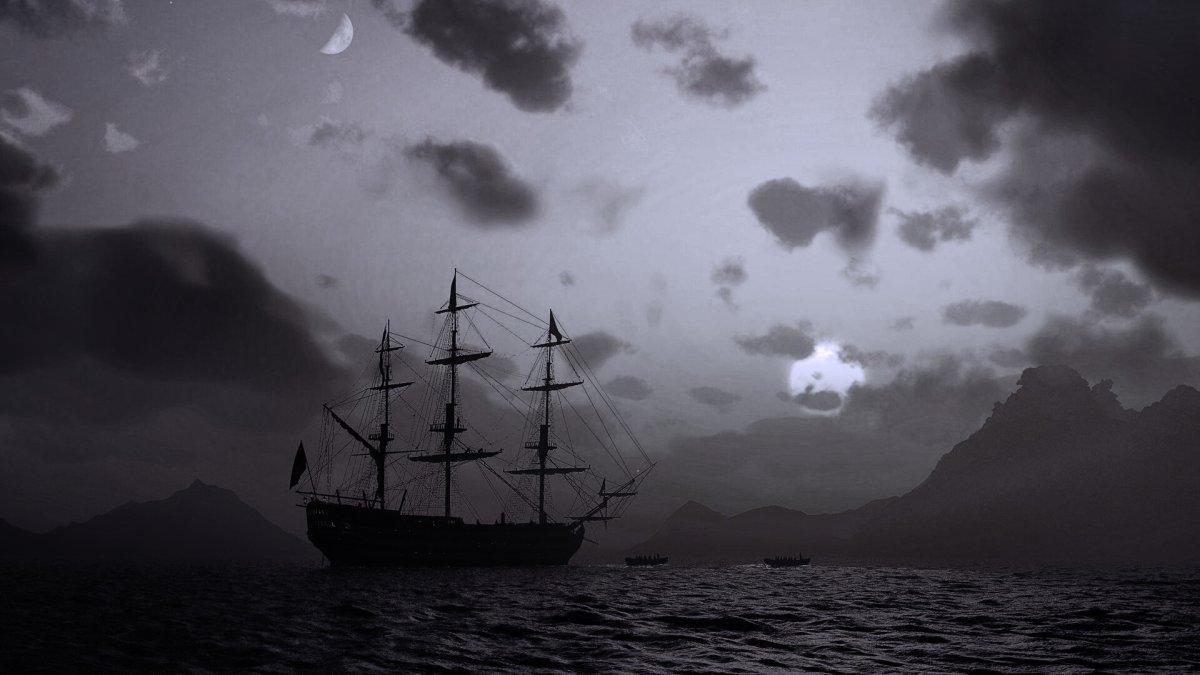 Морские разбойники на горизонте! Пираты Карибского моря черная Жемчужина Корабль "Летучий голландец" Пираты Карибского моря корабль 4к Корабли пиратские Пиратский корабль мультяшный Фоны