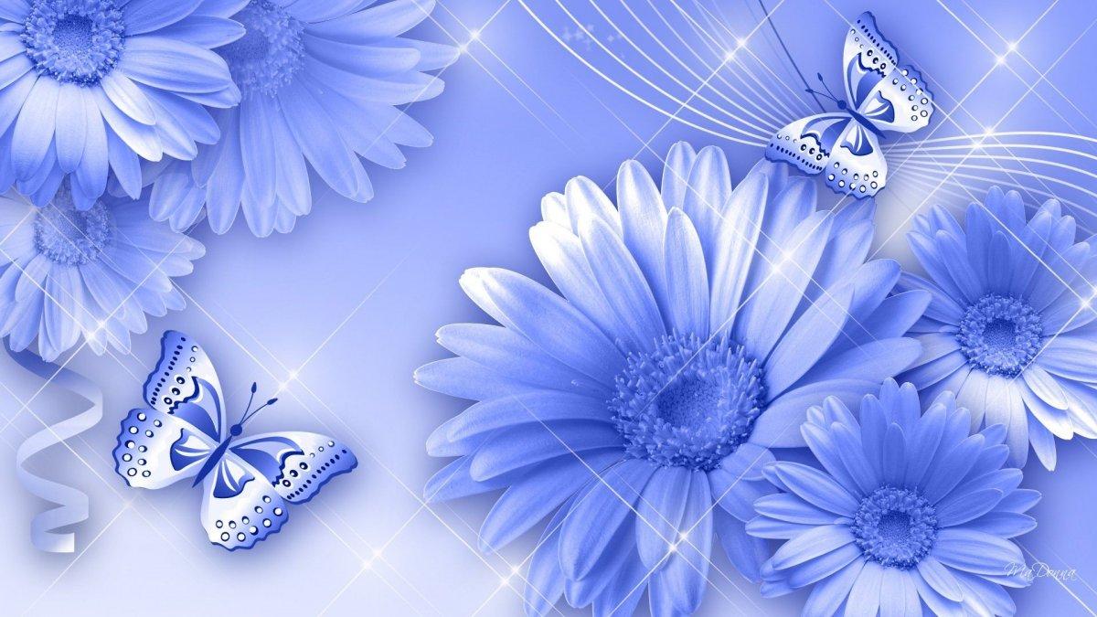 Голубой фон с цветами