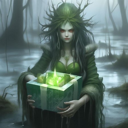 Болотная ведьма в иллюстрациях предстает как хранительница древних знаний, живущая в гармонии с дикой природой топких угодий. Эти арты демонстрируют уникальный стиль жизни в болотах: хижина на сваях, сплетенная из камыша и костей животных, котел с варевом из болотных трав, и связки сушеных грибов, источающих таинственное свечение. Художники детально прорабатывают атмосферу: густой туман, стелящийся над водой, крики болотных птиц и шорох осоки на ветру. Каждая пикча передает мудрость ведьмы - ее морщинистое лицо, отмеченное веками знаний, и глаза, видящие сквозь завесу обыденности. Особое внимание уделяется ее связи с природой: растения, растущие из ее одежды, насекомые, служащие ей верными помощниками, и духи болот, танцующие в лунном свете. Эти изображения особенно ценны для любителей славянского фольклора и поклонников экологической тематики.