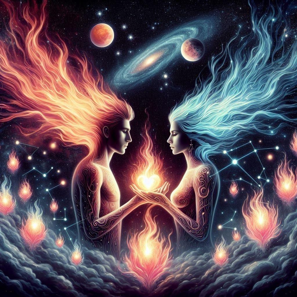 Близнецовое пламя в иллюстрациях представляет собой завораживающую галерею образов, исследующих тему двойственности и единства противоположностей. Эти фотки демонстрируют разнообразие интерпретаций огненных близнецов: от абстрактных композиций с переплетающимися языками пламени до антропоморфных фигур, олицетворяющих разрушение и созидание. Художники мастерски используют цветовую палитру - от золотистого сияния творческого огня до багрового зарева разрушительной силы. Каждая пикча рассказывает о философской глубине концепции: вот два пламени борются за доминирование, а вот они сливаются в гармоничное целое, рождая нечто новое. Особый акцент делается на символике - двойные тени, отражающиеся в воде, и спирали дыма, образующие бесконечные петли. Эти арты особенно привлекают любителей символизма и поклонников концептуального искусства.
