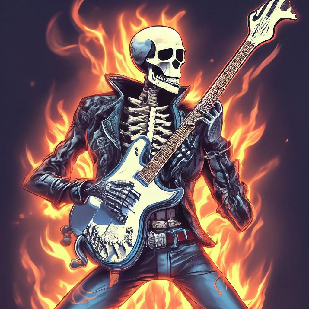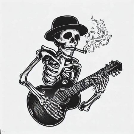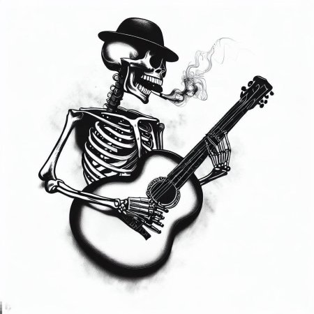 Скелет с гитарой в иллюстрациях представляет собой юмористическую галерею образов, где мертвец оживает через музыку рока. Эти арты демонстрируют разнообразие стилей: от классического рокера с электрогитарой до джазмена с акустикой. Художники мастерски передают атмосферу - динамичное освещение софитов и пар от 'дыхания' скелета. Каждая пикча рассказывает о страсти: вот костлявые пальцы извлекают соло, а вот череп улыбается в экстазе. Особое внимание уделяется деталям - черепные наушники, позвонки вместо струн и пустые глазницы, горящие огнем. Эти изображения особенно радуют меломанов и любителей черного юмора.