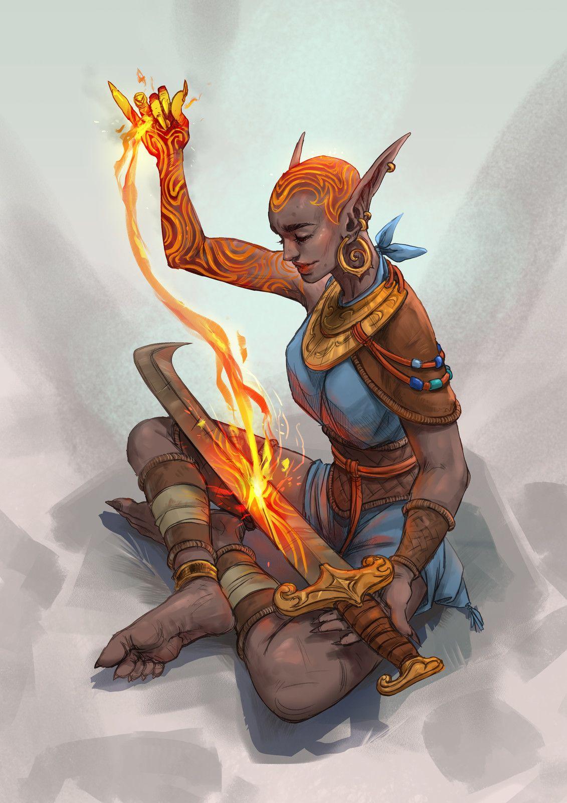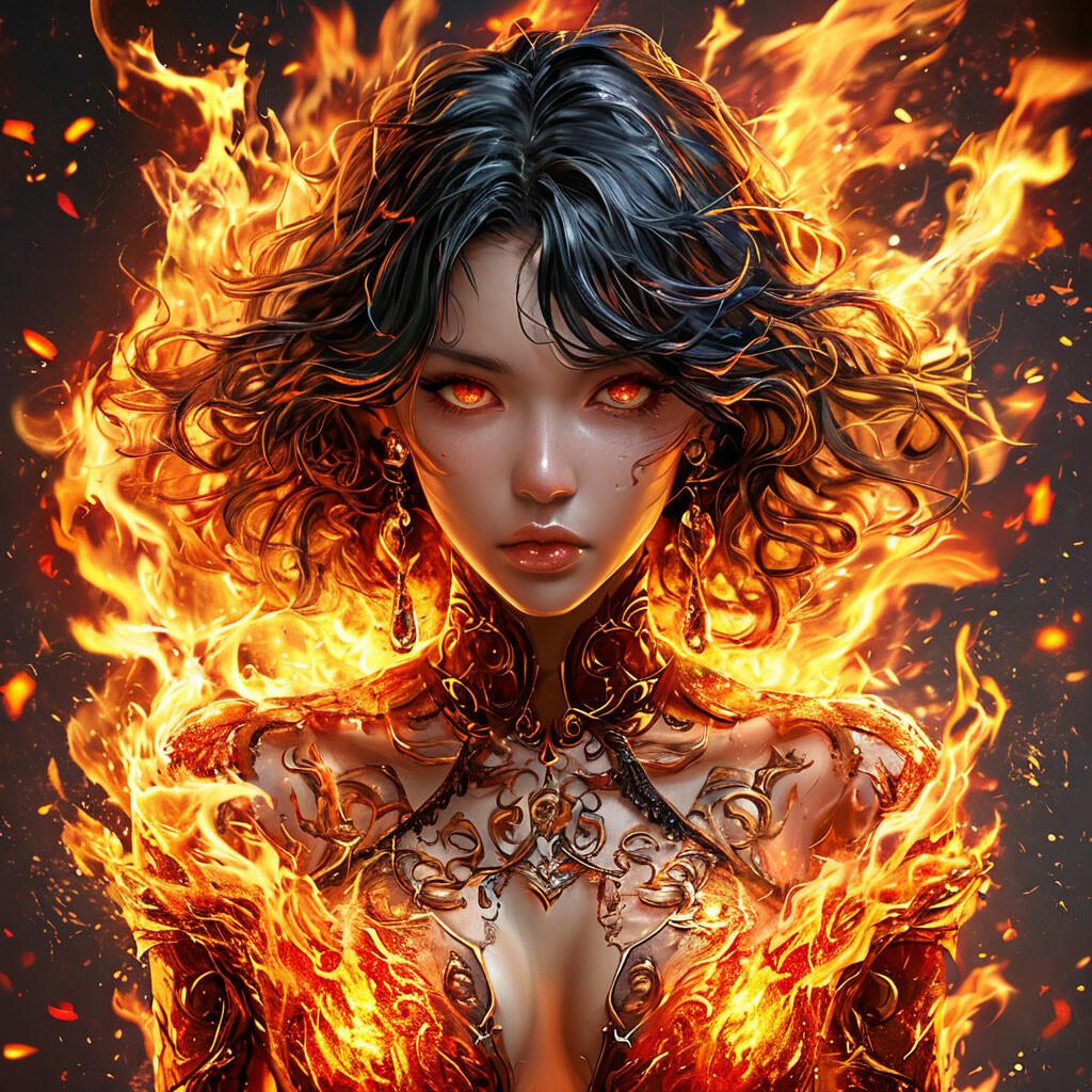 Огненный Дженази предстает как живое воплощение первобытного хаоса, где пламя становится одновременно разрушителем и созидателем. В этих иллюстрациях мы видим не просто огонь, а разумное существо с собственной волей и характером. Каждая картинка наполнена динамикой - от спокойного горения до бурных вспышек ярости. Тематические элементы включают языки пламени, пепел, дым и ощущение жара, которое практически ощущается через экран. Арты передают двойственность огня: его способность как уничтожать, так и освещать путь в темноте.