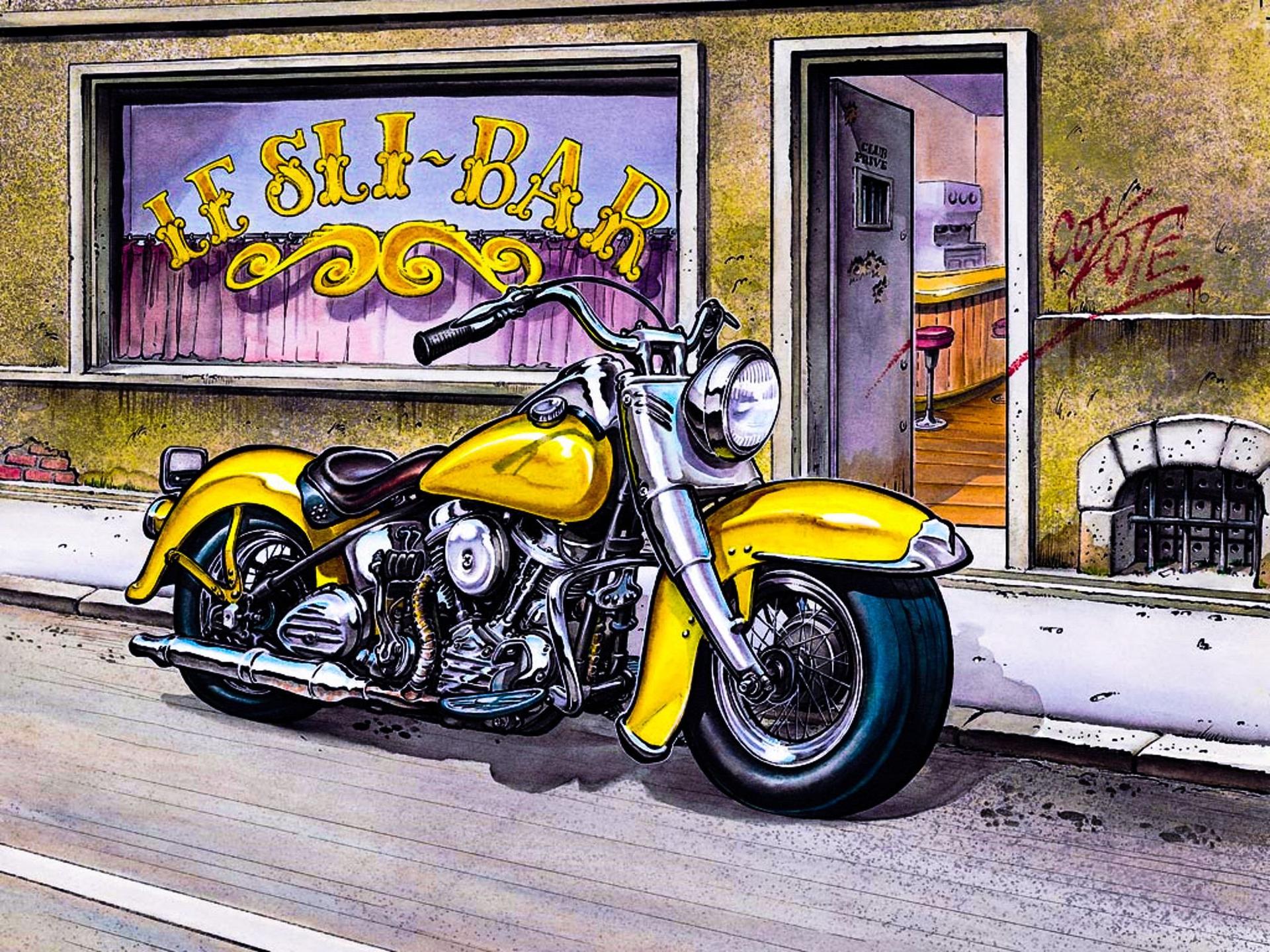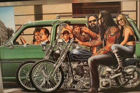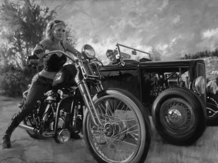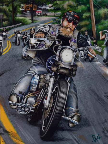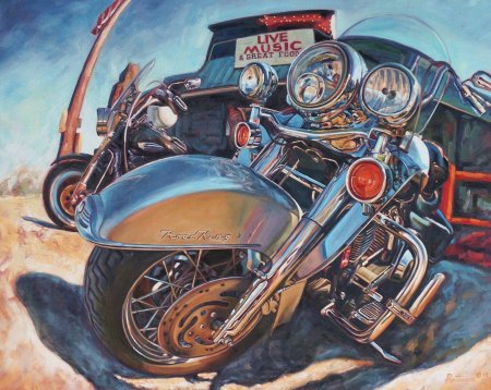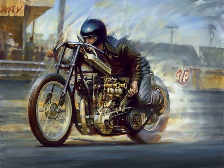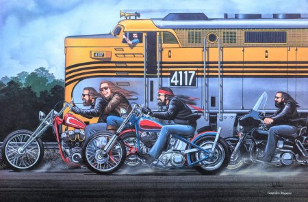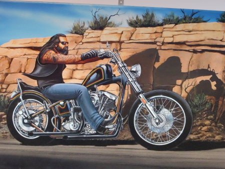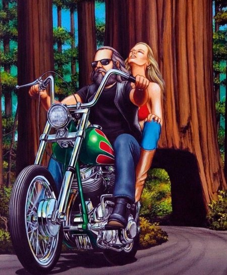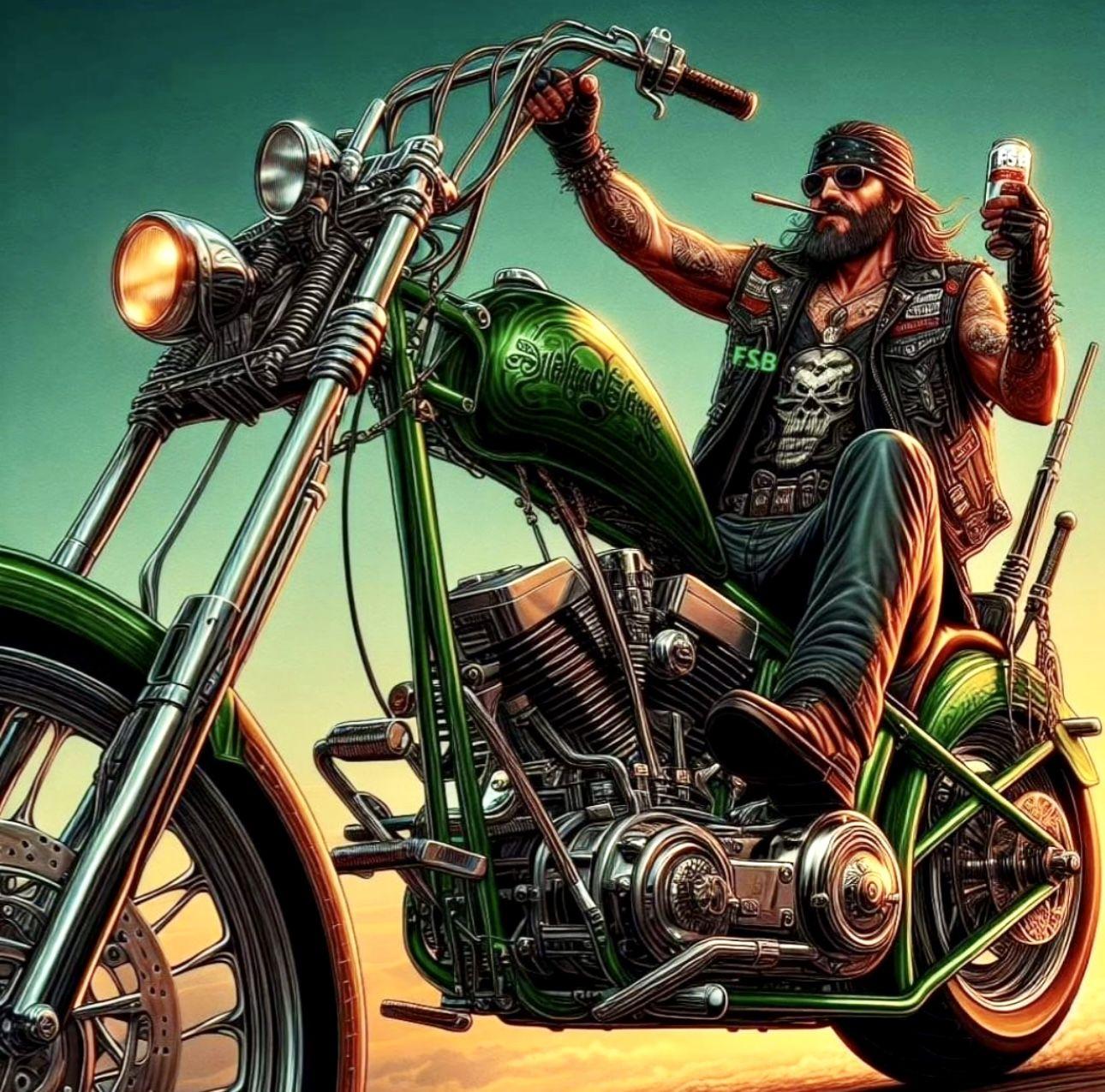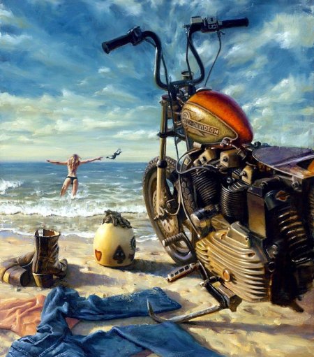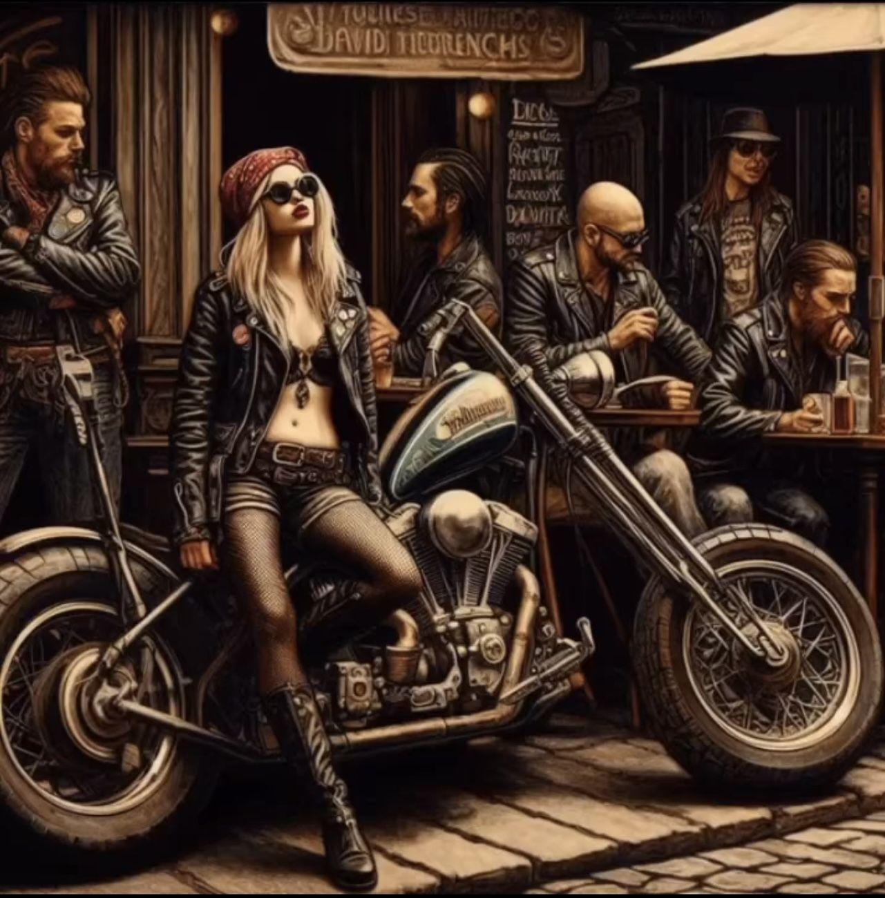 Байкерские мотоциклы в этих иллюстрациях предстают как продолжение личности их владельцев - сильные, независимые и неукротимые. Каждая модель рассказывает свою историю о приключениях и свободе. От классических харлеев до современных спортбайков - все они объединены духом дороги. Тематические элементы включают хромированные детали, кожаные куртки, шлемы и атмосферу открытого шоссе. Арты передают ощущение скорости и адреналина, где мотоцикл становится не просто транспортом, а образом жизни и философией.