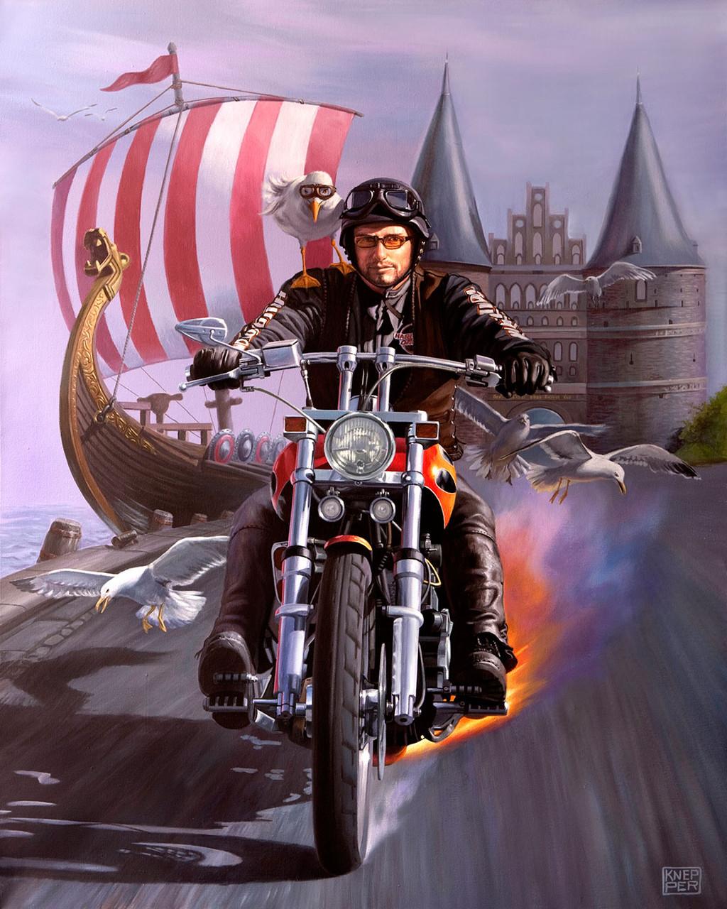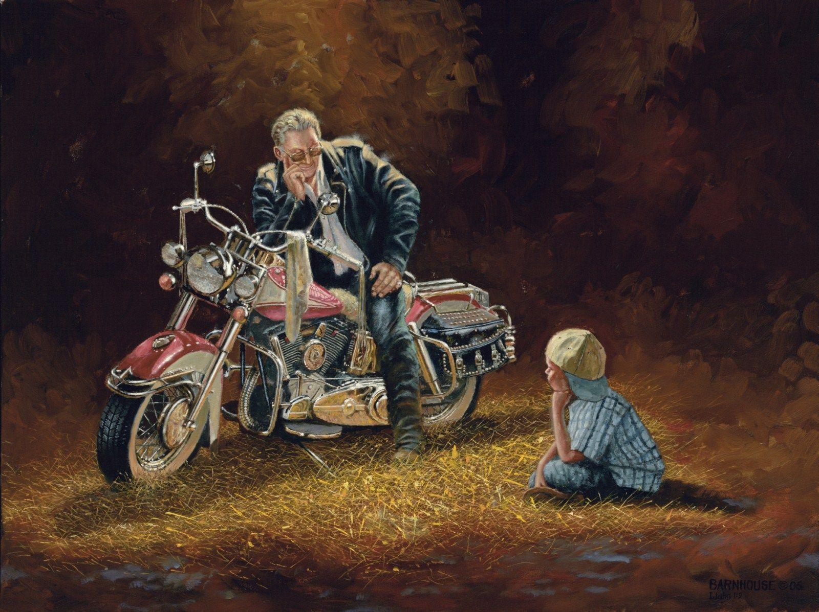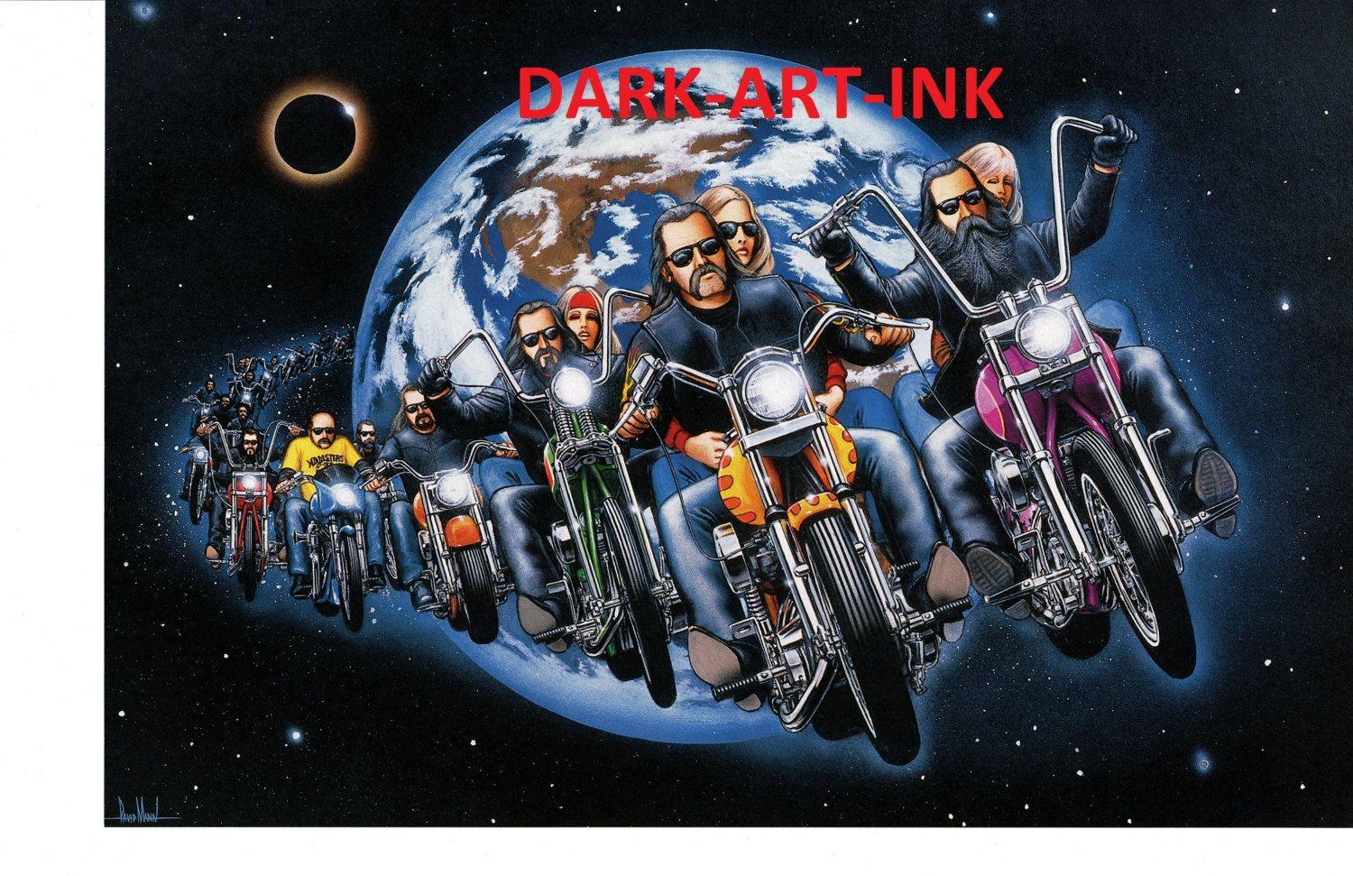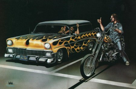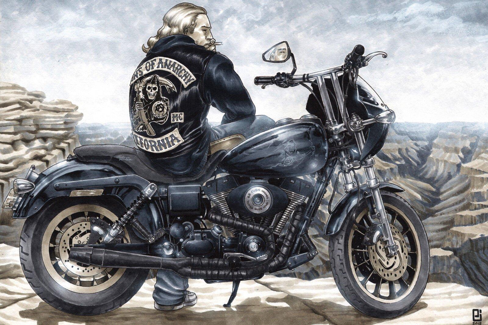 Байкерские мотоциклы в этих иллюстрациях предстают как продолжение личности их владельцев - сильные, независимые и неукротимые. Каждая модель рассказывает свою историю о приключениях и свободе. От классических харлеев до современных спортбайков - все они объединены духом дороги. Тематические элементы включают хромированные детали, кожаные куртки, шлемы и атмосферу открытого шоссе. Арты передают ощущение скорости и адреналина, где мотоцикл становится не просто транспортом, а образом жизни и философией.