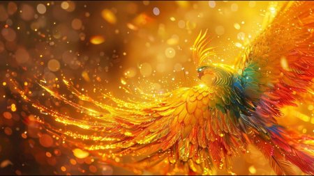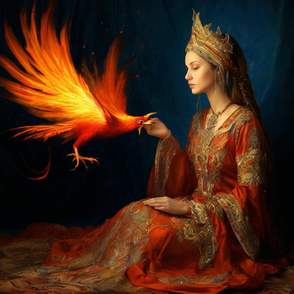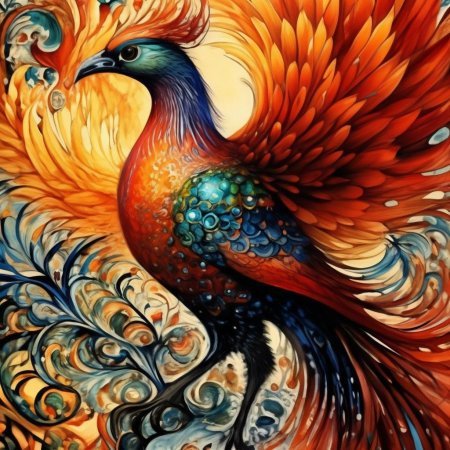 Жар-птица предстает в этих иллюстрациях как живое воплощение славянской мечты - прекрасная птица с огненными перьями, символизирующая удачу, мудрость и возрождение. Ее образ сочетает грацию лебедя с мощью огненной стихии. Художники мастерски передают атмосферу волшебства - от золотистого сияния перьев до искр, разлетающихся при полете. Каждый рисунок наполнен символизмом: огненные перья как частицы солнца, золотой гребешок как корона, а песнь как музыка сфер. Птица изображена в различных ситуациях - парящей над лесами, сидящей на ветке или дарящей перо герою. Особое внимание уделено цветовому решению - теплые золотые, оранжевые и красные тона создают ощущение живого огня. Арт-произведения варьируются от традиционных русских миниатюр до современных фантастических композиций. Коллекция подчеркивает темы духовного роста, достижения невозможного и волшебства, которое живет в народных сказках.