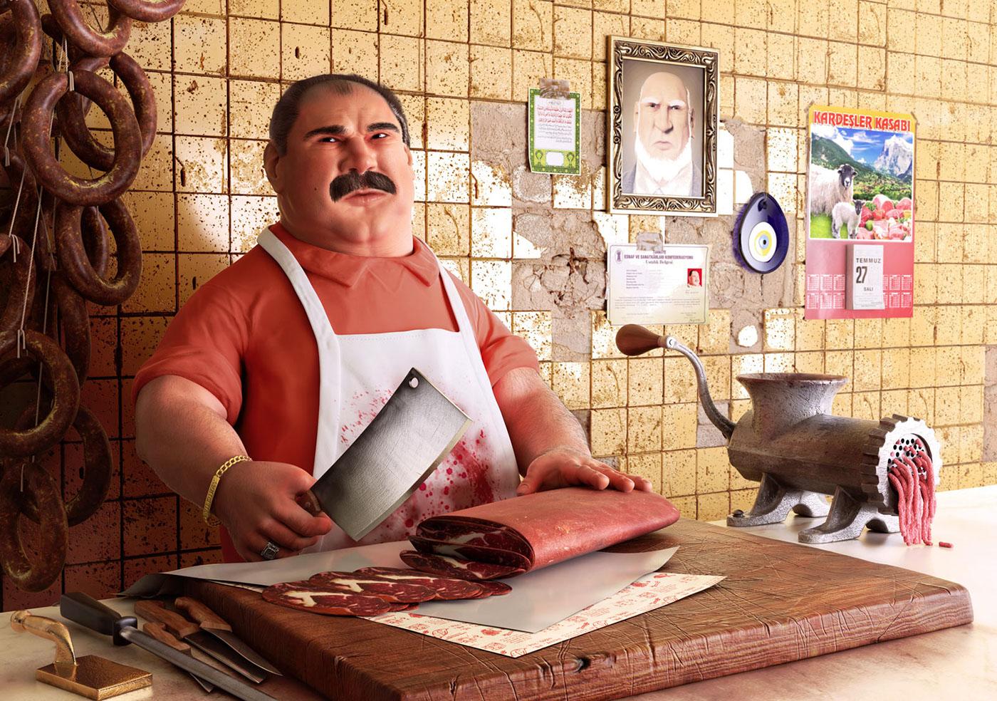 Мясник предстает в этих иллюстрациях как мастер древнего ремесла, воплощающий уважение к жизни и смерти в каждом разрезе. Его фигура за прилавком или у разделочного стола символизирует цикл существования - от животного к питанию. Художники мастерски передают атмосферу ремесла - от блеска ножей до текстуры мяса и специй. Каждый рисунок наполнен деталями профессионализма: точные движения рук, знание анатомии, уважение к продукту. Мясник изображен в различных аспектах работы - от выбора туш до финальной разделки и упаковки. Особое внимание уделено выражению лица - сосредоточенному и полному ответственности. Арт-произведения варьируются от реалистичных сцен до стилизованных композиций, где мясник предстает как современный алхимик. Коллекция подчеркивает темы уважения к пище, мастерства и понимания жизненных процессов. Каждый кадр рассказывает о философии ремесла, где красота заключается в совершенстве исполнения.