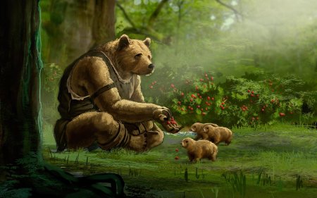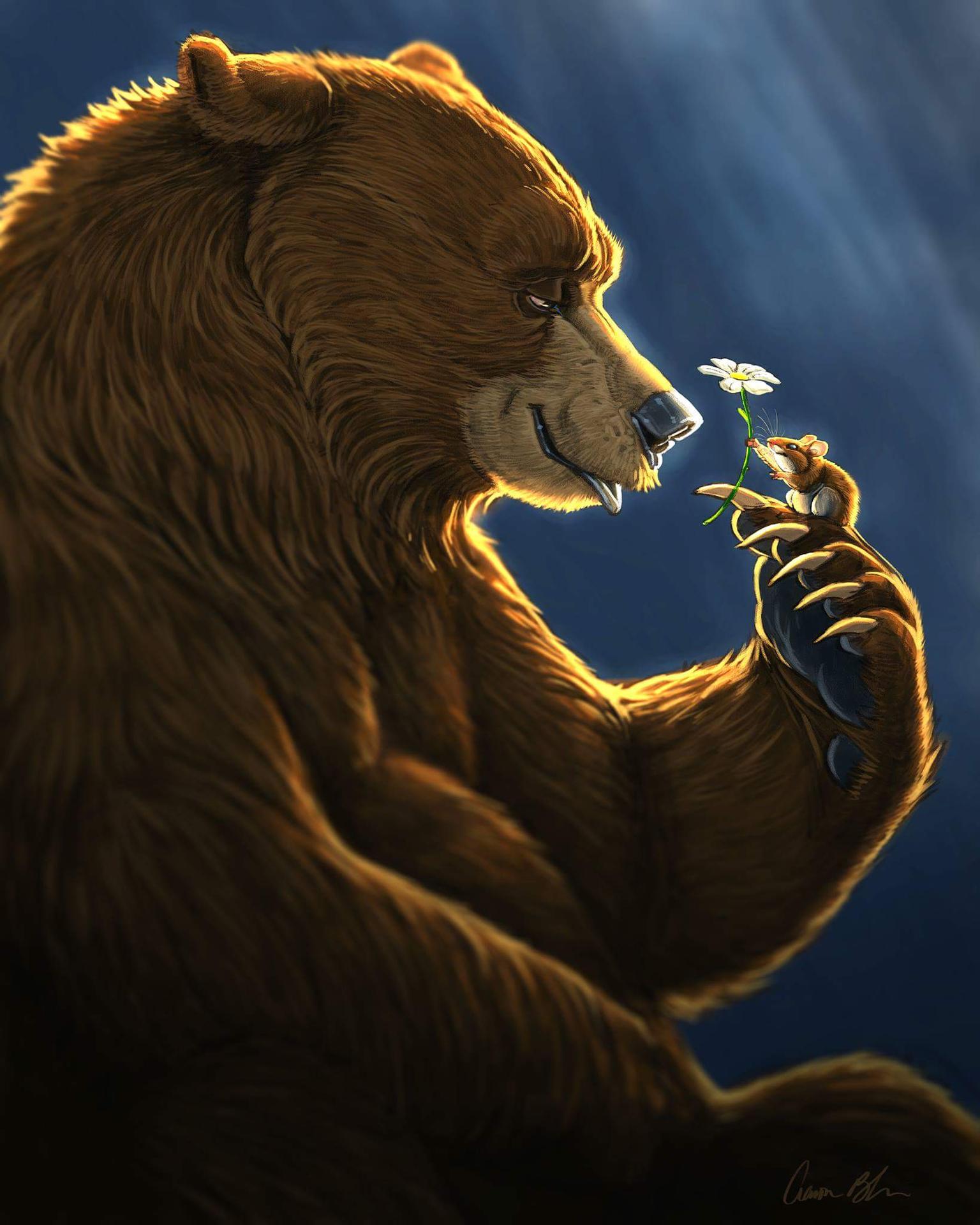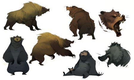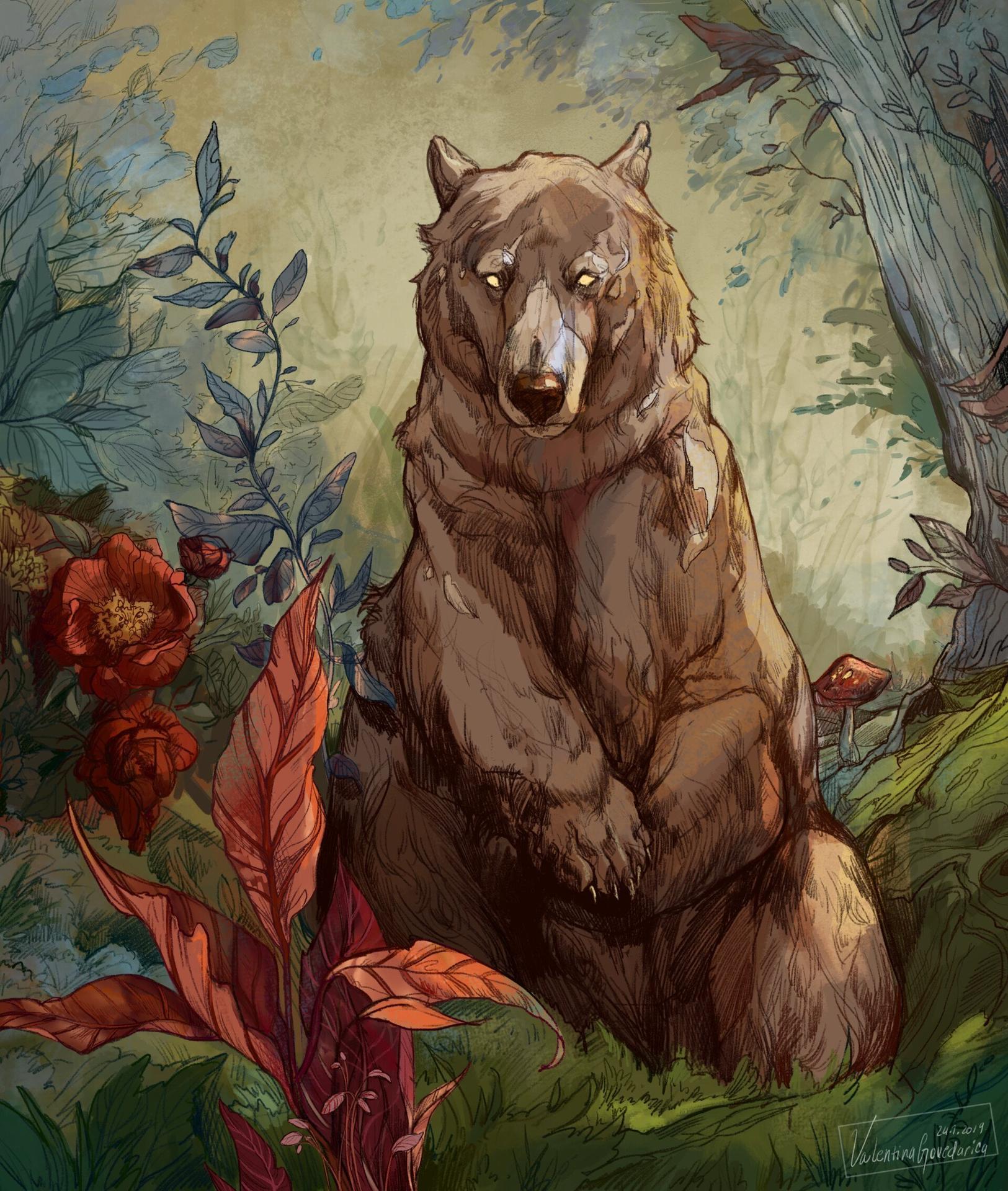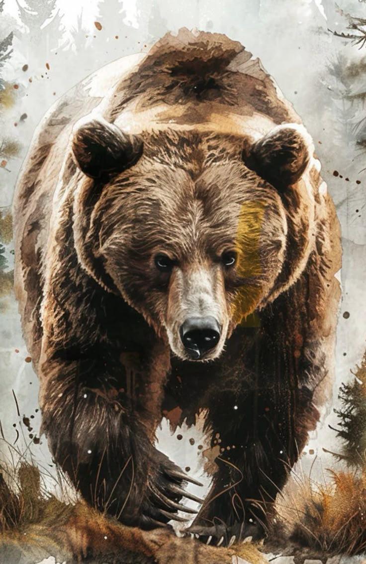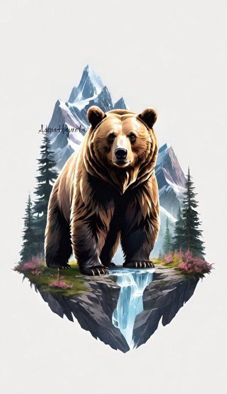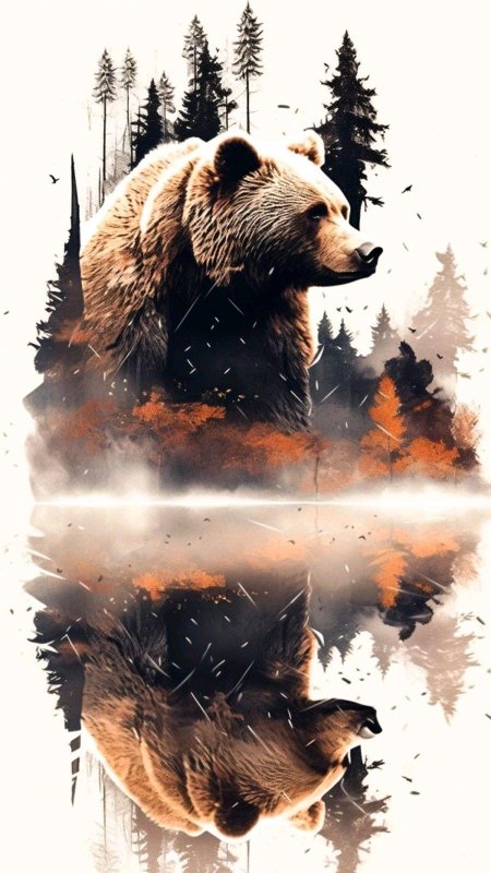 Медведь предстает в этих иллюстрациях как величественный царь леса, воплощающий необузданную силу и древнюю мудрость природы. Его массивная фигура с густой шерстью символизирует мощь и спокойствие одновременно. Художники мастерски передают атмосферу дикого леса - от шелеста листвы до запаха хвои и земли. Каждый рисунок детализирован до мельчайших элементов: текстура шерсти, выражение глаз и грациозные движения. Медведь изображен в различных ситуациях - бродящим по лесу, стоящим на задних лапах или отдыхающим у ручья. Особое внимание уделено цветовому решению - теплые коричневые и золотистые тона создают ощущение силы и надежности. Арт-произведения варьируются от реалистичных портретов до стилизованных композиций, где медведь предстает как мифическое существо. Коллекция подчеркивает темы уважения к природе, внутренней силы и гармонии с окружающим миром.