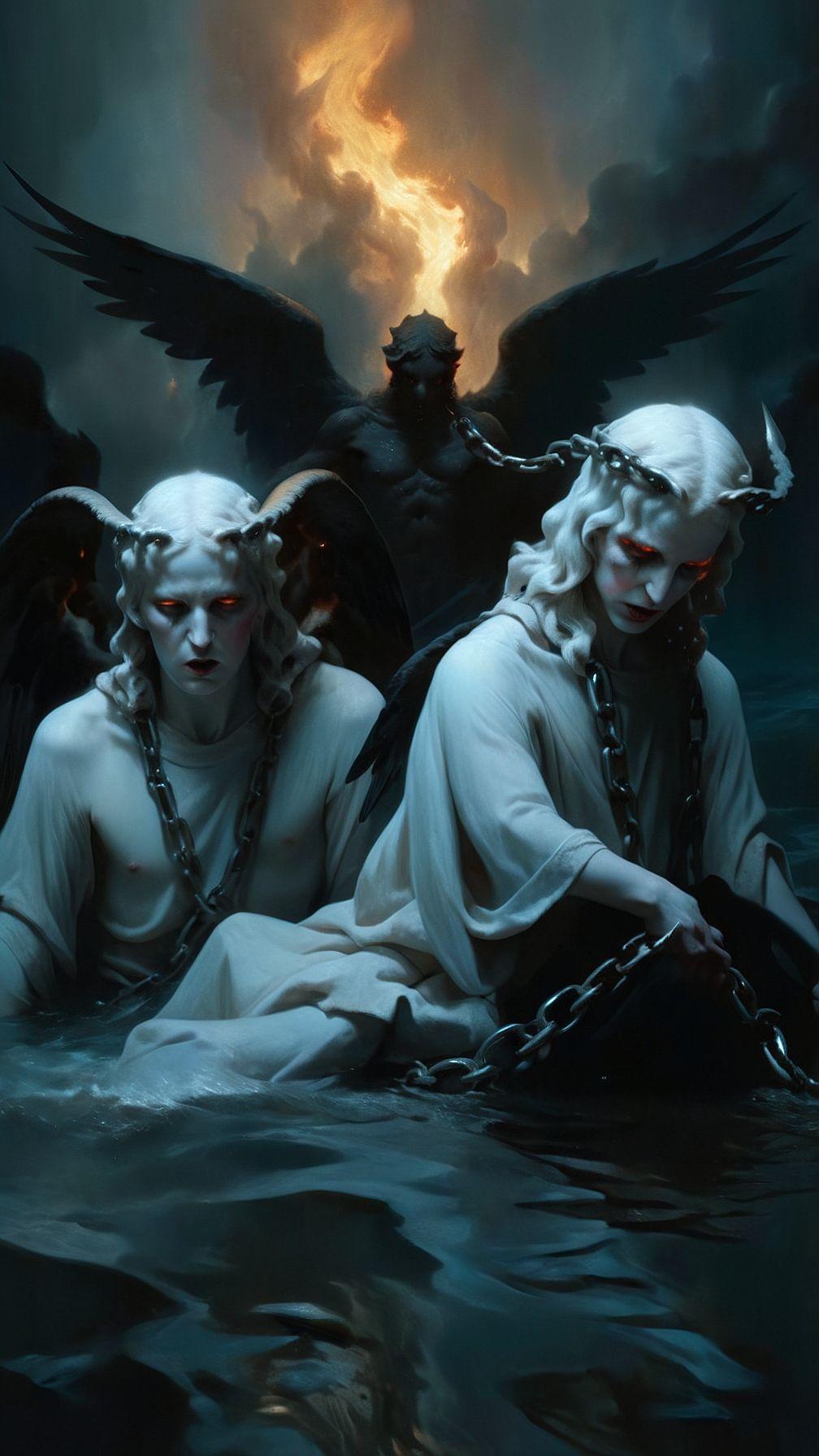 Эта серия изображений посвящена страшным ангелам - падшим существам, отвергнутым небесами за свои грехи. Арты показывают их в устрашающих образах: с обожженными крыльями, демоническими рогами и взглядом, полным отчаяния. Фотографии иллюстрируют их падение с небес и скитания в мире смертных. Пикчи демонстрируют атмосферу ада и чистилища. Клипарт включает детальные зарисовки поврежденных крыльев и священных символов. Эти изображения исследуют темы греха, искупления и двойственной природы добра и зла.