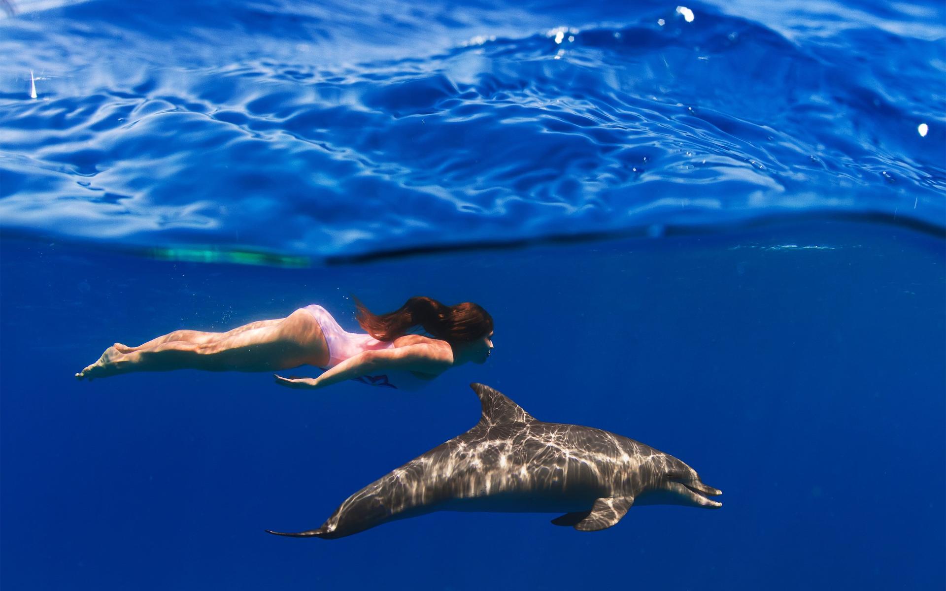 Девушки плавают под водой