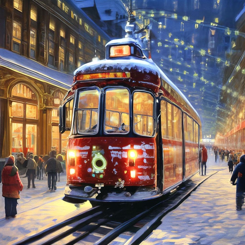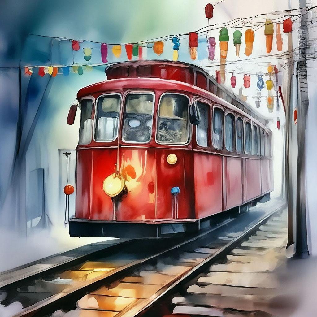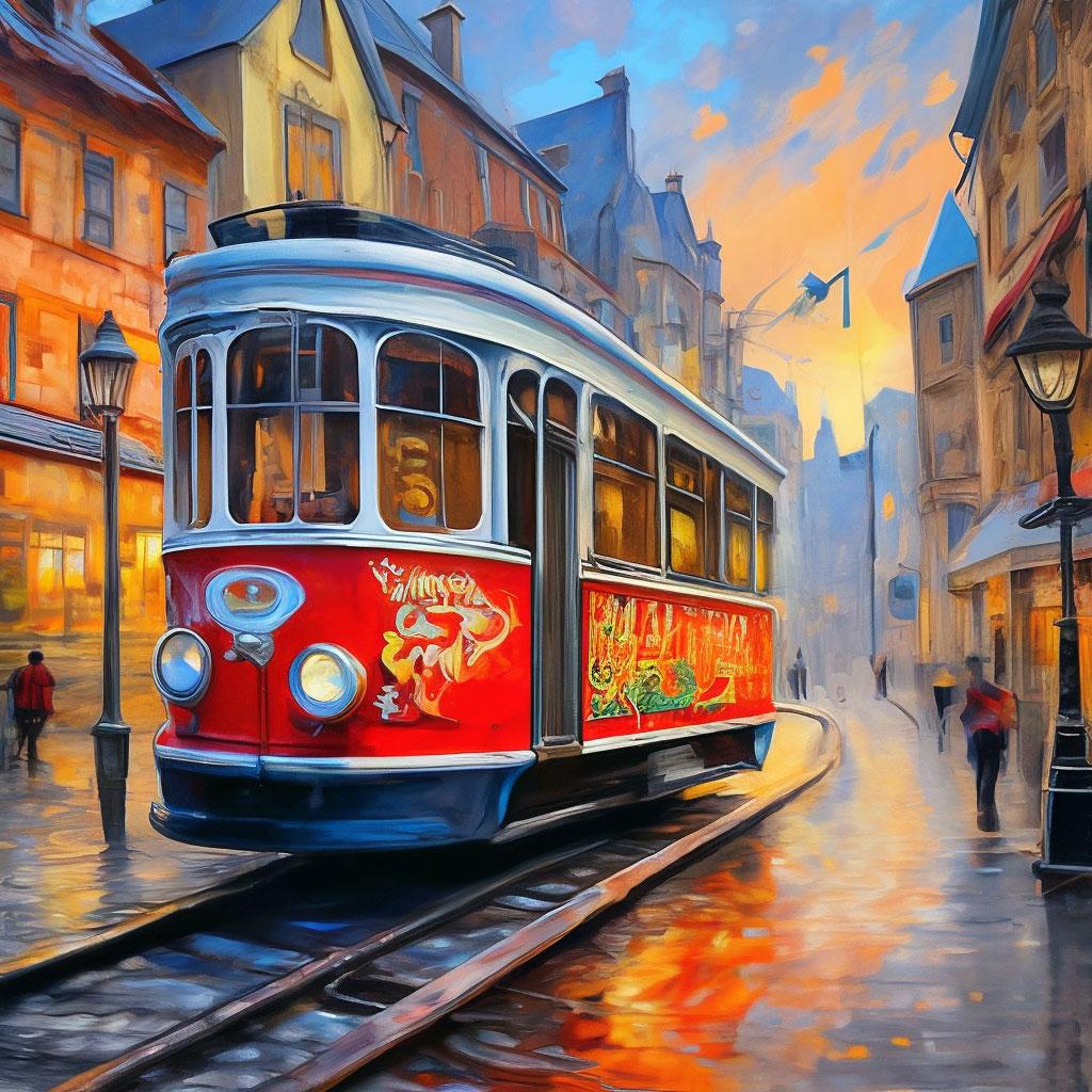 В мире, где технологии переплетаются с магией, сказочный трамвай становится символом удивительных путешествий. Эти иллюстрации показывают старинный вагон на паровой тяге, который вместо обычных рельсов скользит по серебристым нитям волшебства, перевозя пассажиров сквозь измерения и эпохи. Трамвай предстает как живой организм - с окнами, открывающимися в разные миры, и проводником-волшебником, управляющим маршрутами. Коллекция включает разнообразные сцены: от утренних рейсов по туманным лесам до ночных путешествий сквозь звездные бездны. Каждый рисунок рассказывает о пассажирах - эльфах, возвращающихся из дальних странствий, ведьмах, спешащих на шабаш, или обычных людях, открывающих для себя чудеса. Сказочный трамвай воплощает мечту о путешествиях, где каждый поворот рельсов может привести к новому приключению.