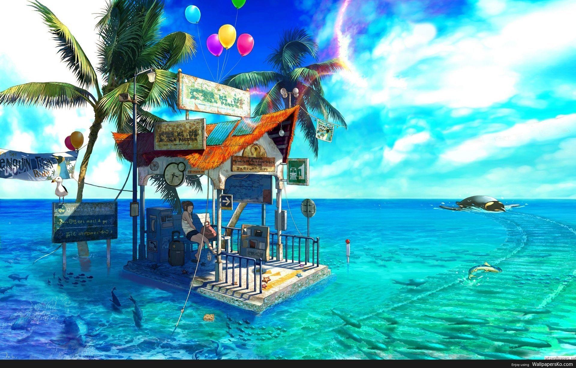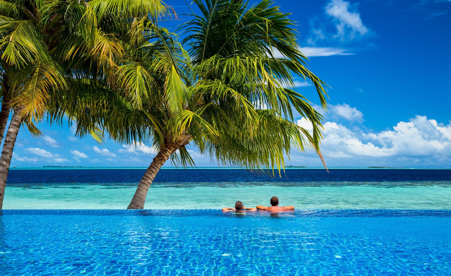 Девушки у моря с пальмами