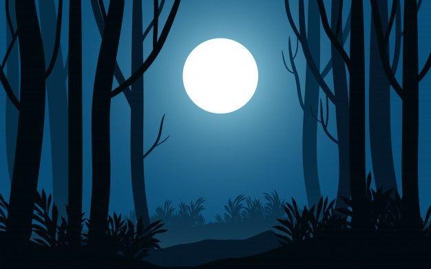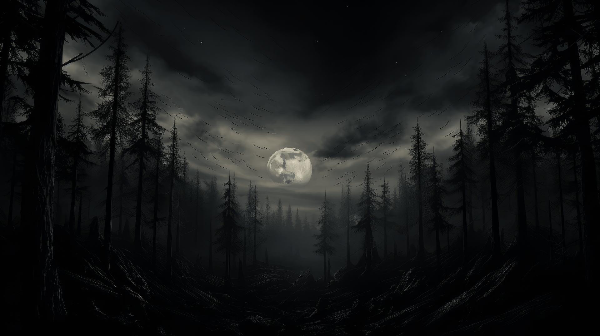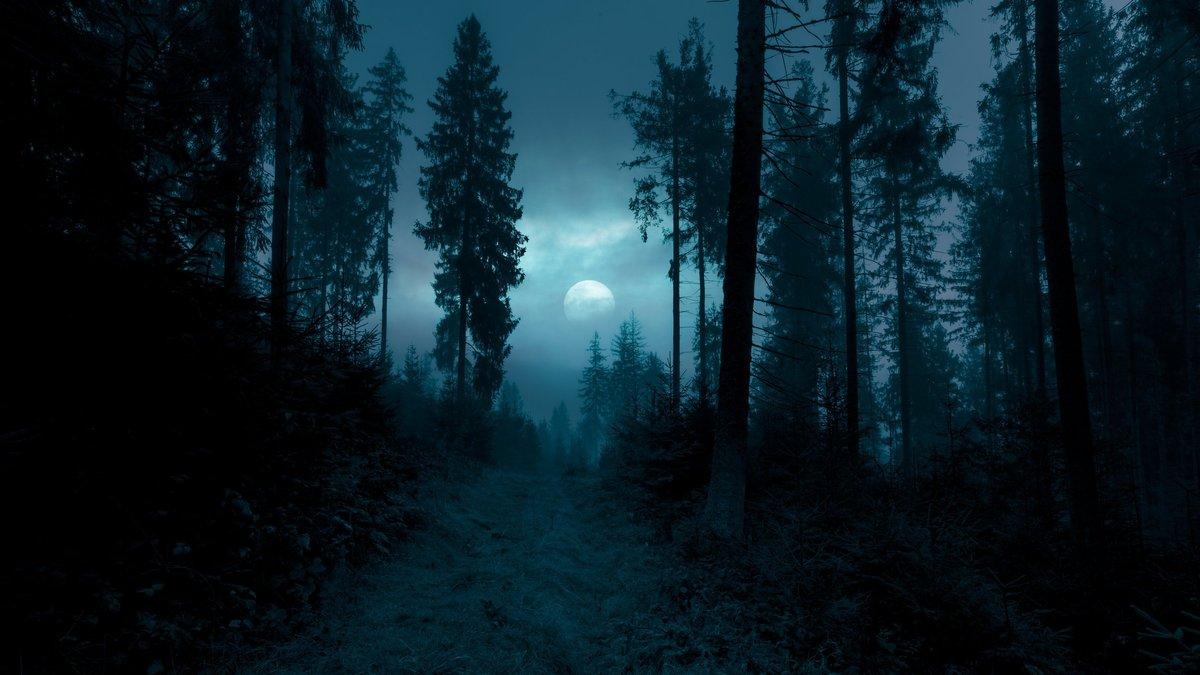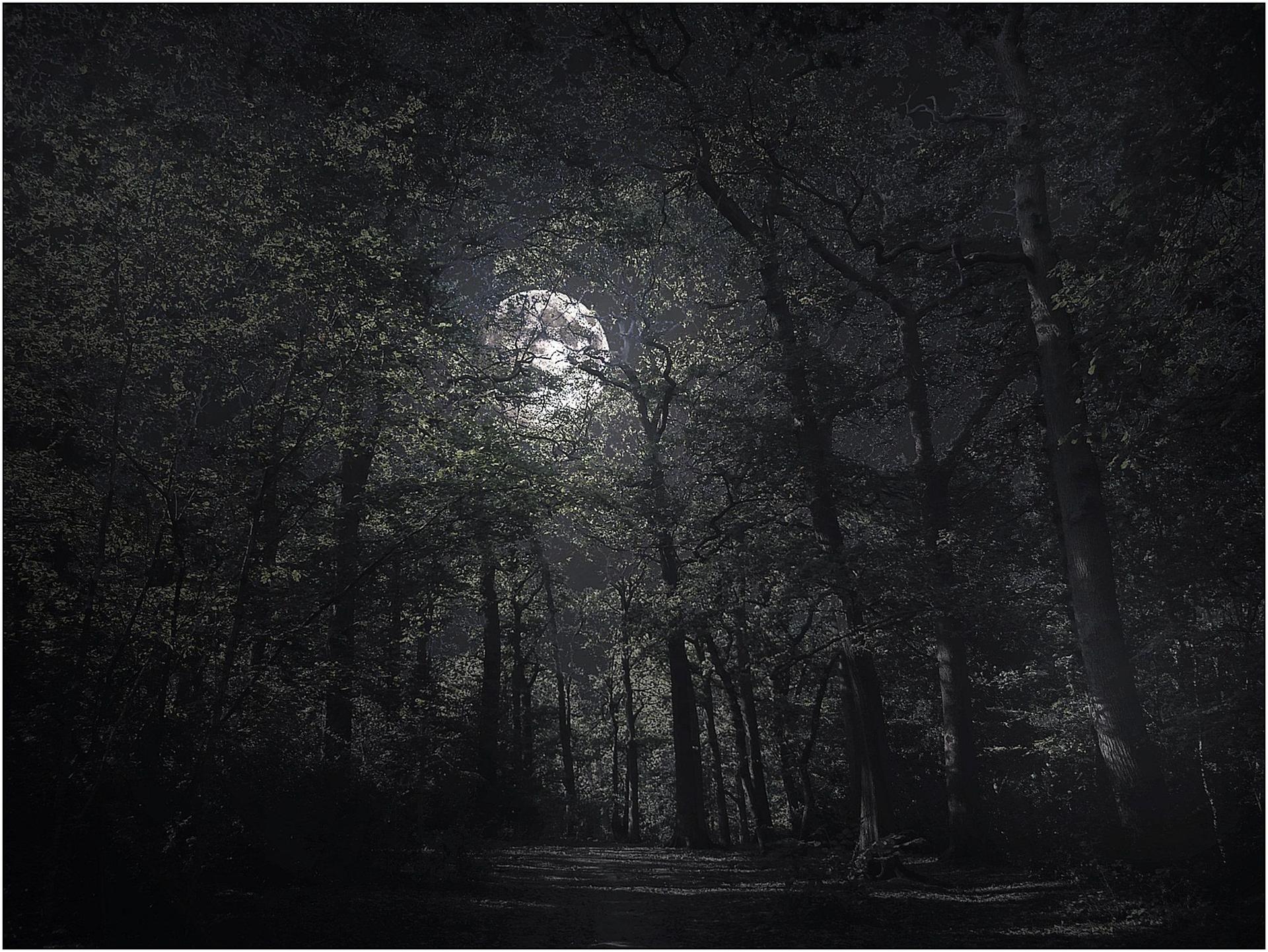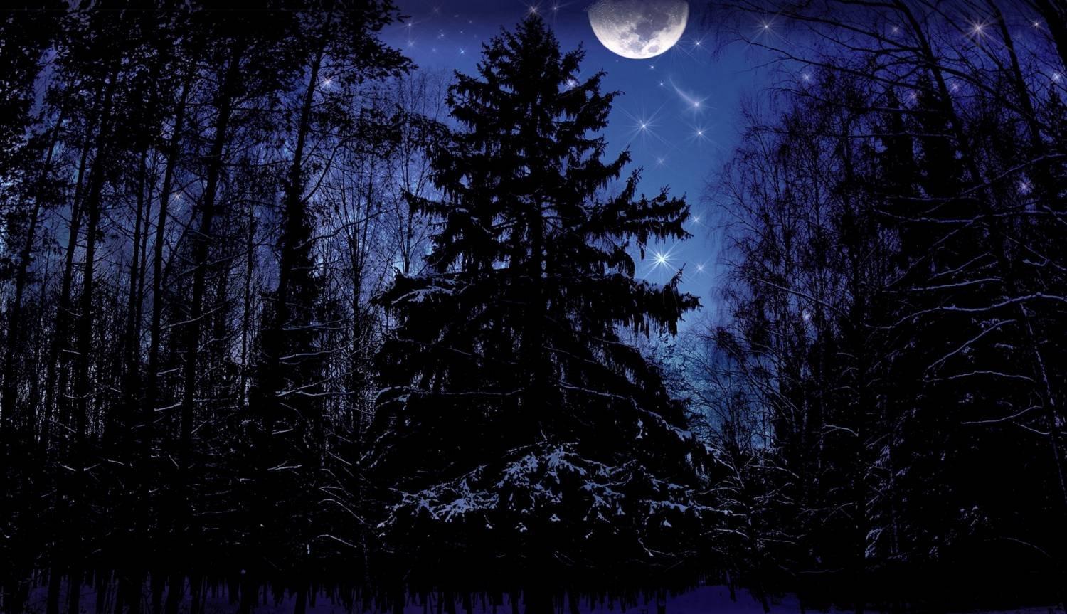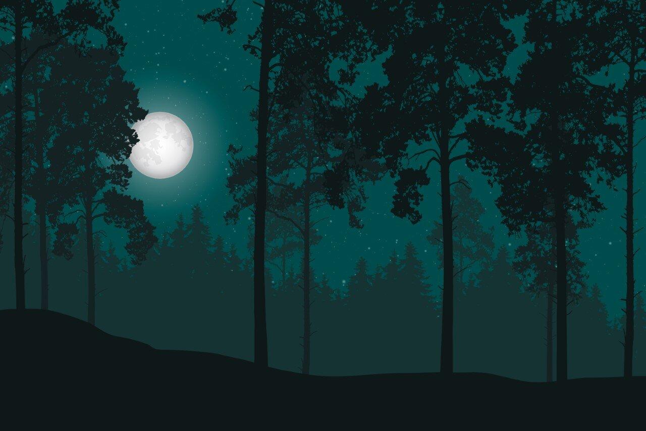 Темный лес с луной