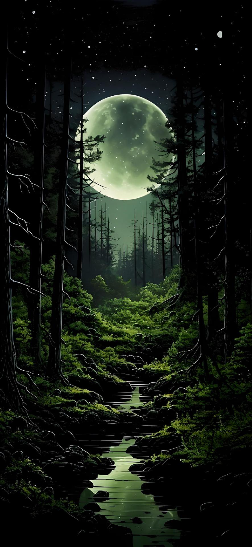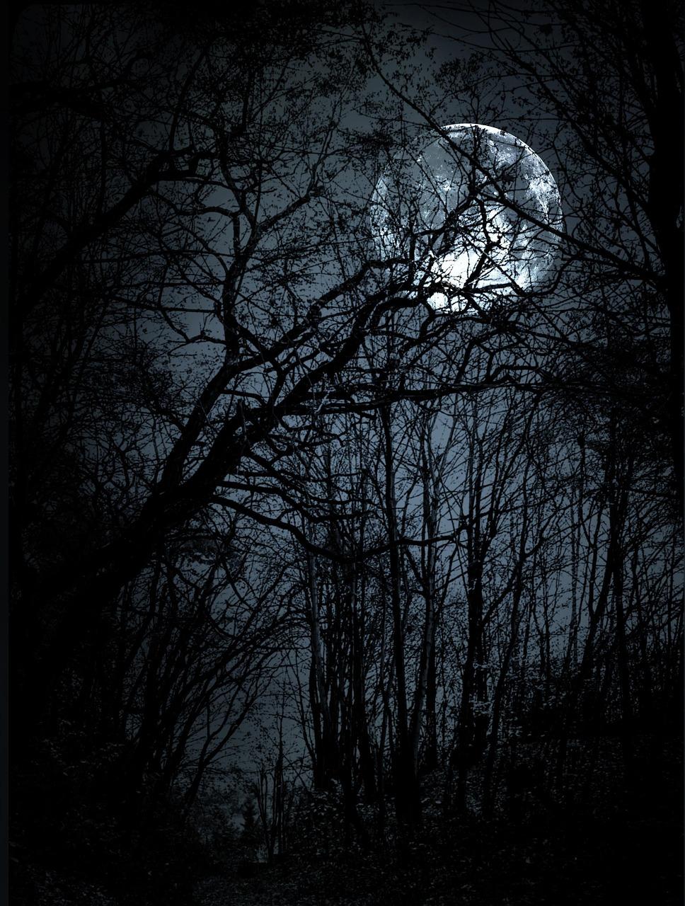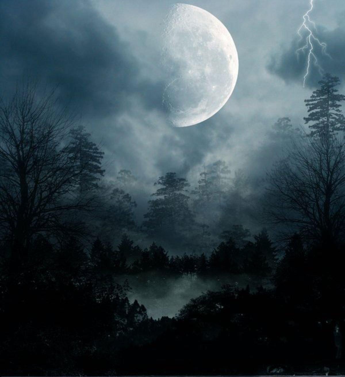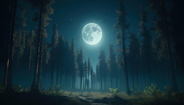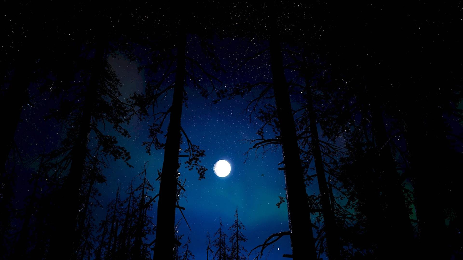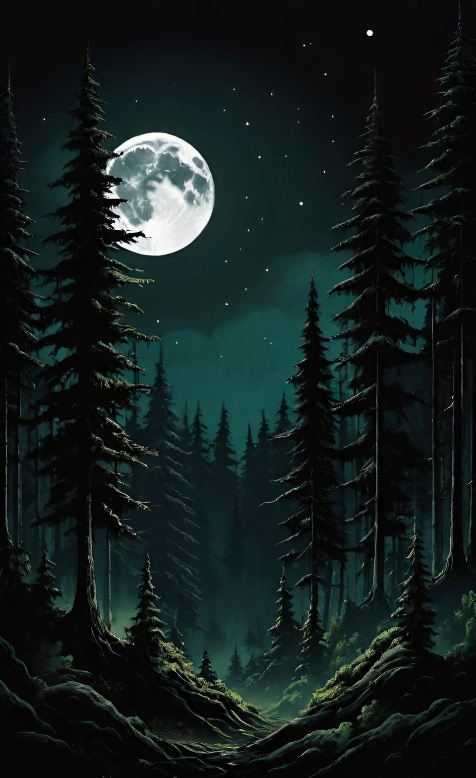 Темный лес с луной