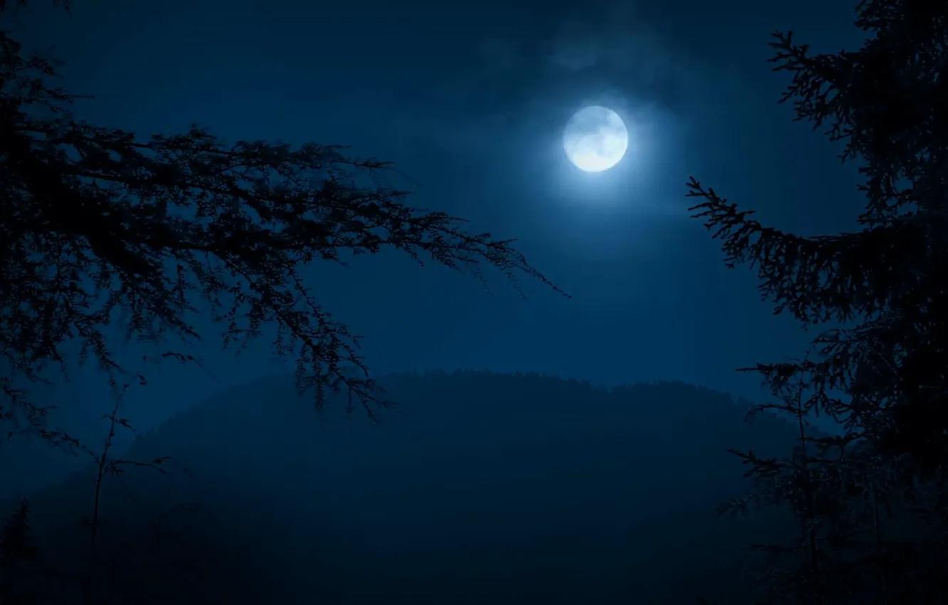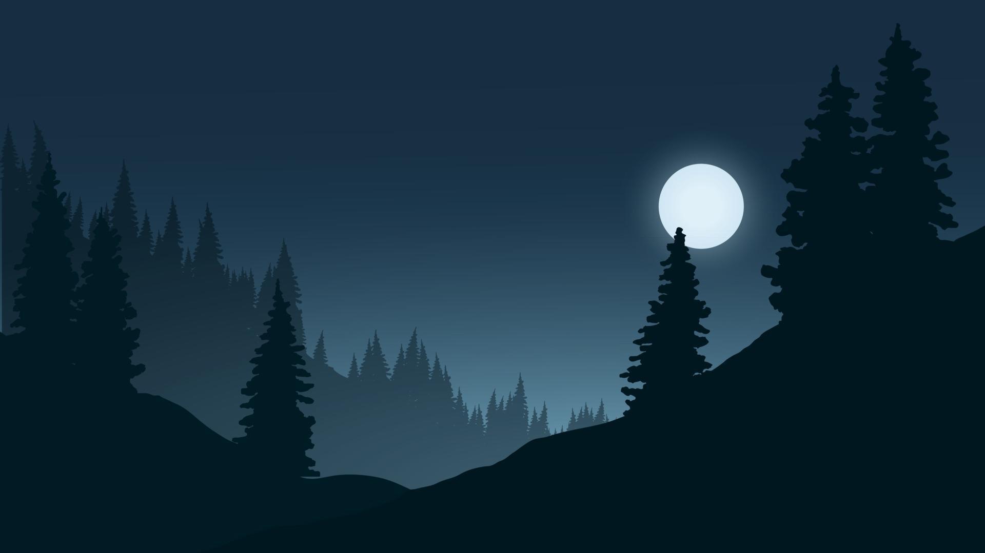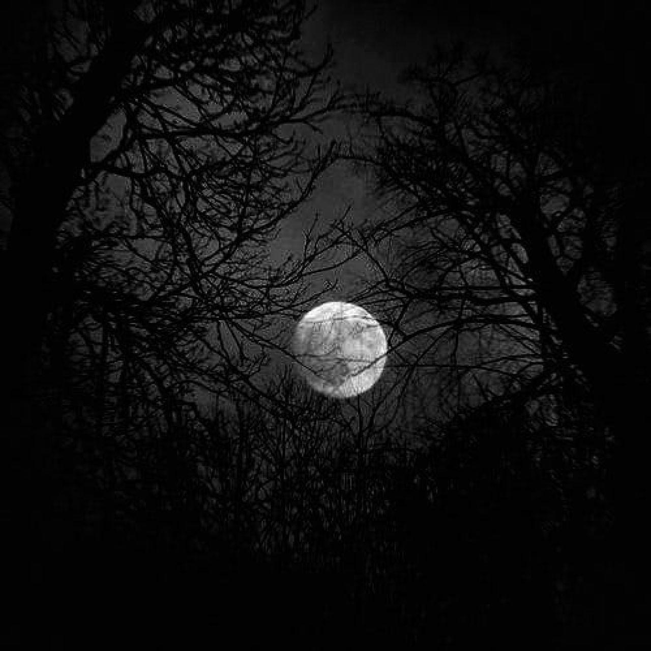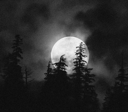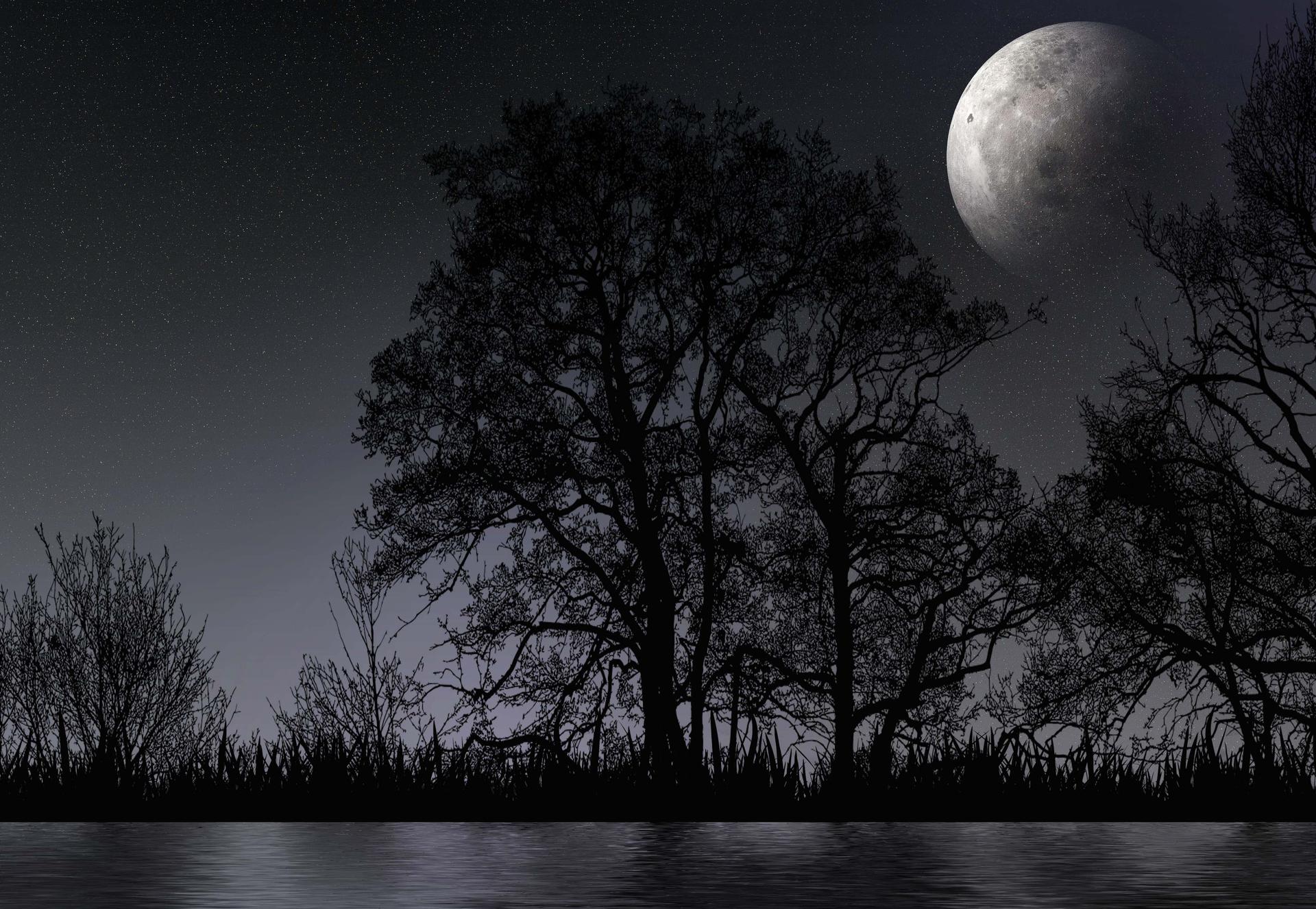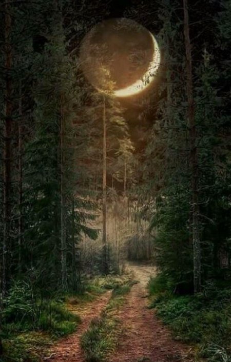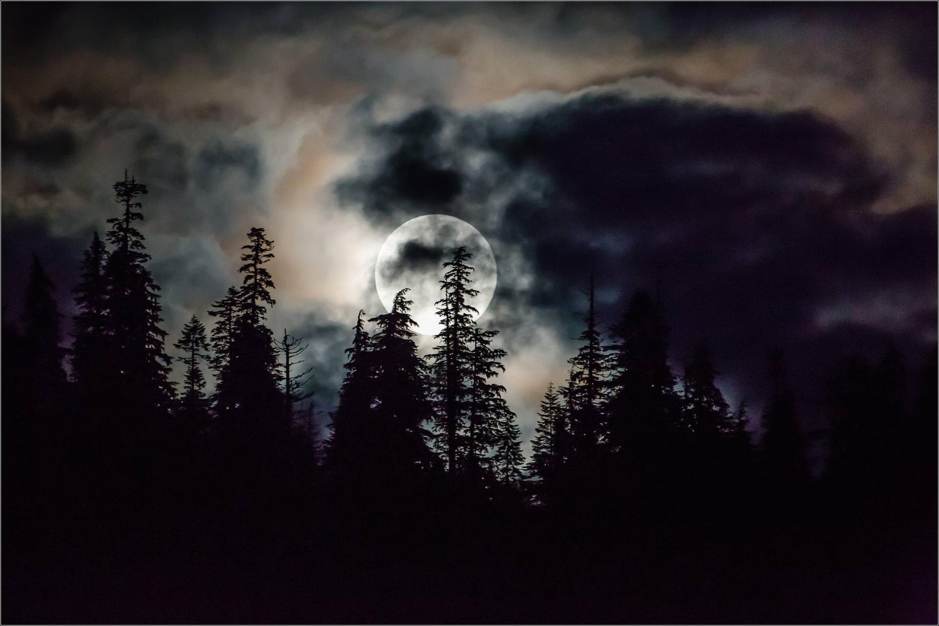 Темный лес с луной