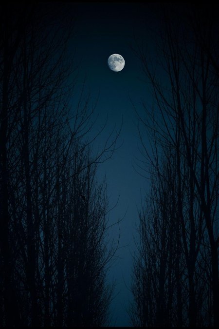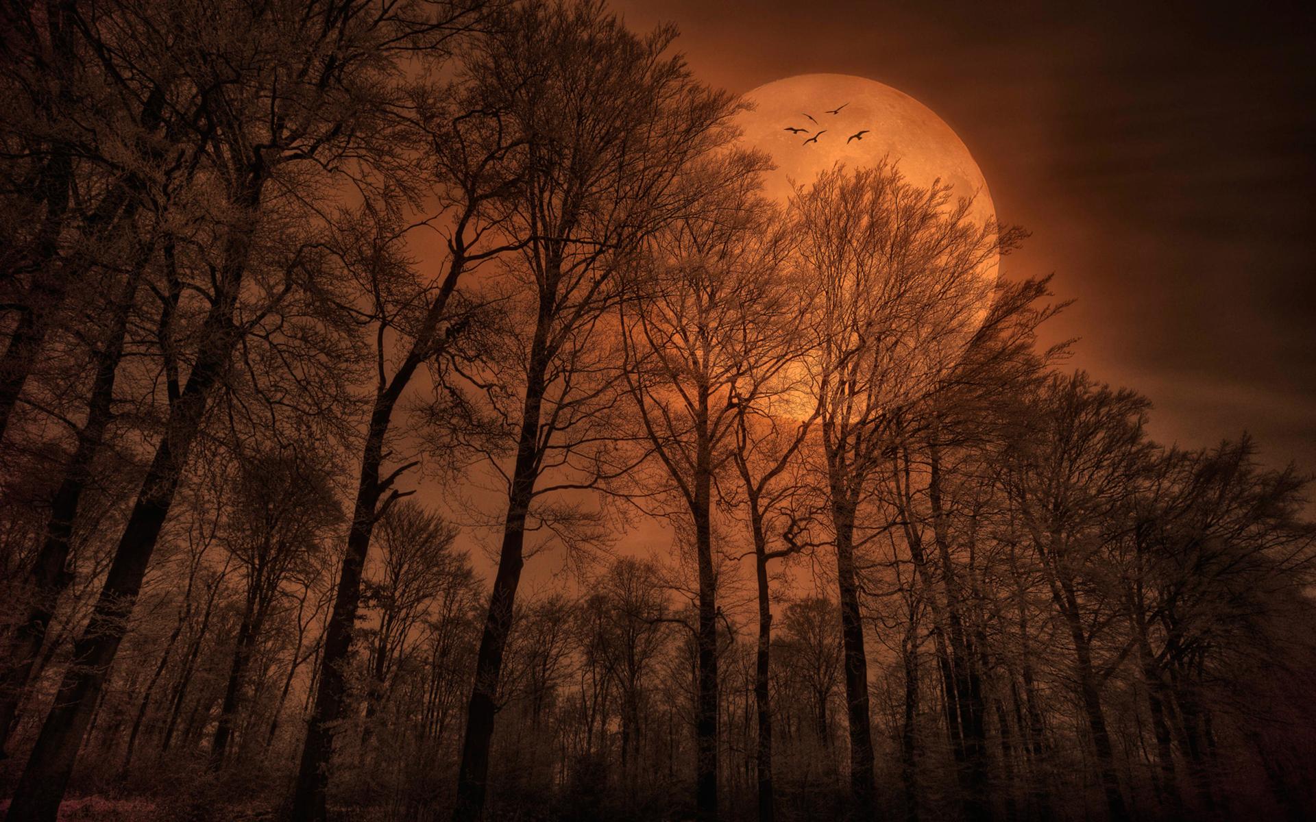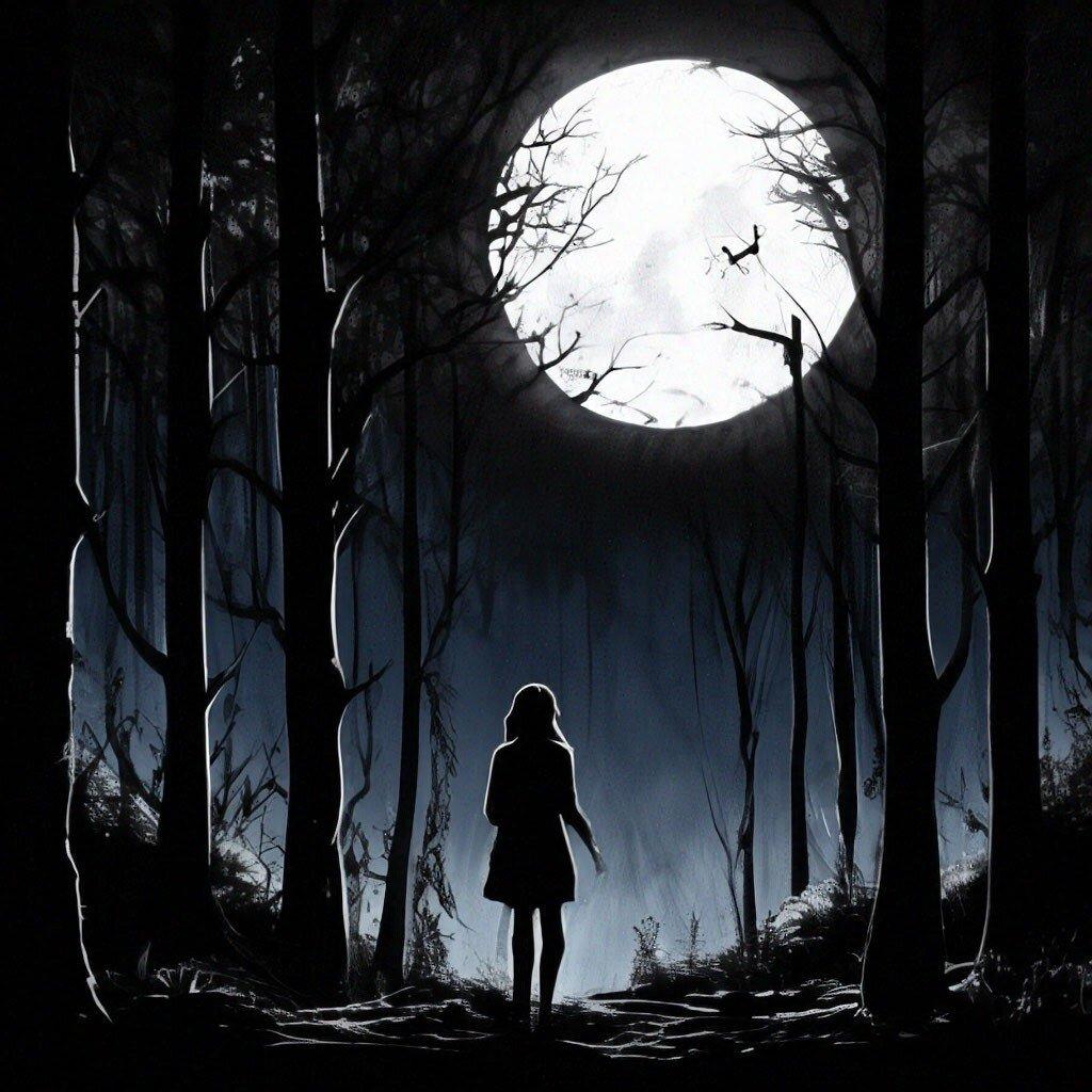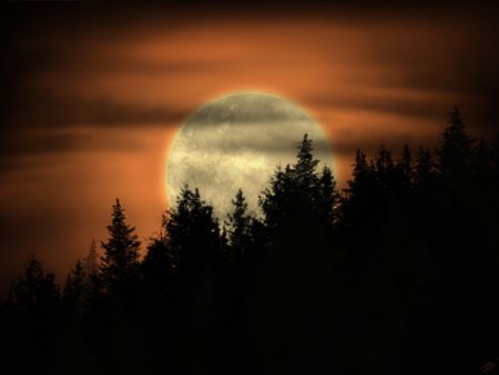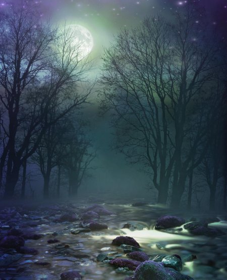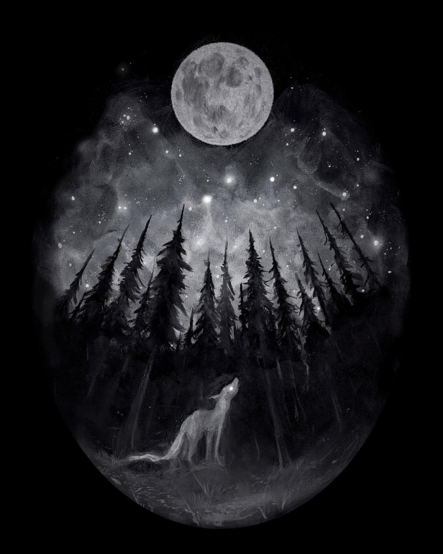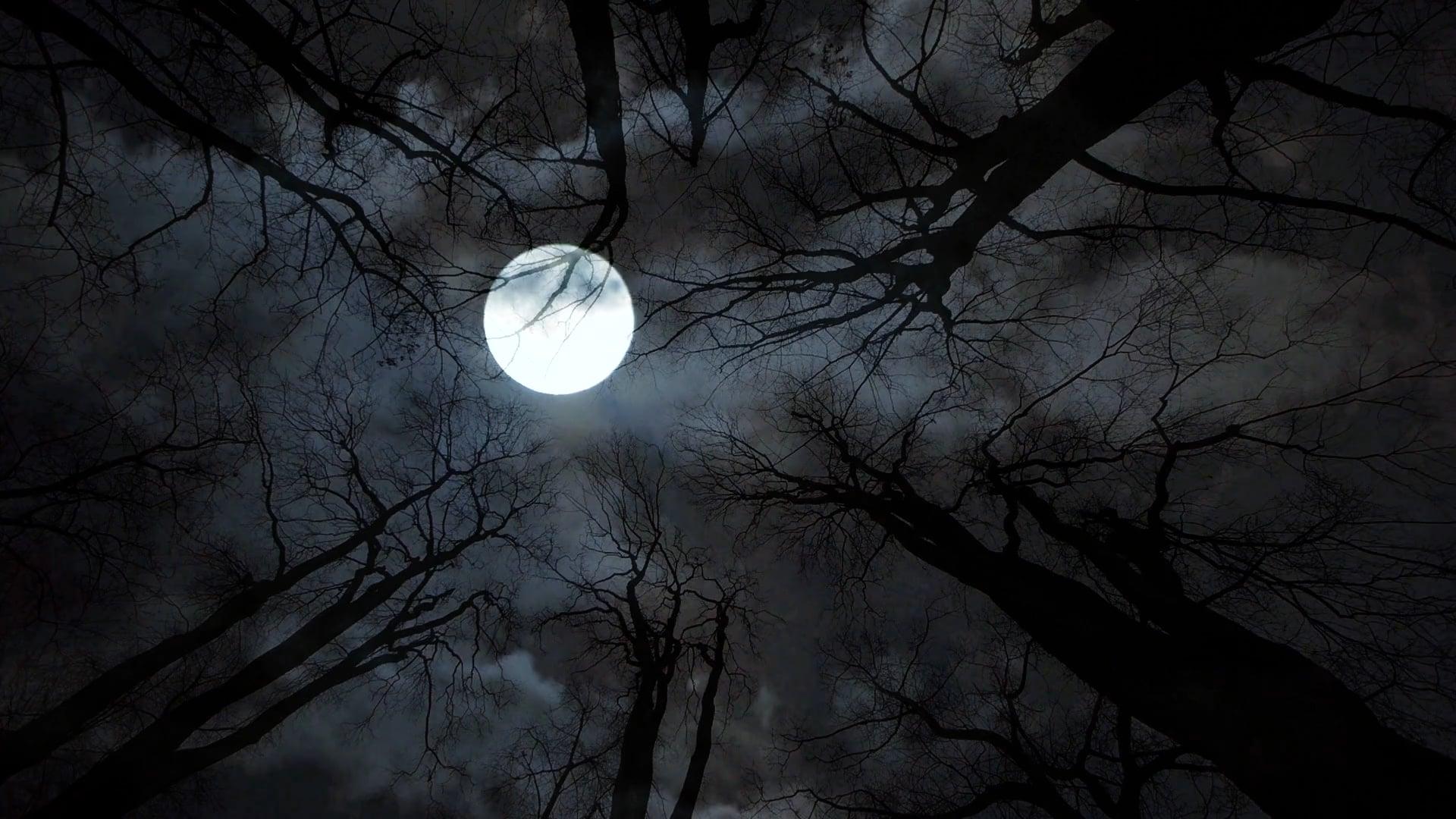 Темный лес с луной