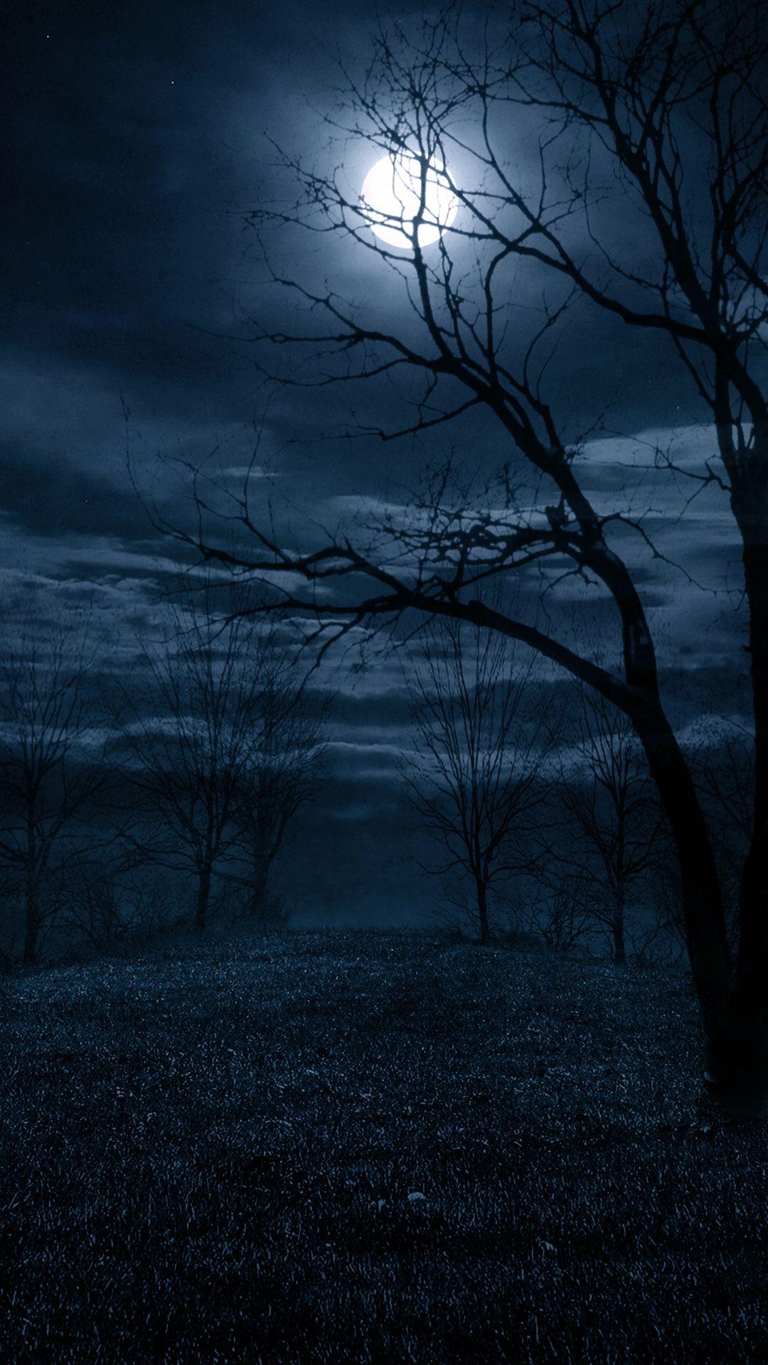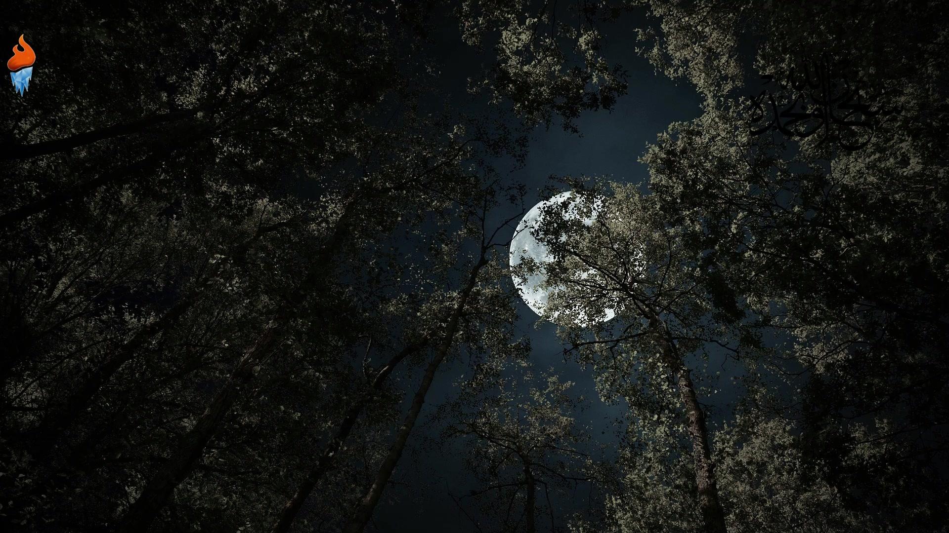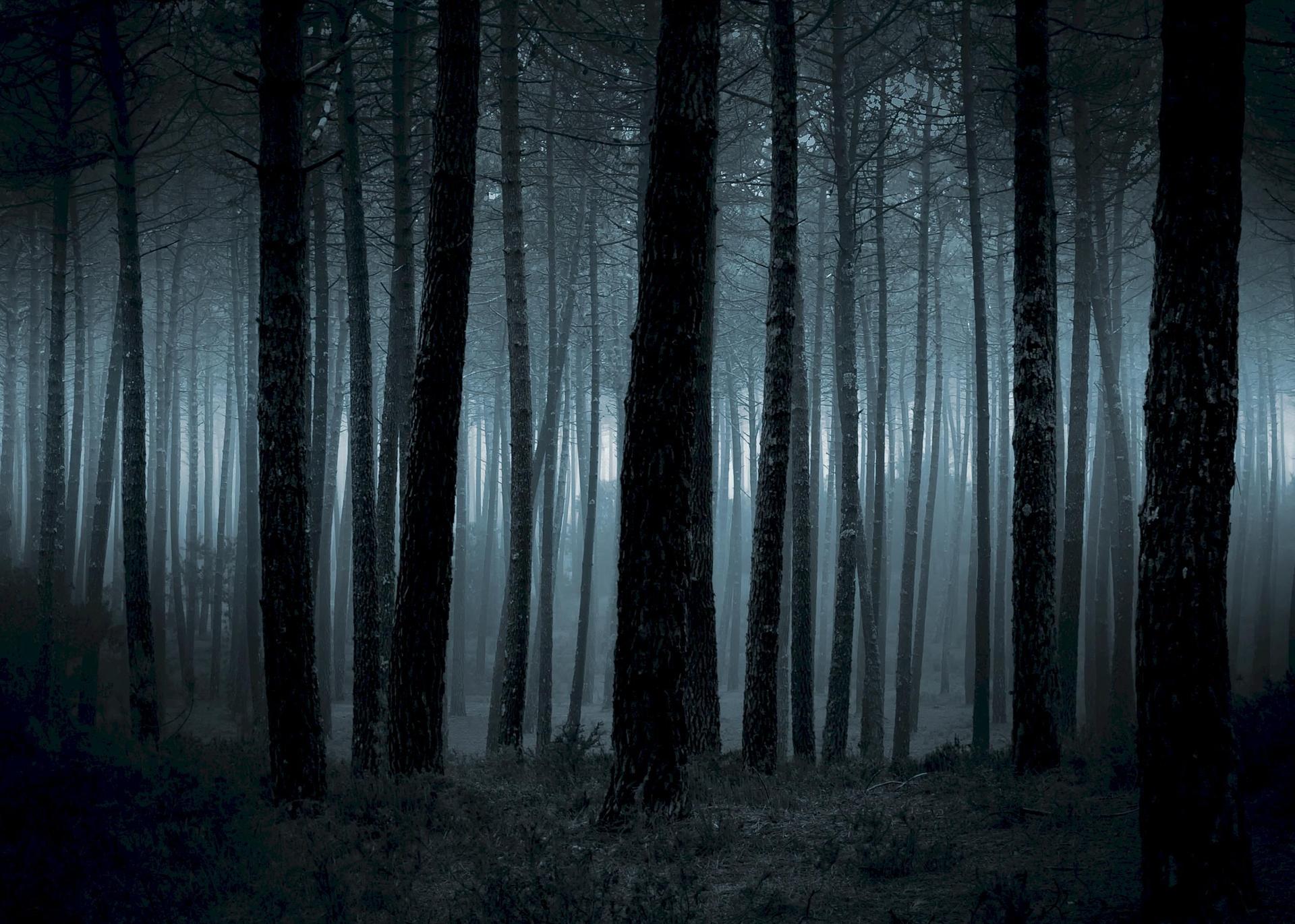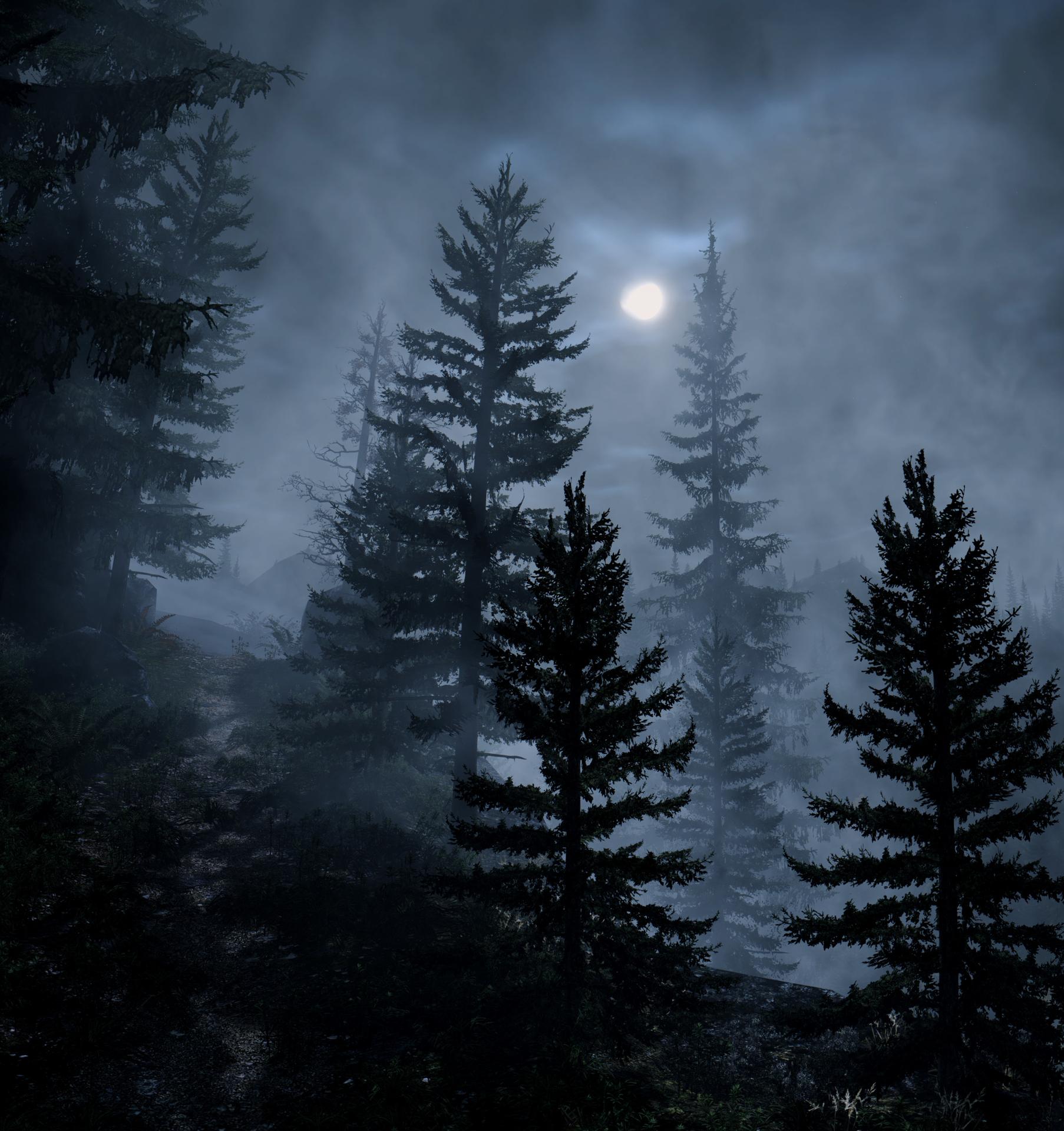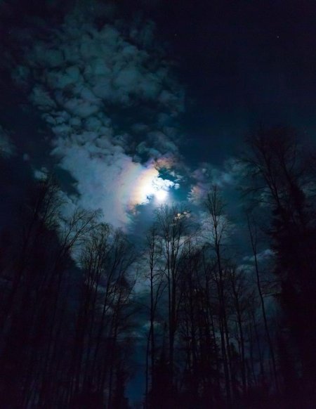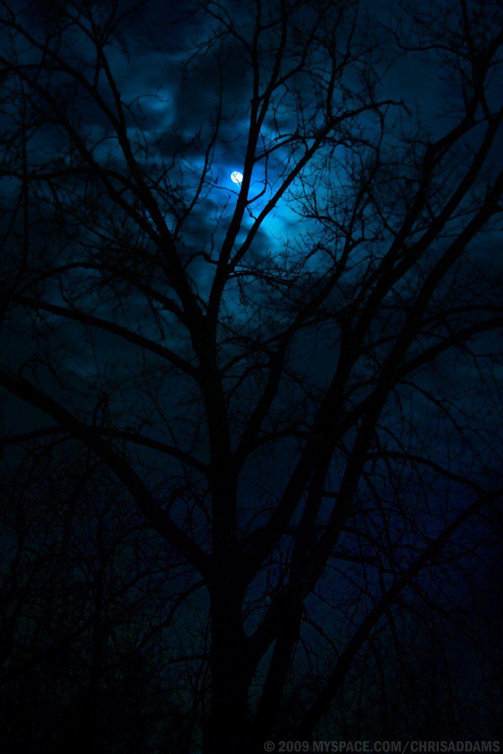 Темный лес с луной
