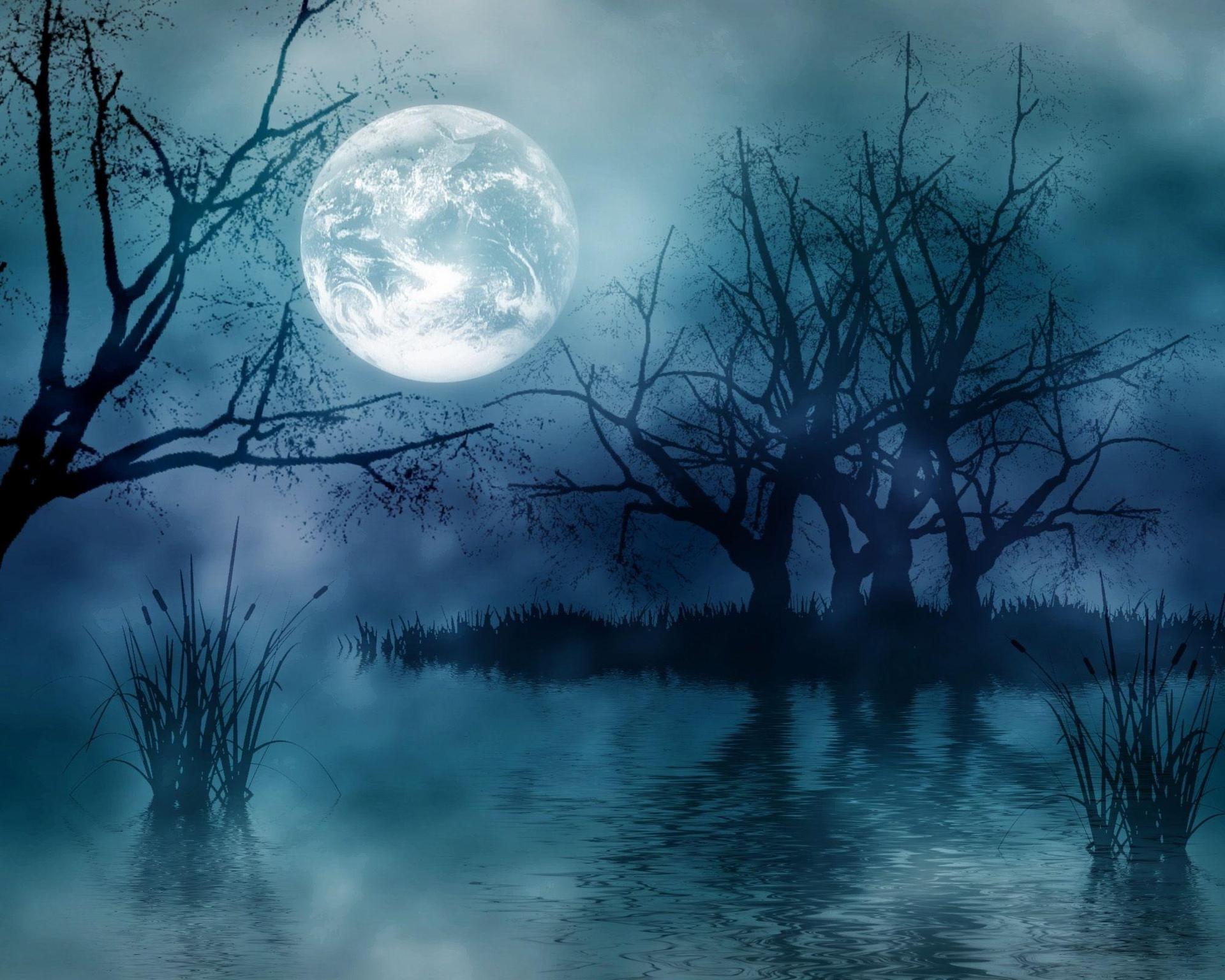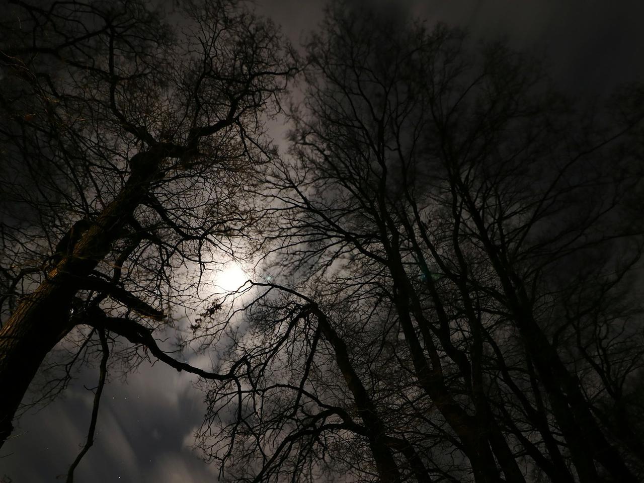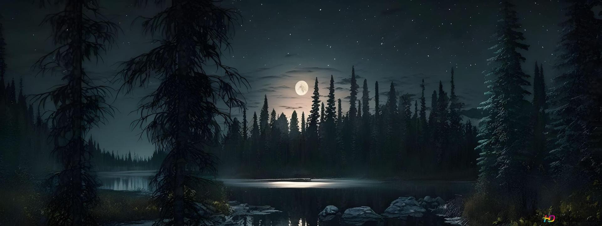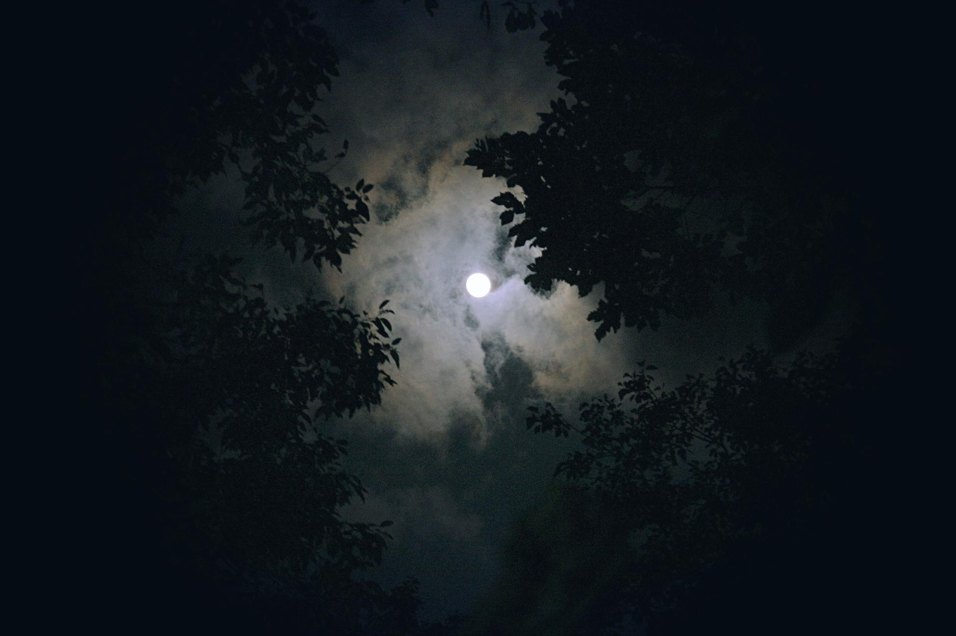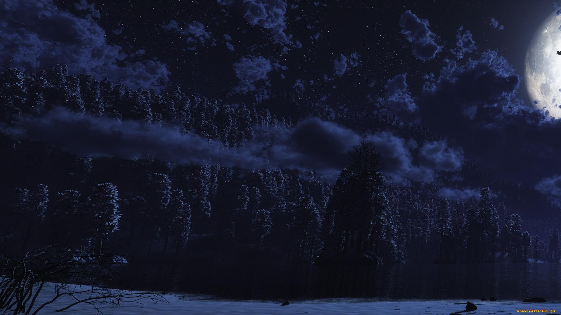Темный лес с луной