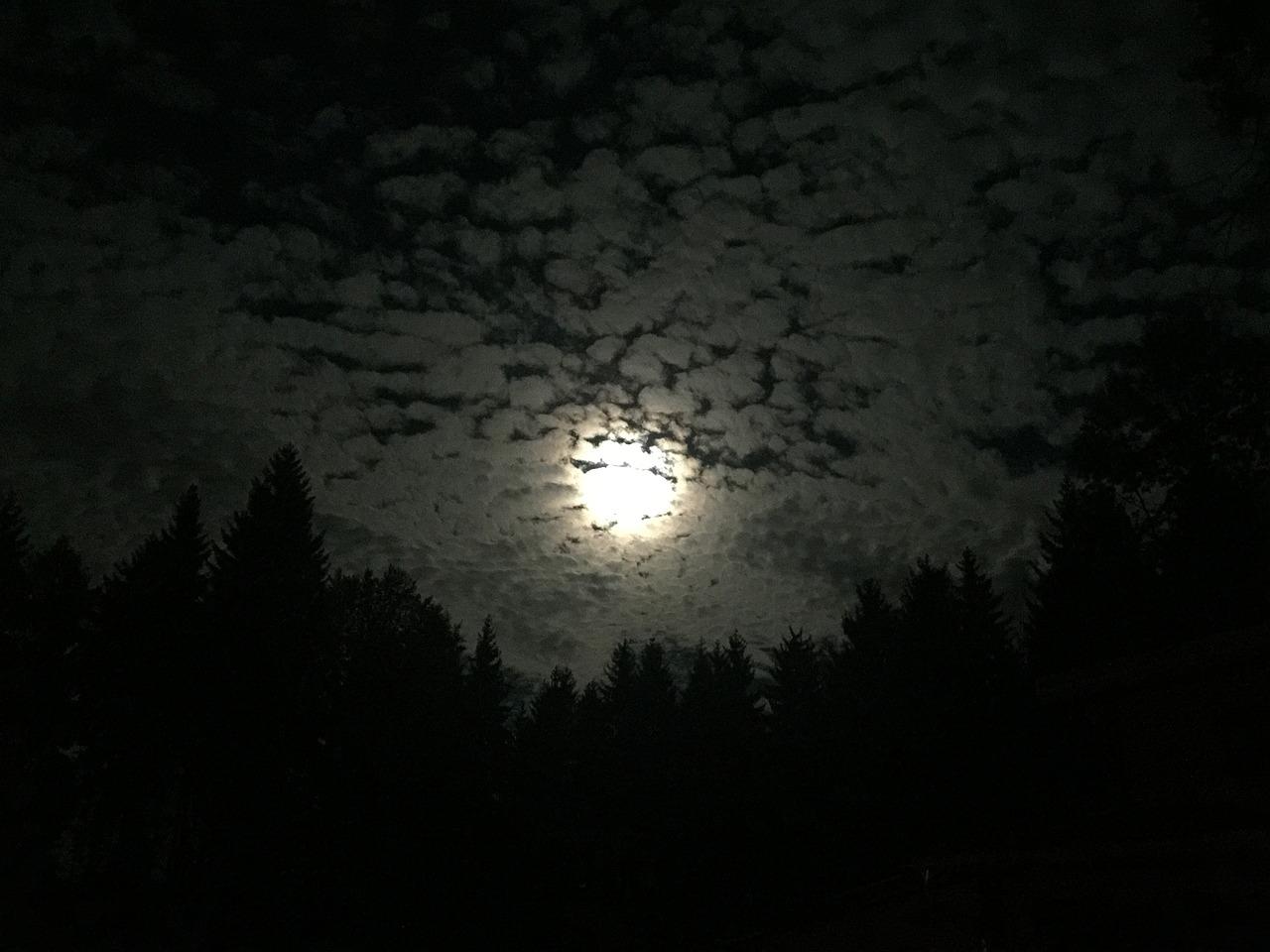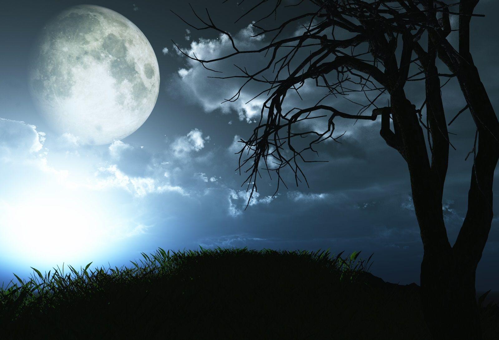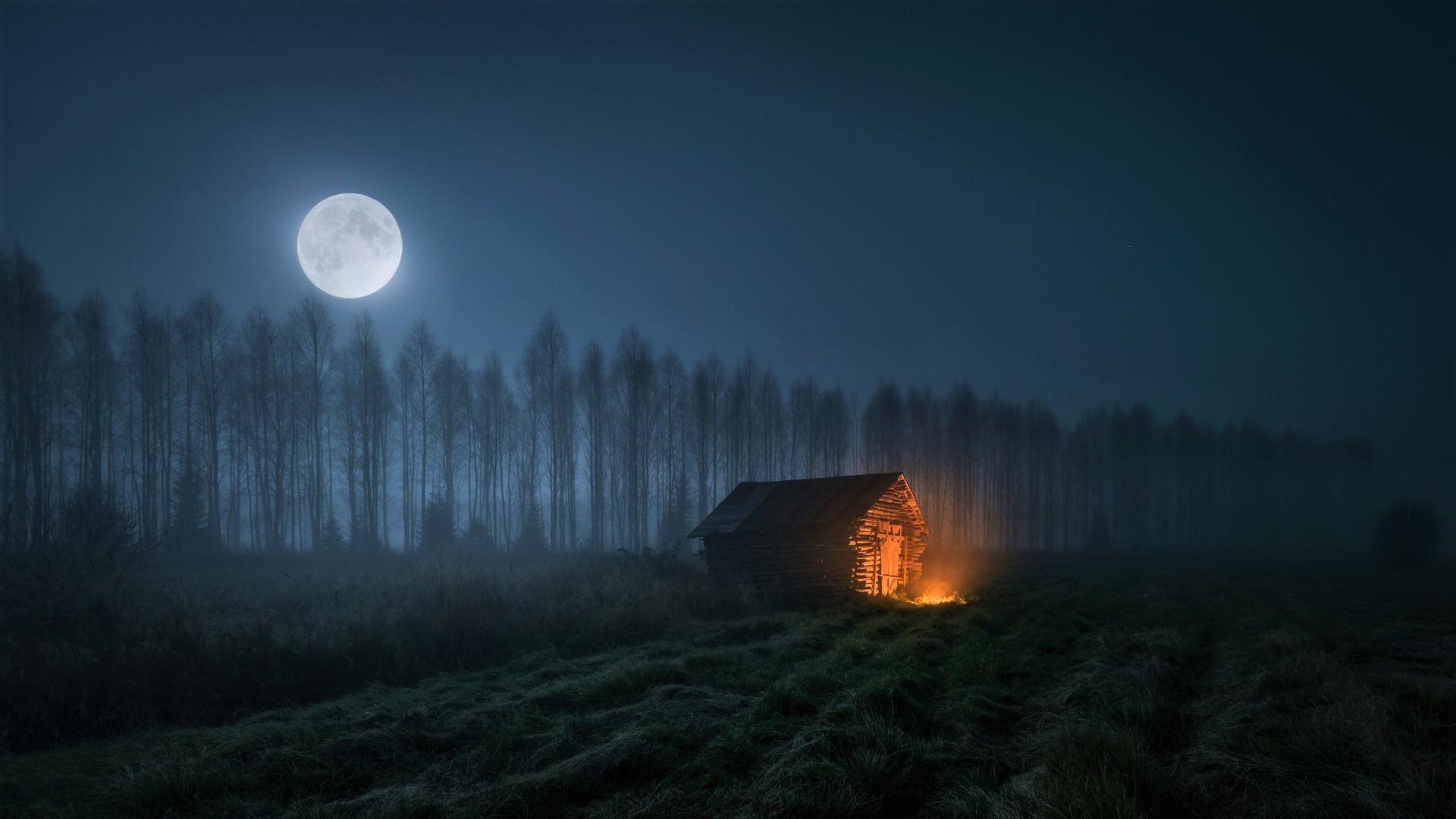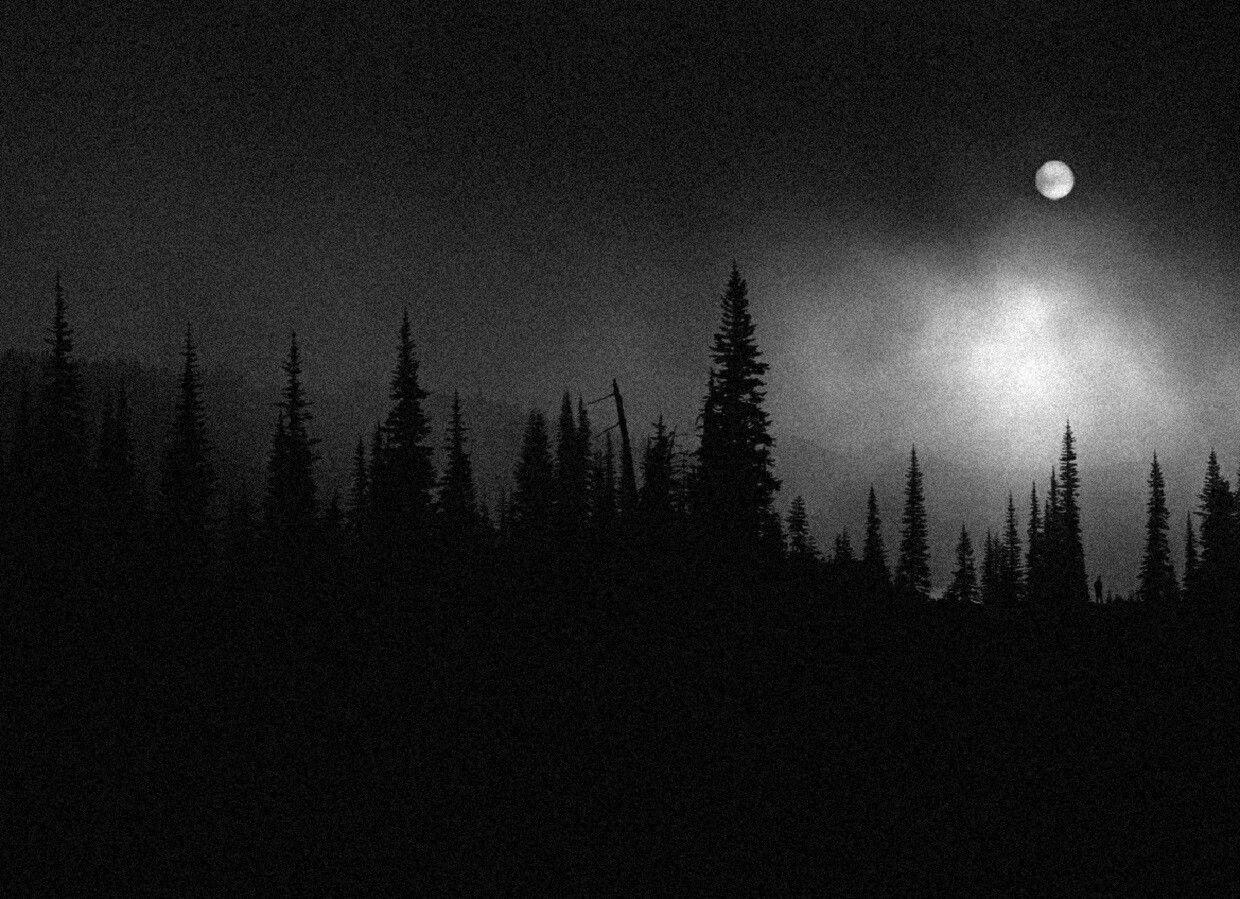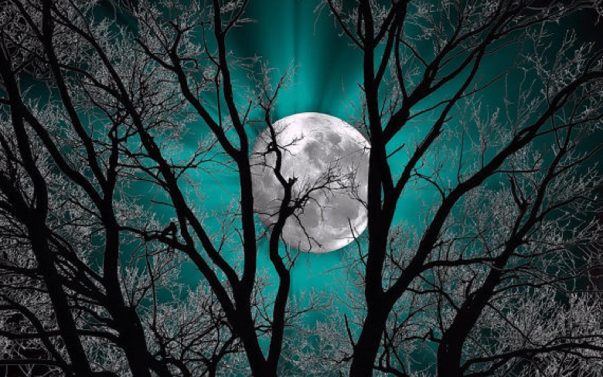 Темный лес с луной