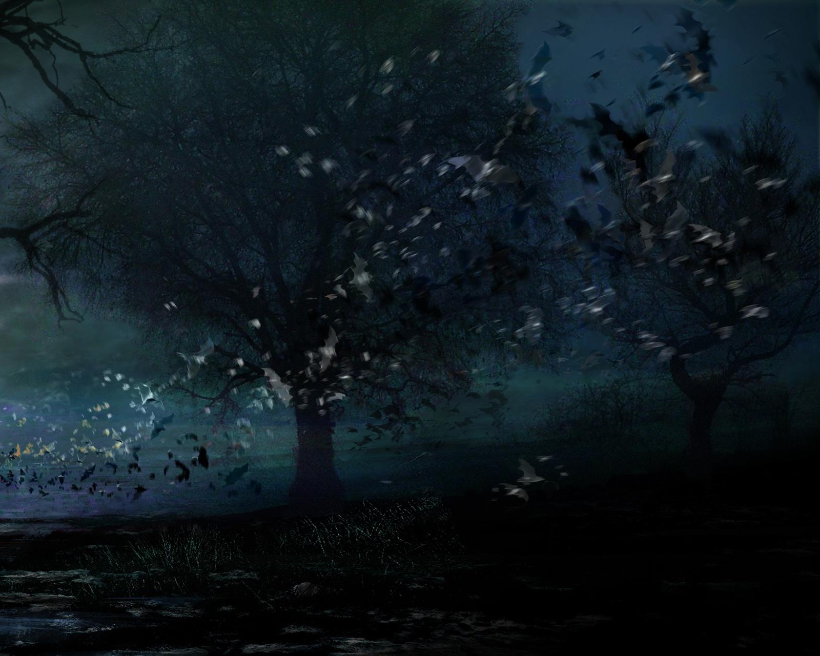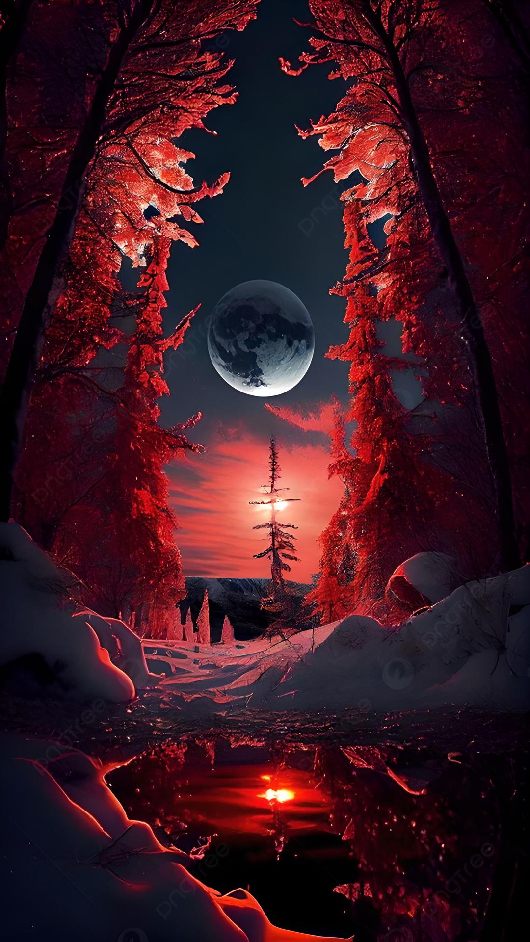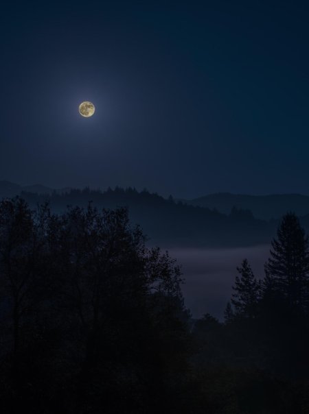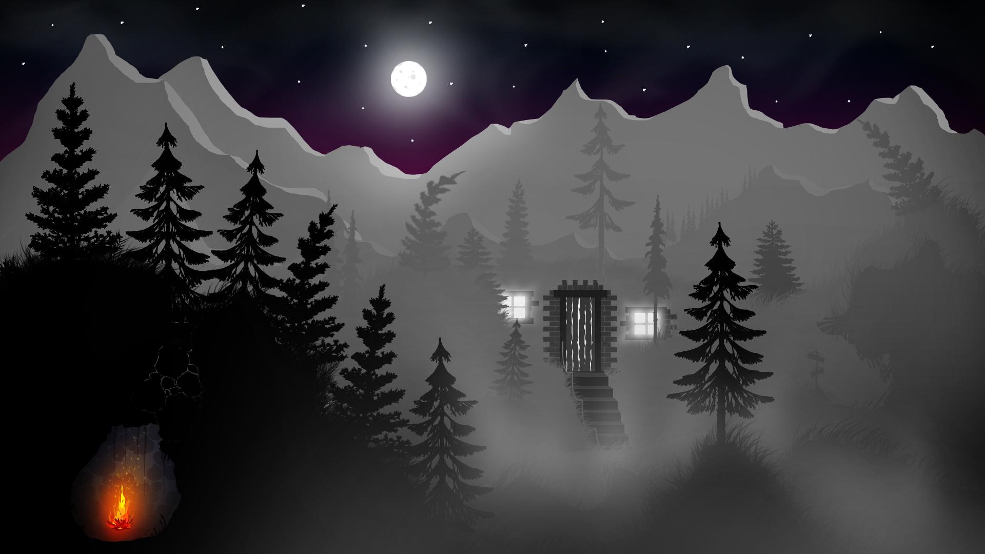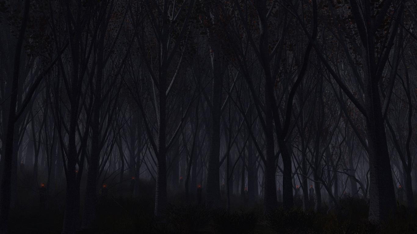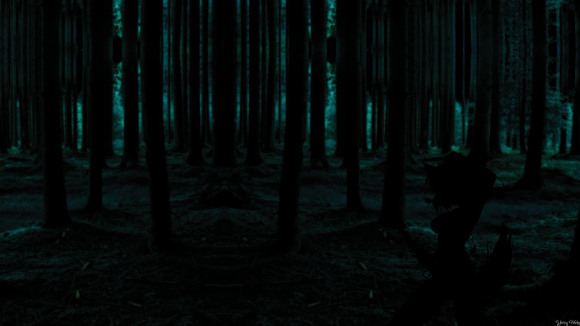 Темный лес с луной