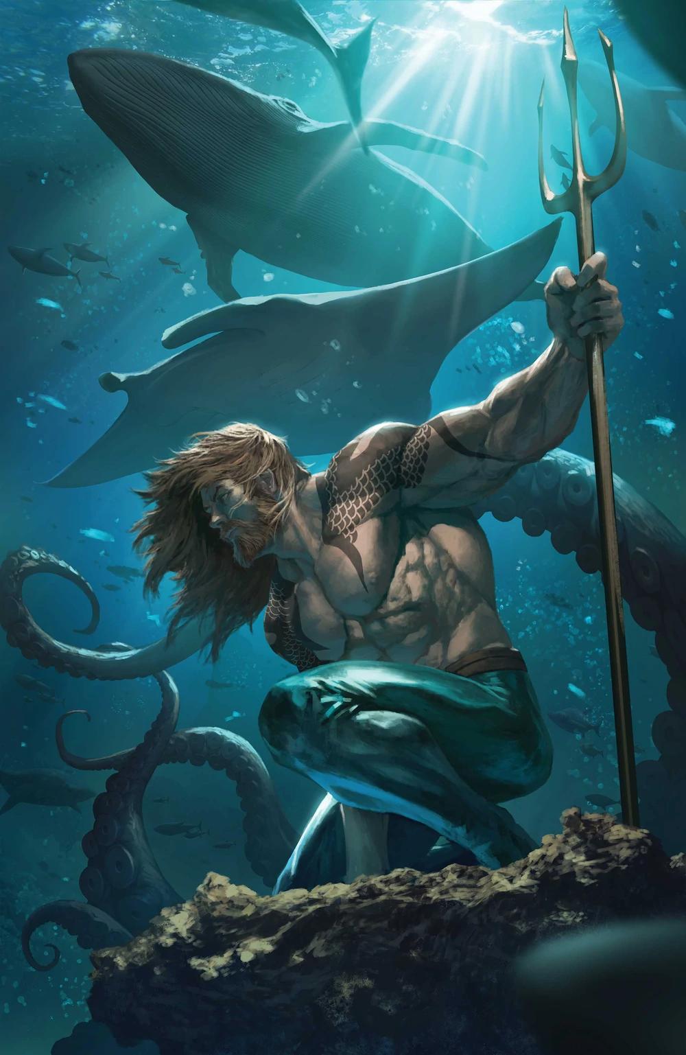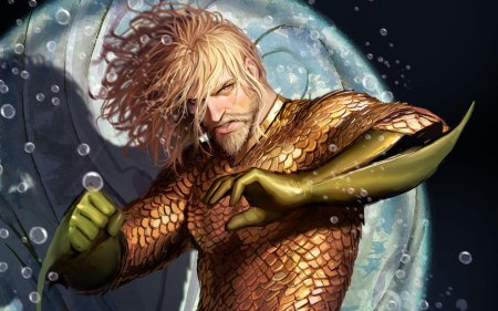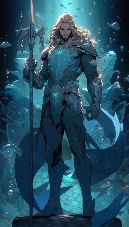 Откройте мир подводных приключений через иллюстрации Аквамена - легендарного героя, правителя океанских глубин и защитника морского мира. Художники создают монументальные образы воина-атланта с трезубцем, короной из раковин и непоколебимой решимостью. Каждая композиция раскрывает разные аспекты: от батальных сцен с морскими чудовищами до мирных моментов общения с подводными обитателями. Тематические элементы включают затонувшие города, коралловые рифы, древние артефакты и мифических существ. Артисты используют насыщенные синие тона, подчеркивая блеск чешуи, мощь мускулатуры и динамику водных потоков. От одиночных портретов до эпических панорам - коллекция воплощает идею гармонии между человеком и океаном, вдохновляя на защиту морской экосистемы.