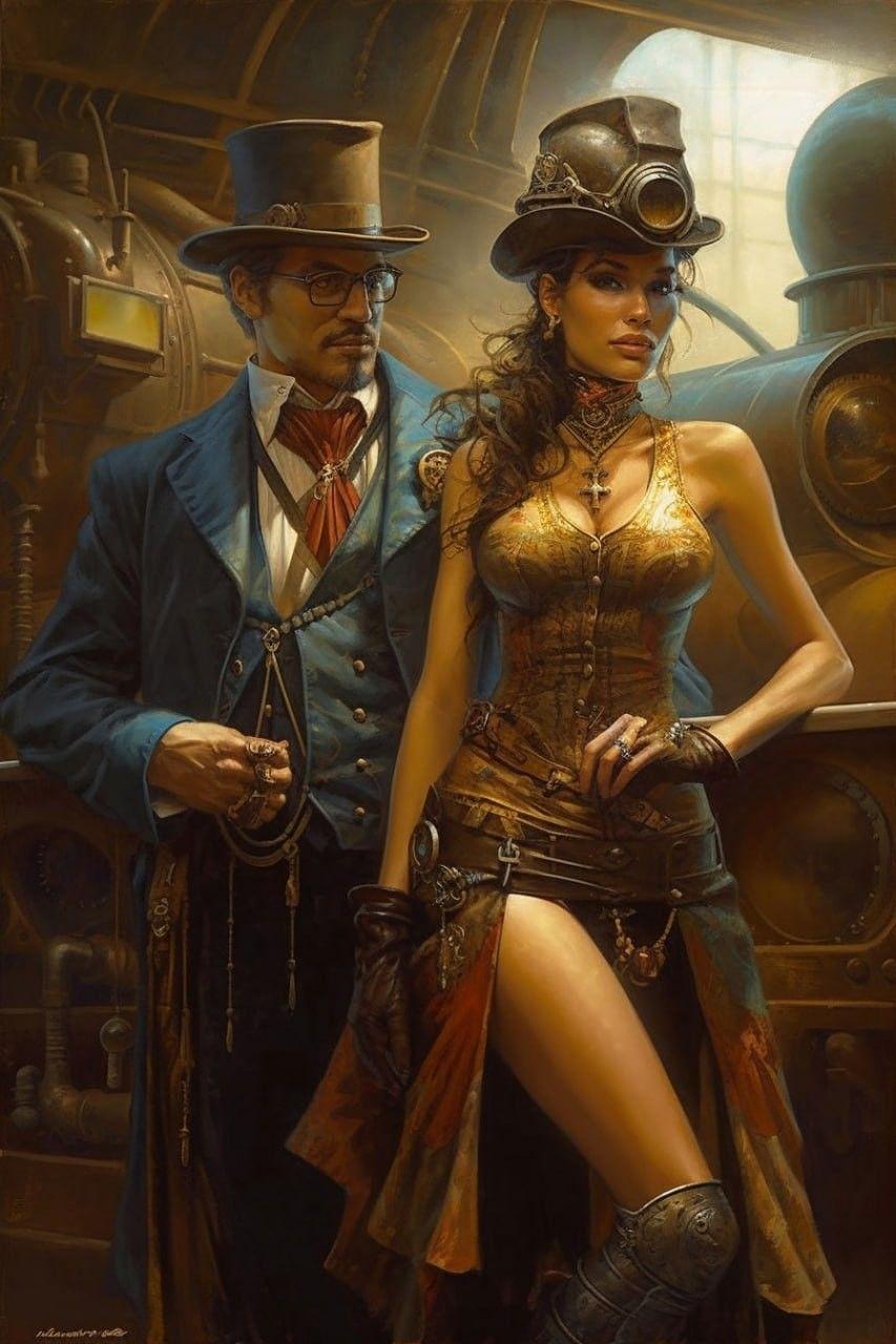 Погрузитесь в мир паровых технологий через художественные изображения стимпанк-механиков, где викторианская эстетика встречается с футуристическими изобретениями. Каждый арт-образ представляет уникального персонажа - от гениальных изобретателей с моноклями до трудолюбивых рабочих с гаечными ключами. Художники передают атмосферу мастерских, используя медные трубы, шестеренки и пар, создавая композиции, полные изобретательности. Коллекция отражает различные аспекты стимпанка - от научных экспериментов до повседневной работы.