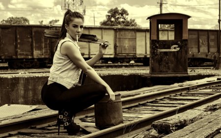 Девушки, лежащие на рельсах