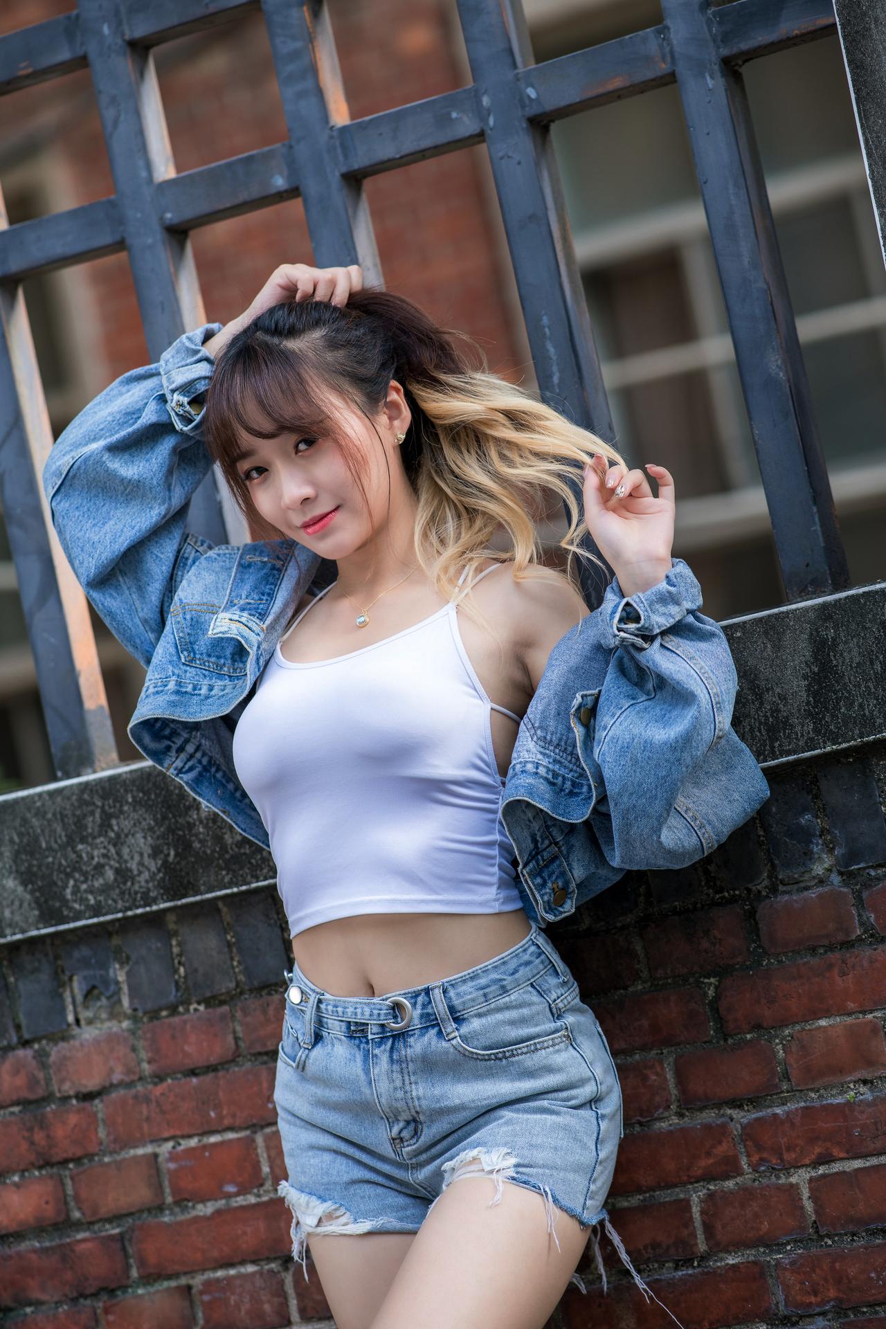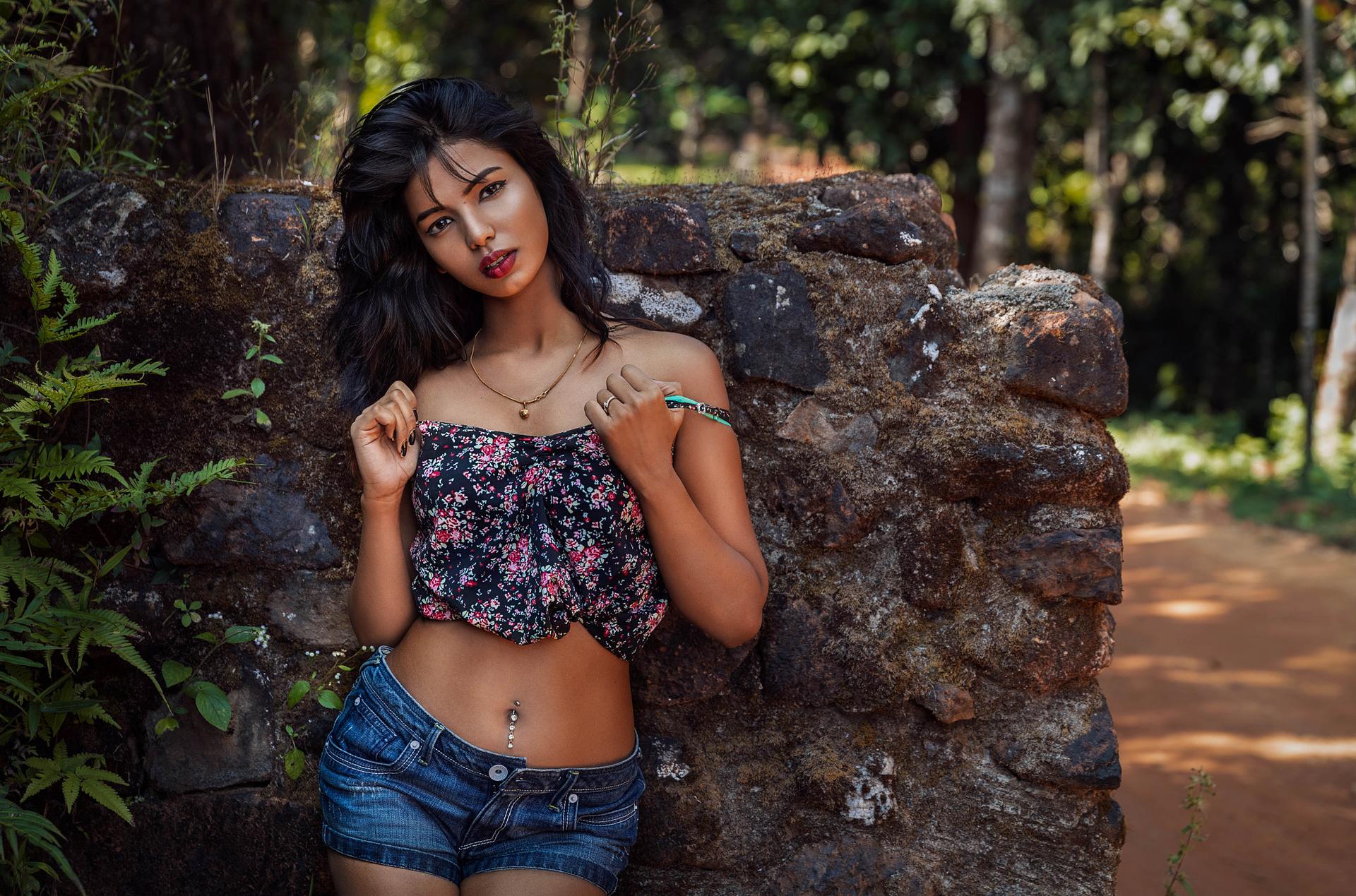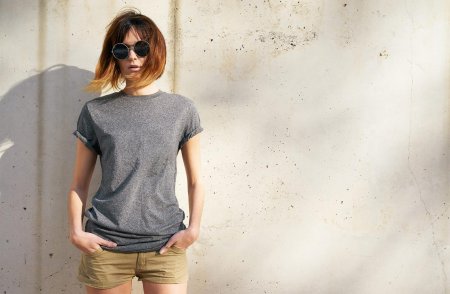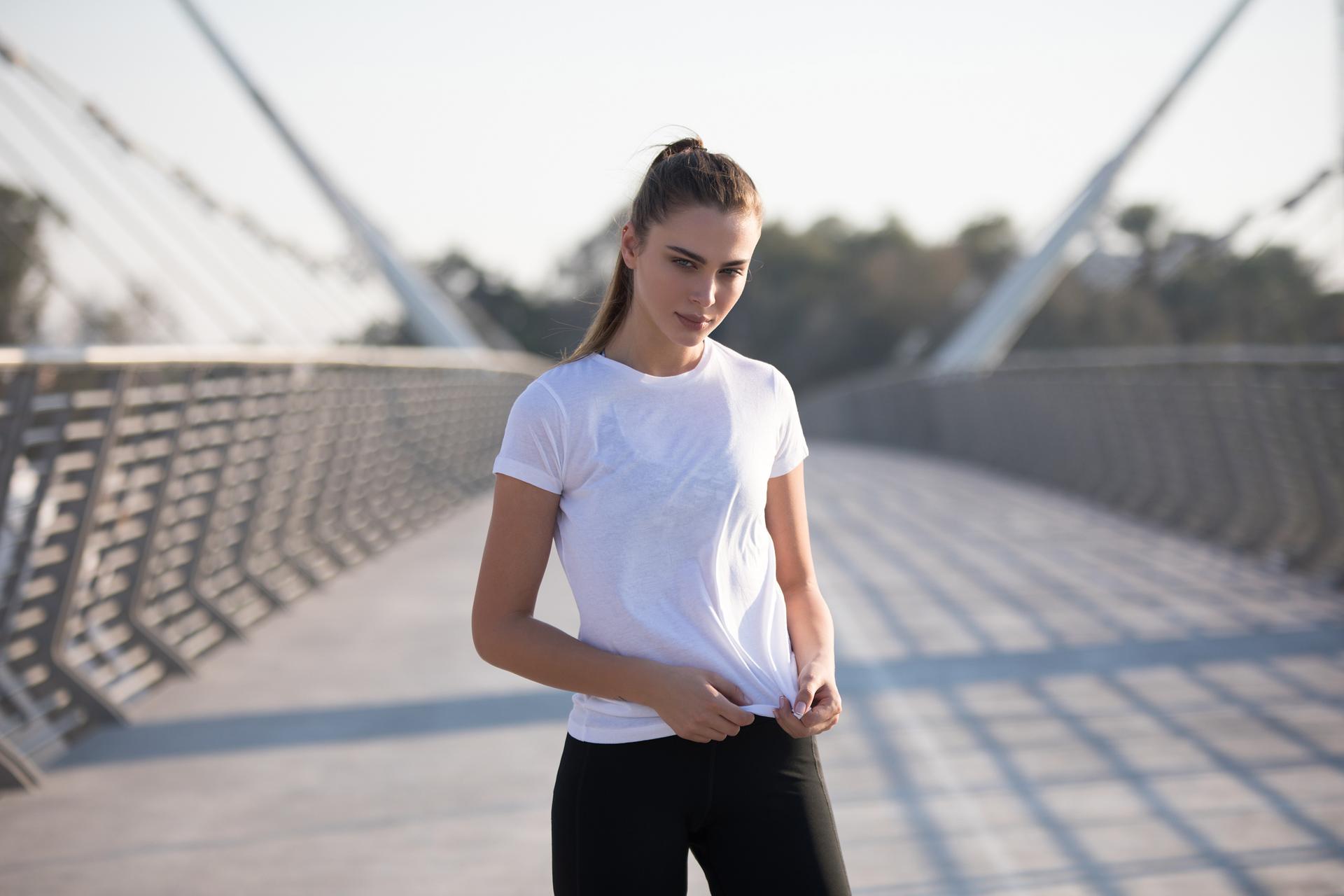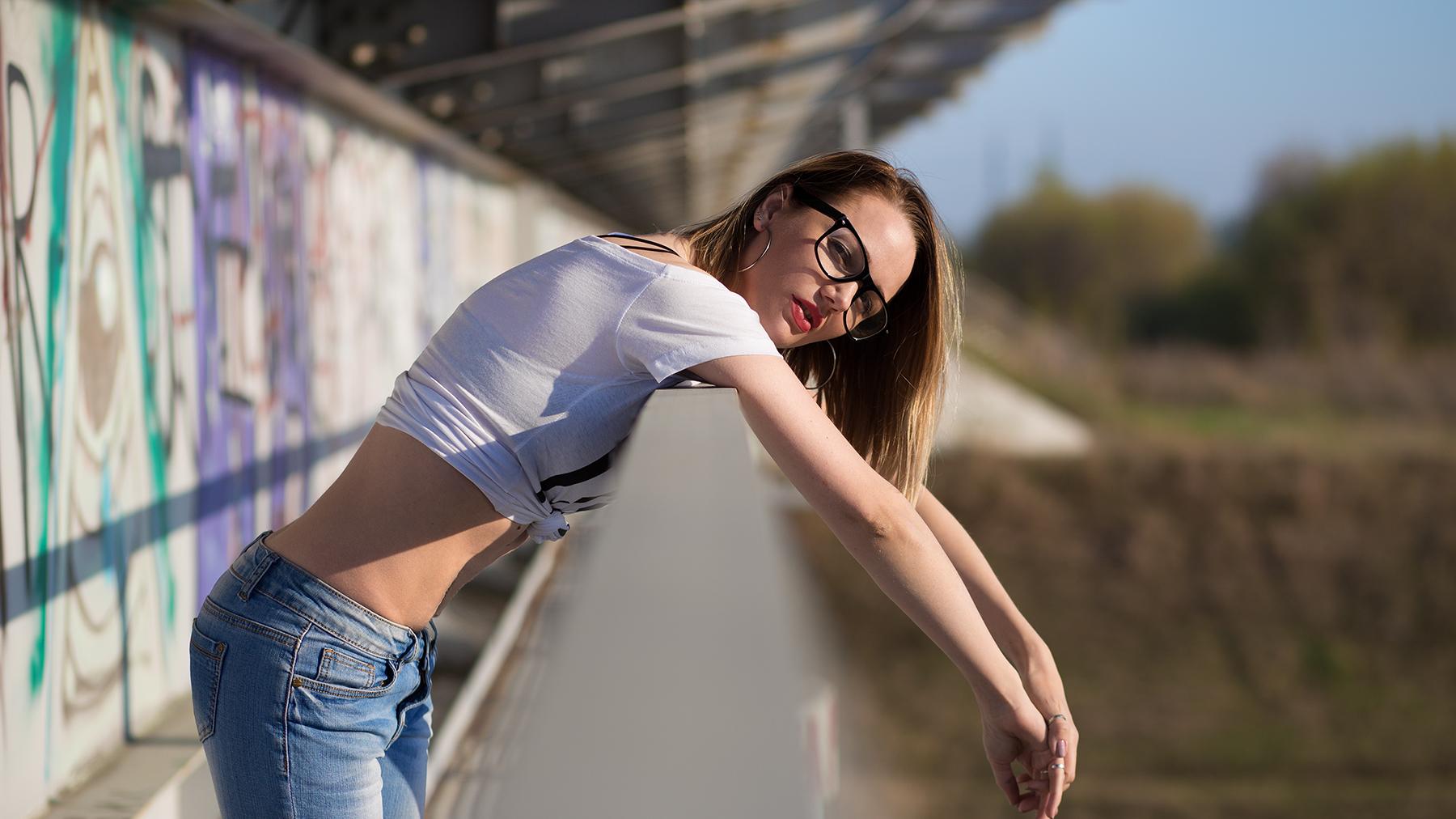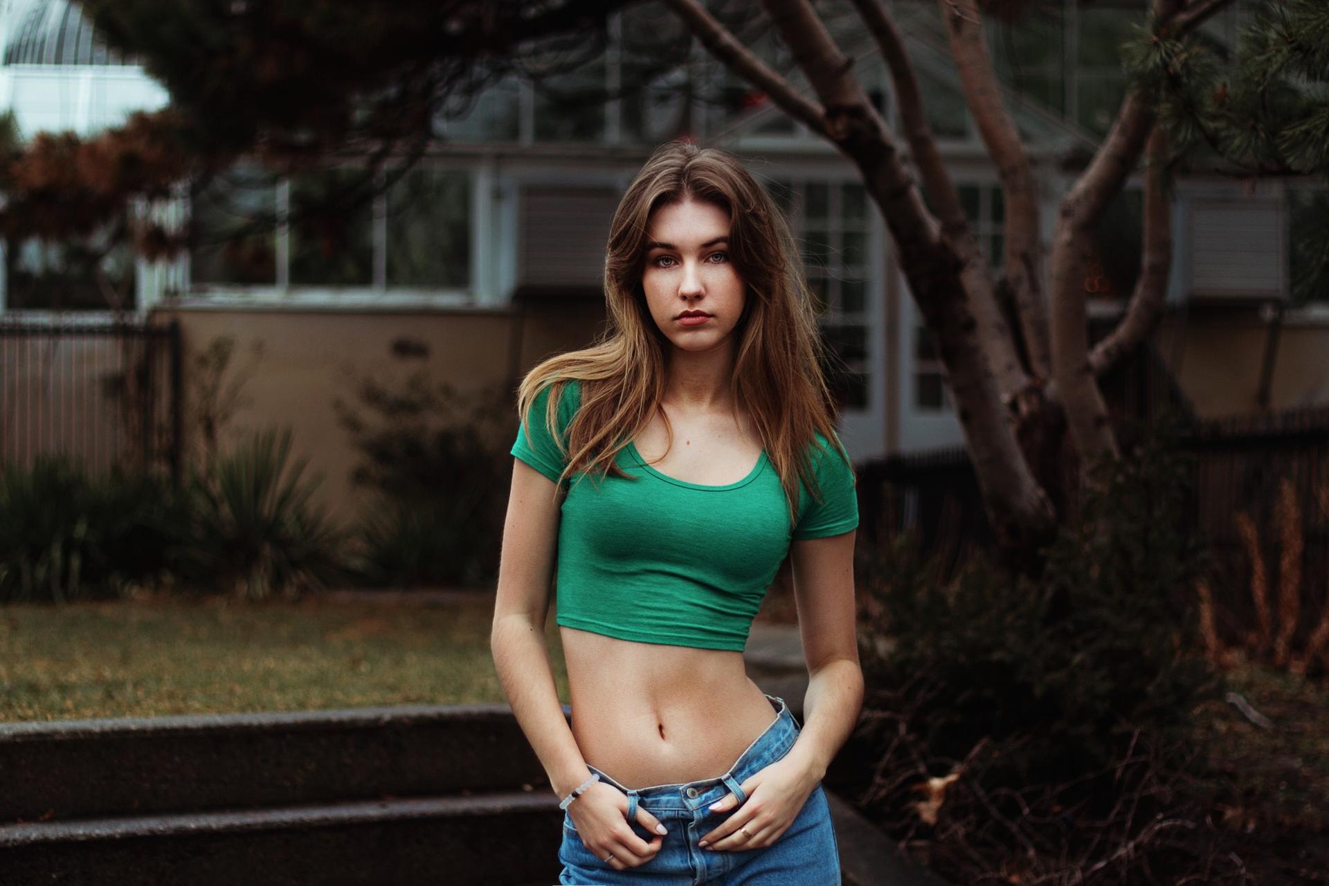 Девушки, поднявшие майки
