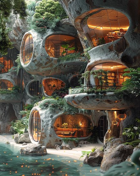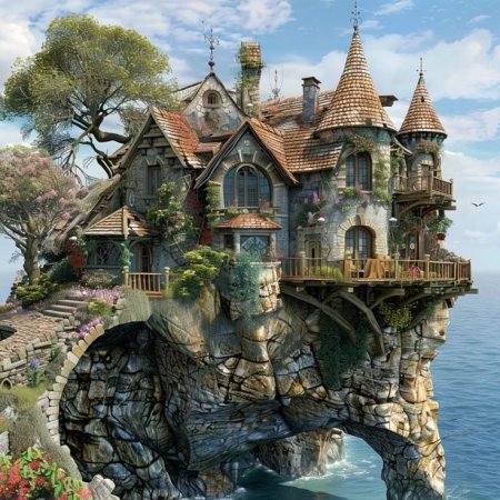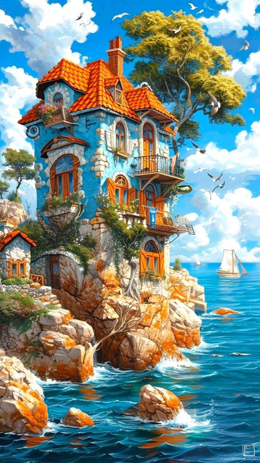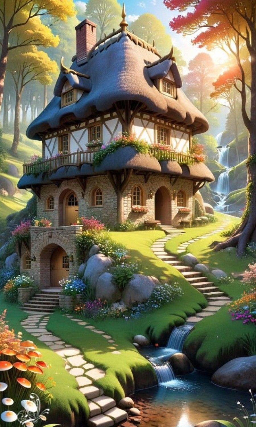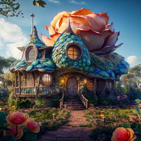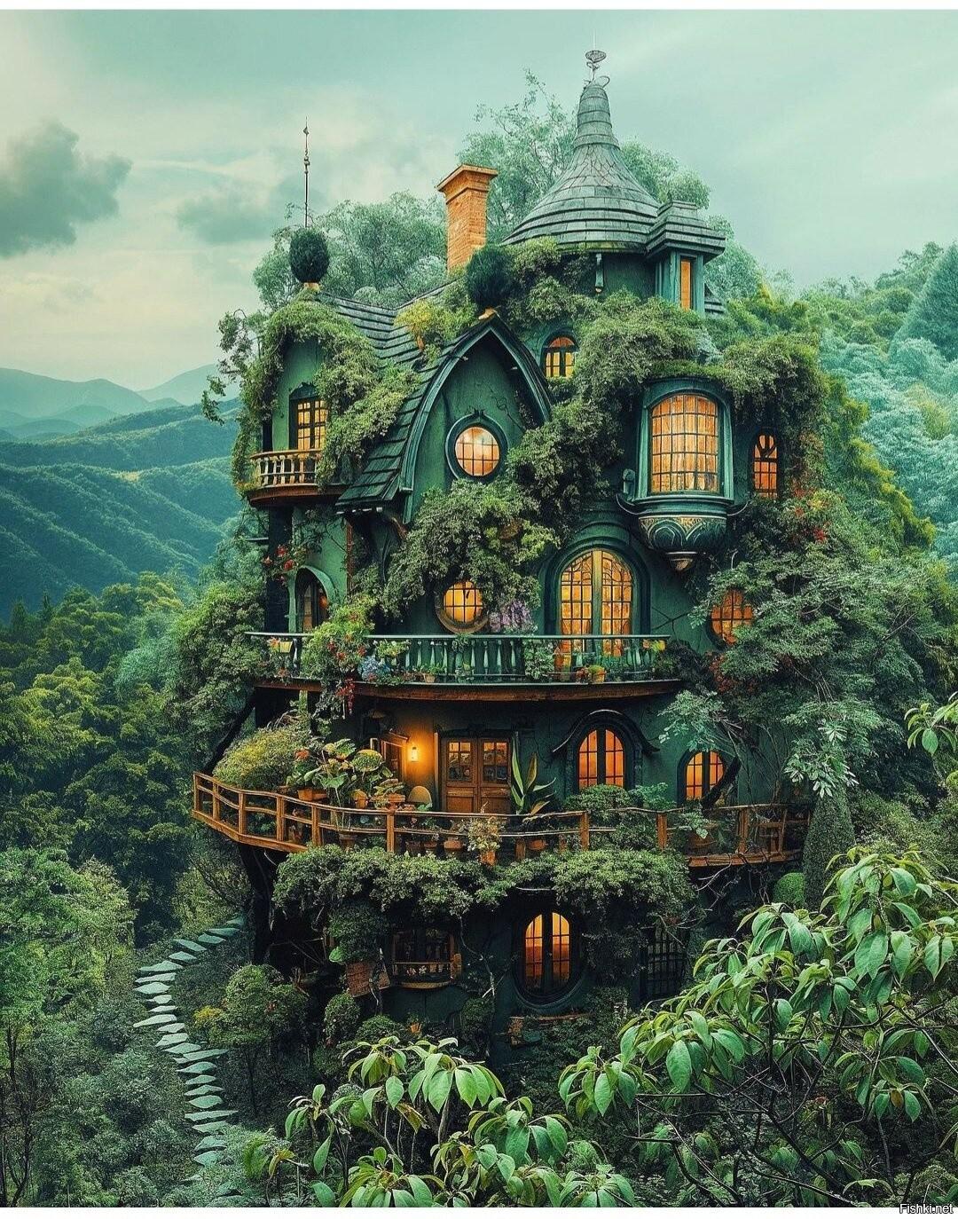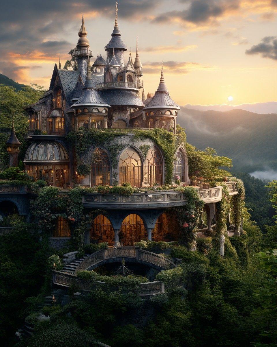 Волшебная серия изображений фантастического дома мечты - сказочного жилища, воплощающего идеалы комфорта и красоты. Фото и иллюстрации передают атмосферу уюта и волшебства, подчеркивая гармонию между архитектурой и природой. Каждый арт раскрывает концепцию идеального дома, его роль как убежища и источника вдохновения, создавая образ между реальностью и фантазией. Коллекция сочетает элементы архитектуры и фэнтези, воплощая мечту о совершенном жилище.